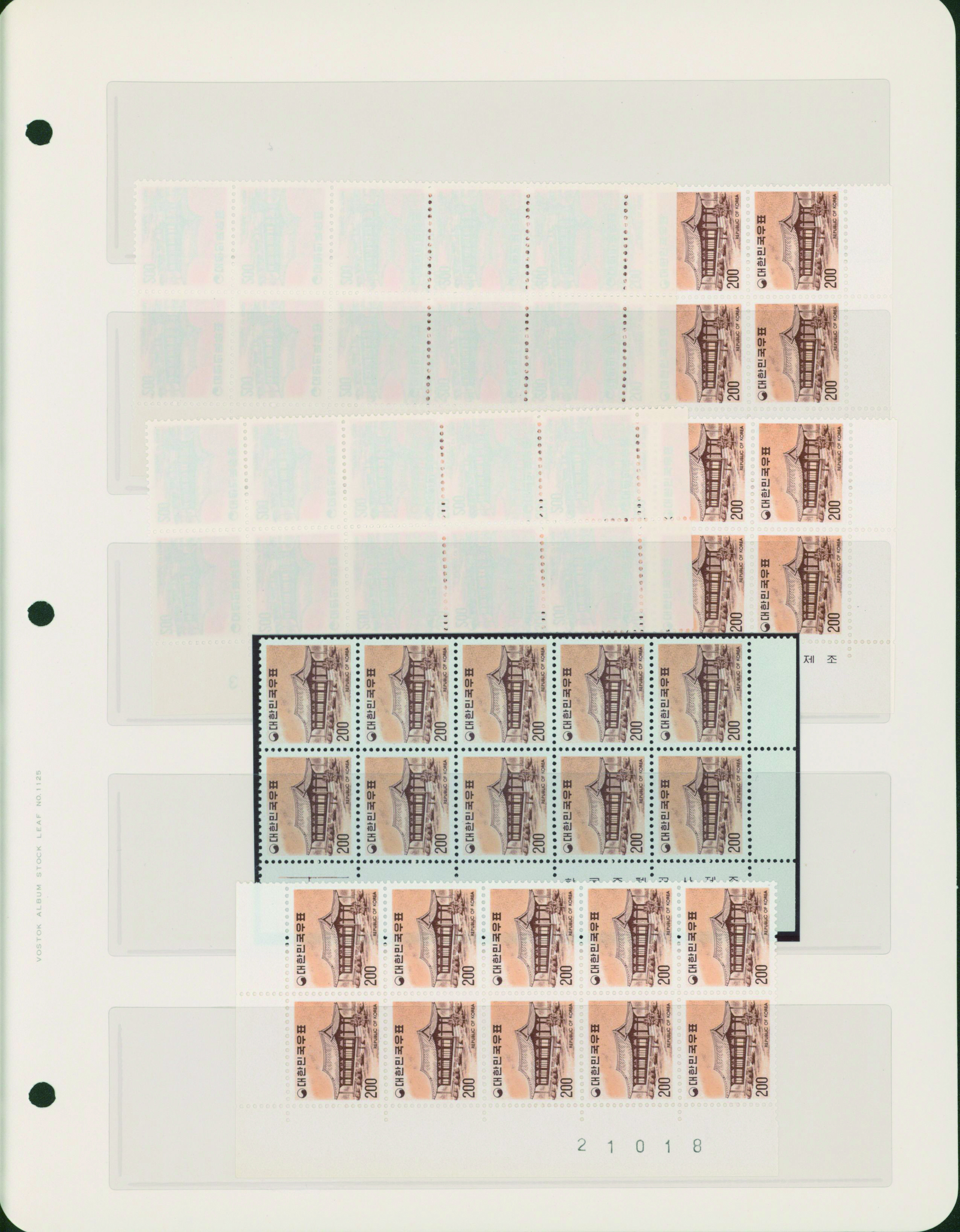 South Korea 1978 1000w Block Lot 50 examples unused stained, dirty leaves with stain, (Image1)