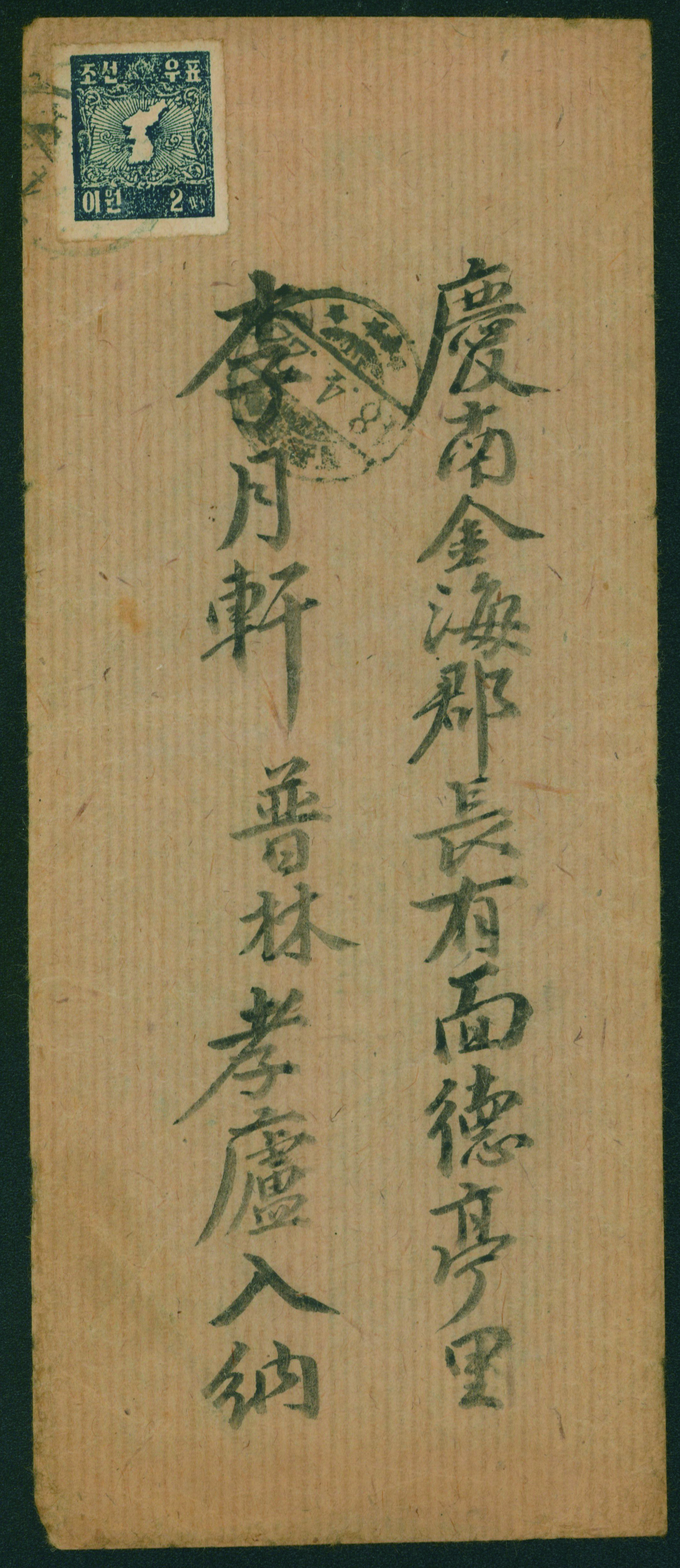 South Korea 1946 First USMG Definitive Issue 2w single franking cancelled by datestamp