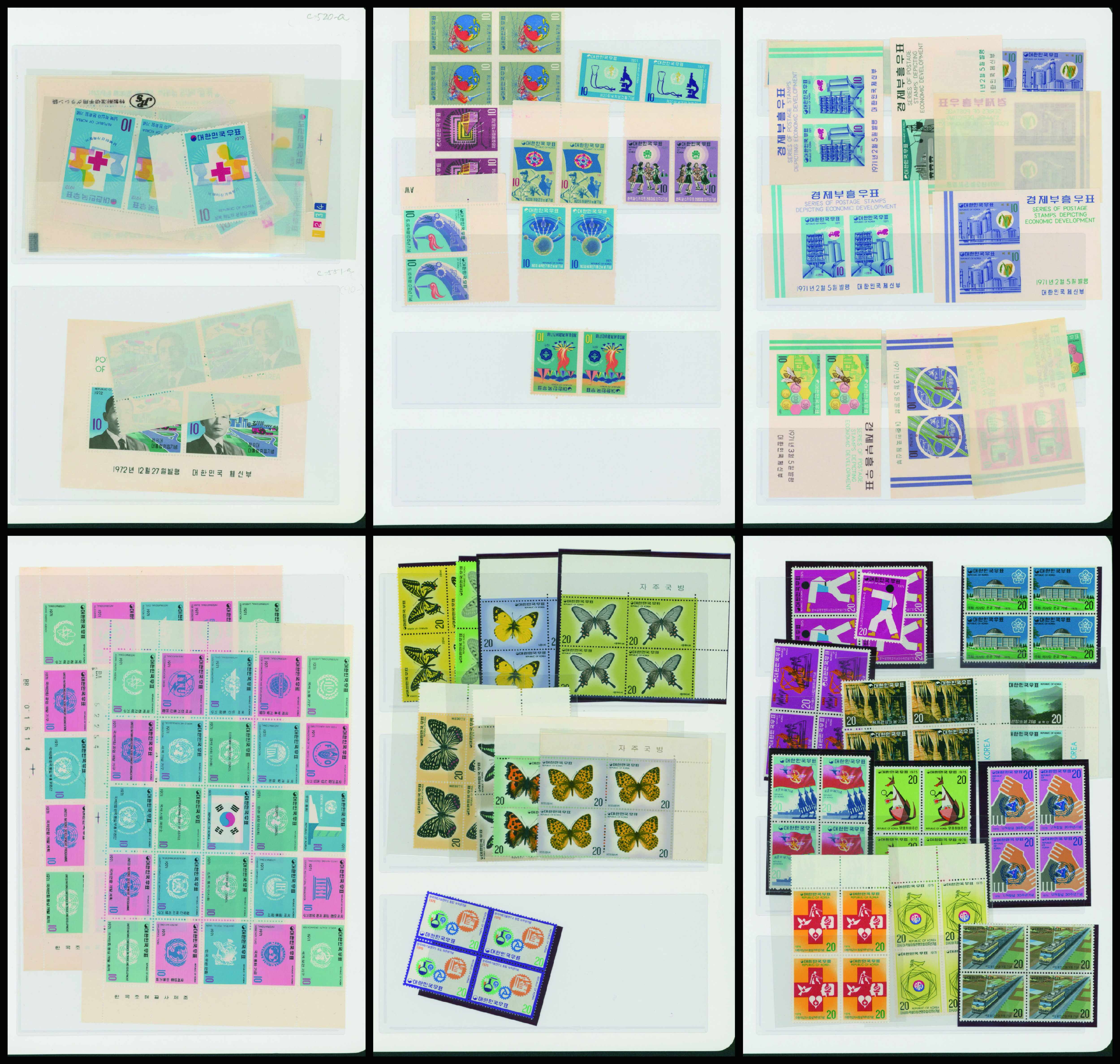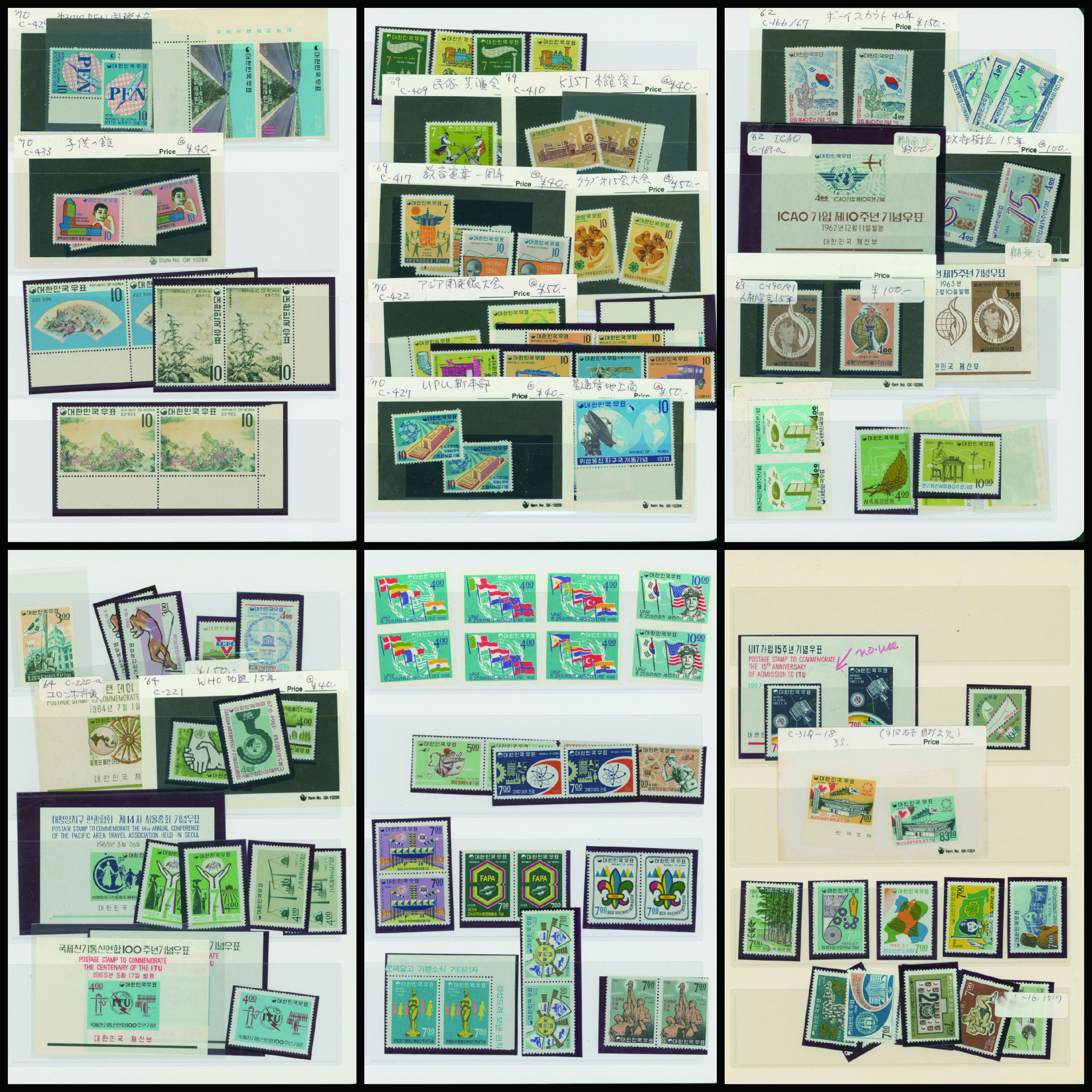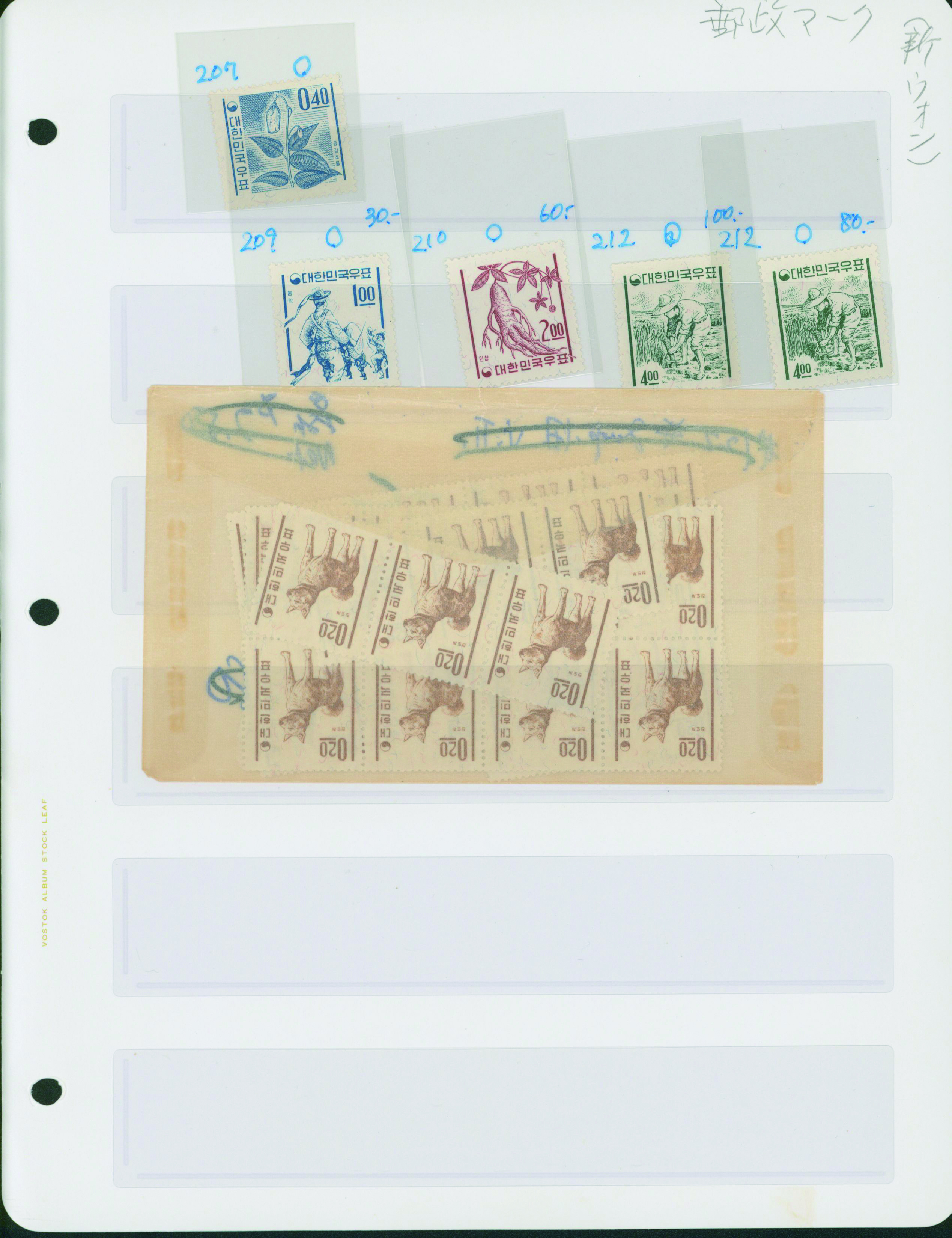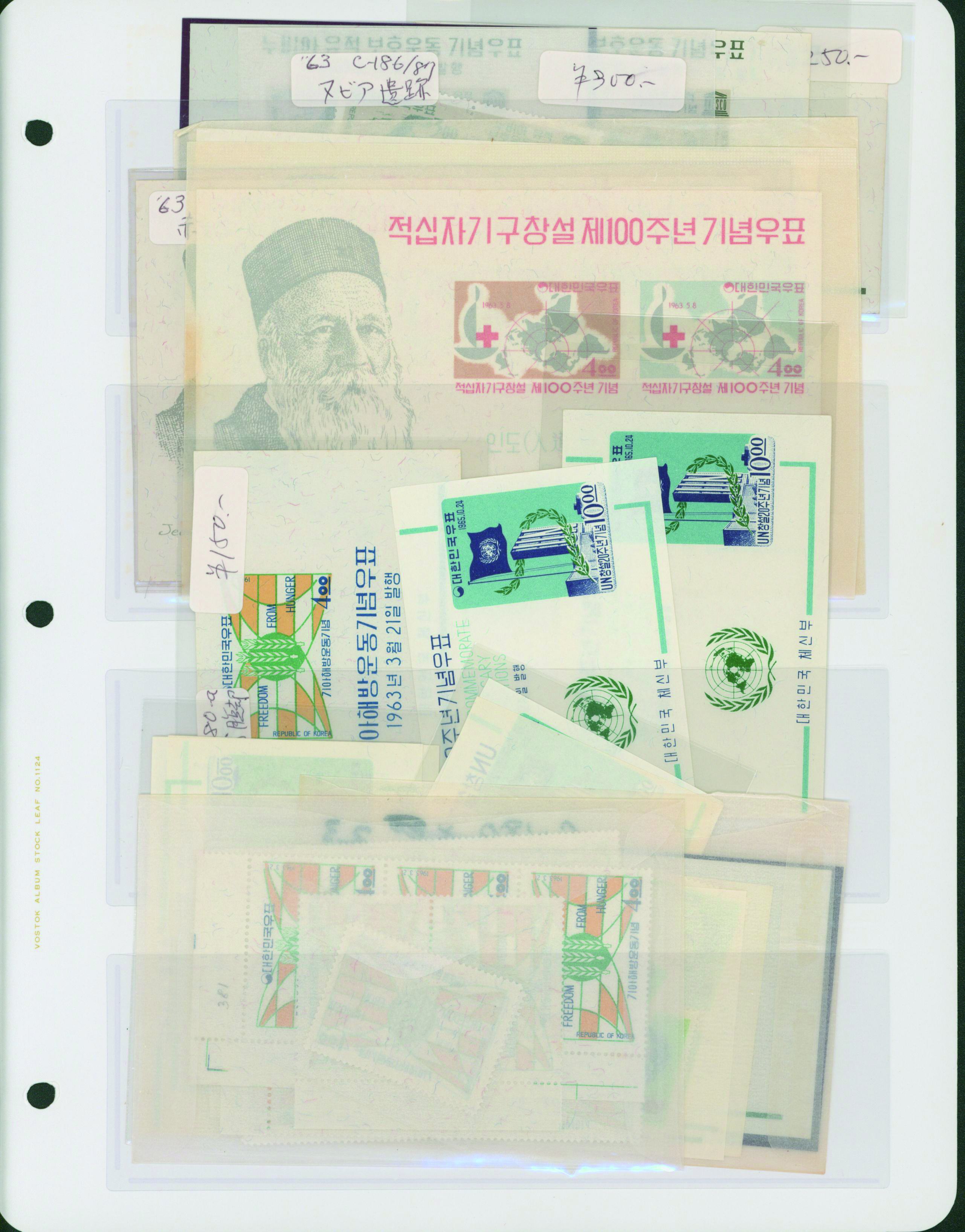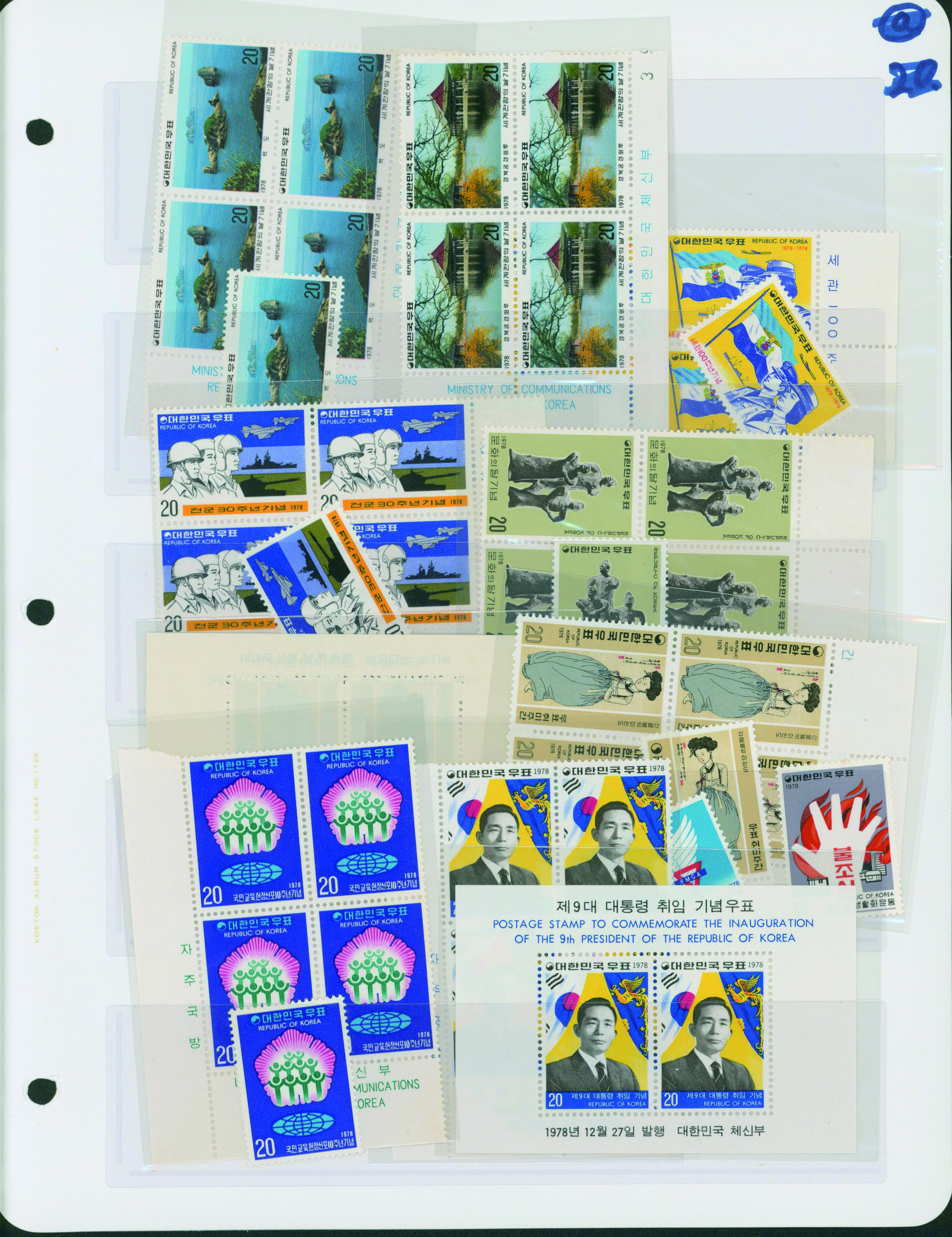 South Korea 1960s-1970s Stamp Accumuration 5 leaves unused mixed condition of unused and used, (Image1) (Image2)
