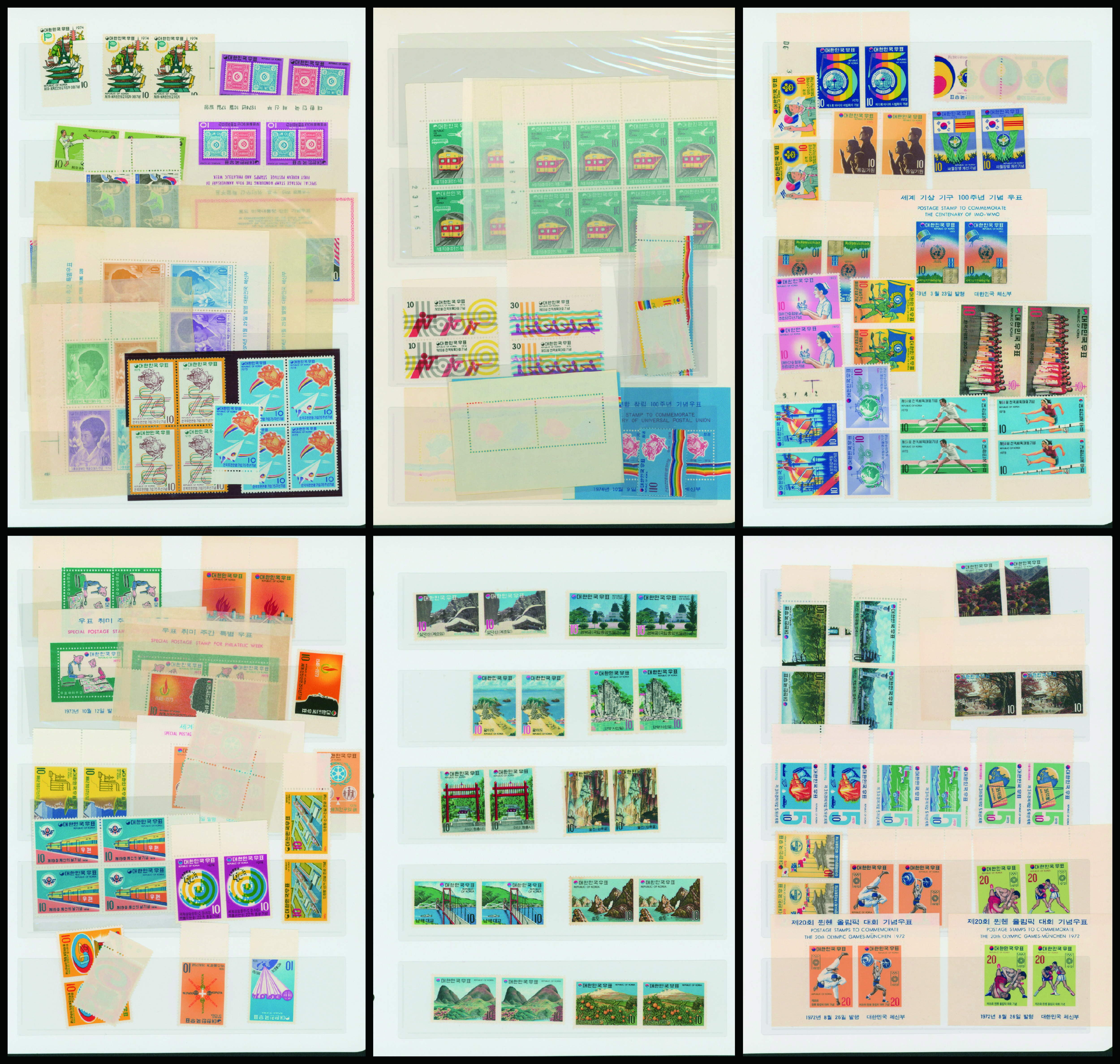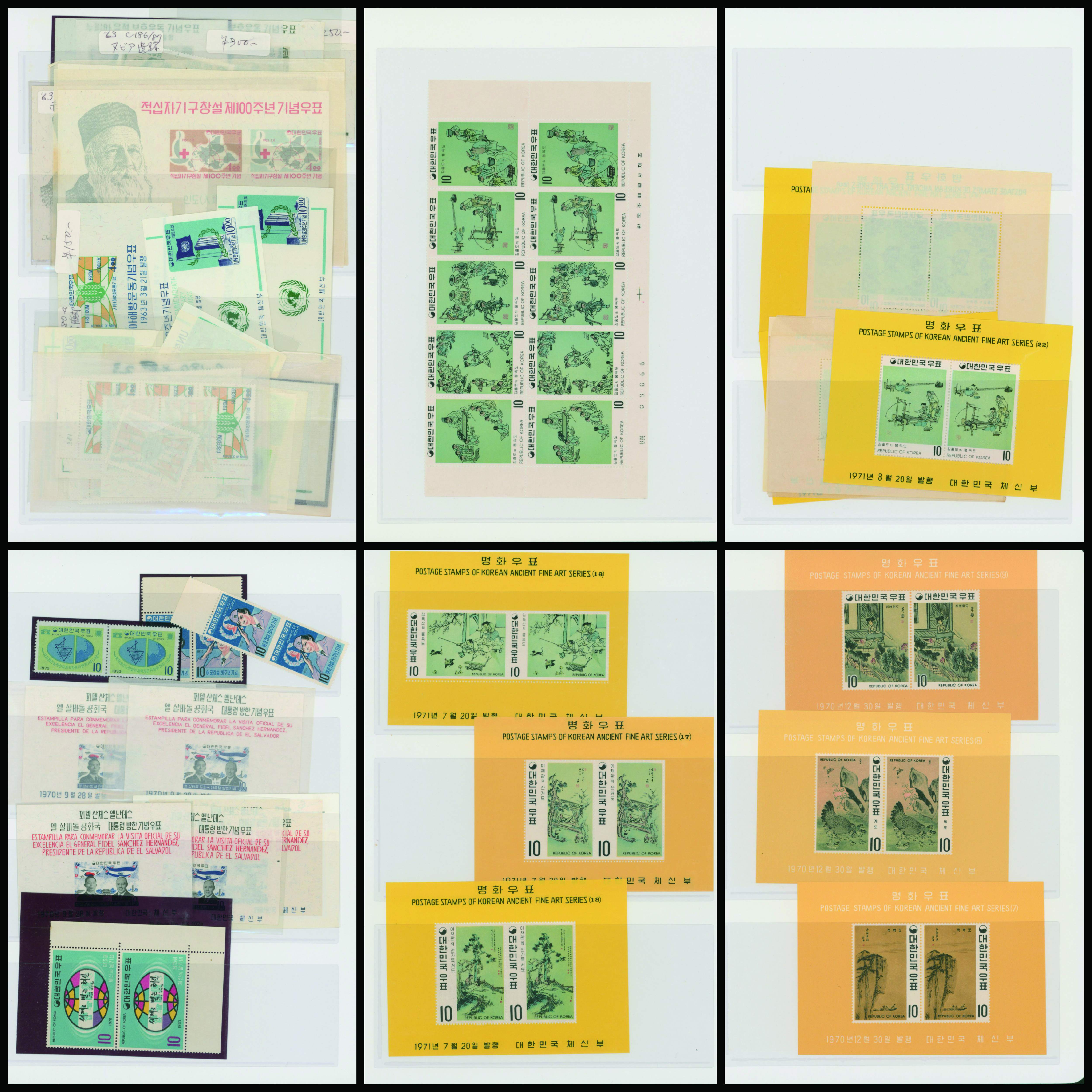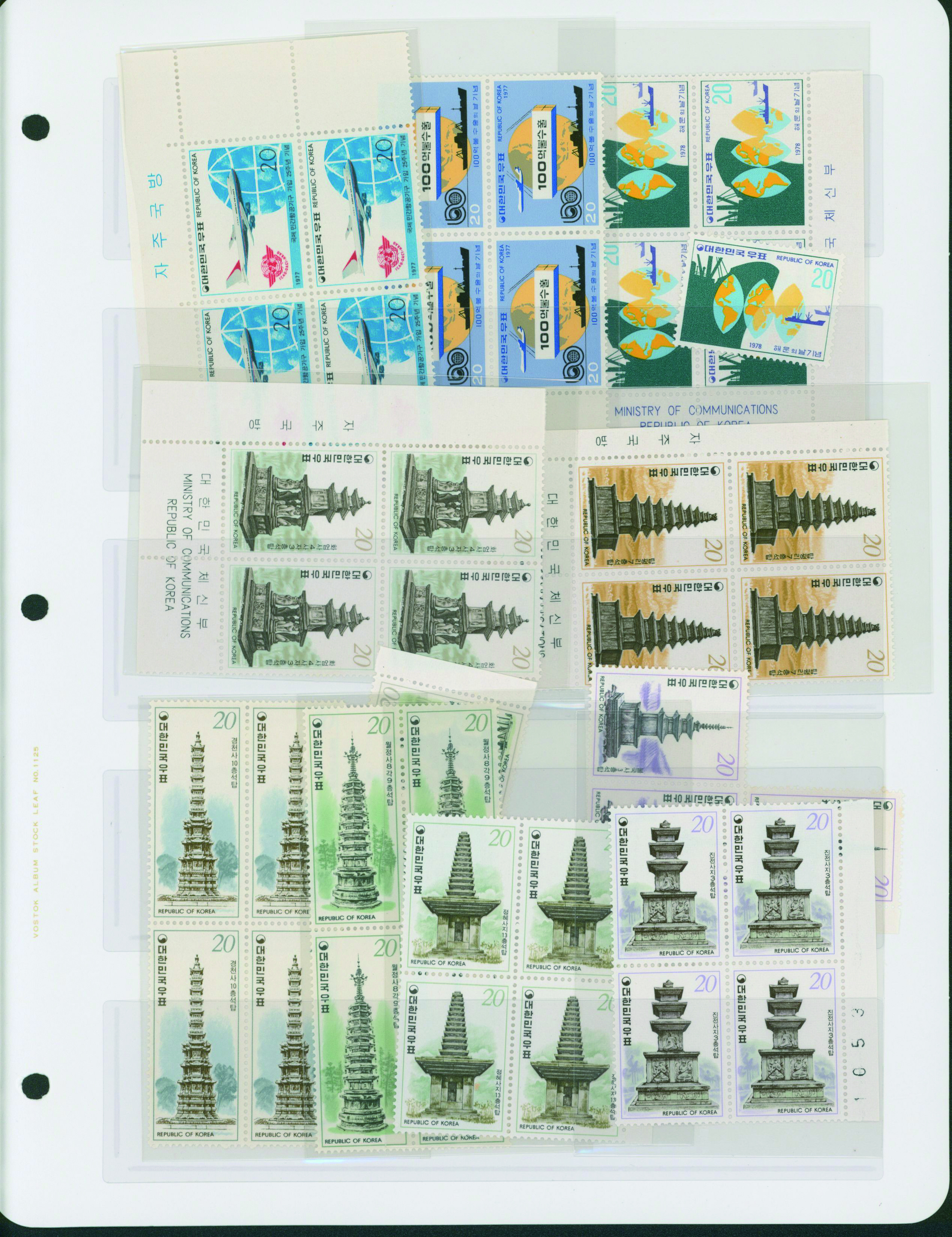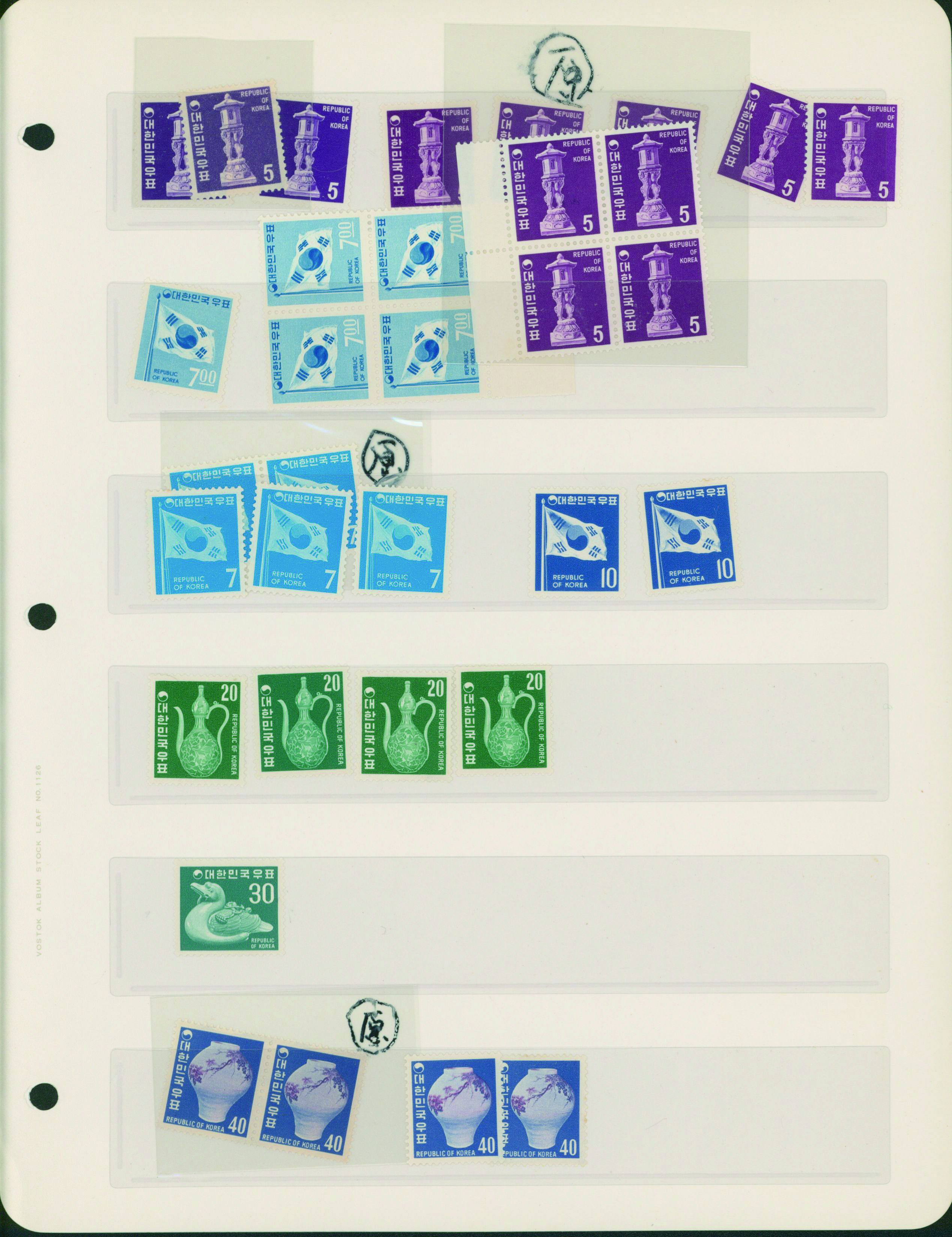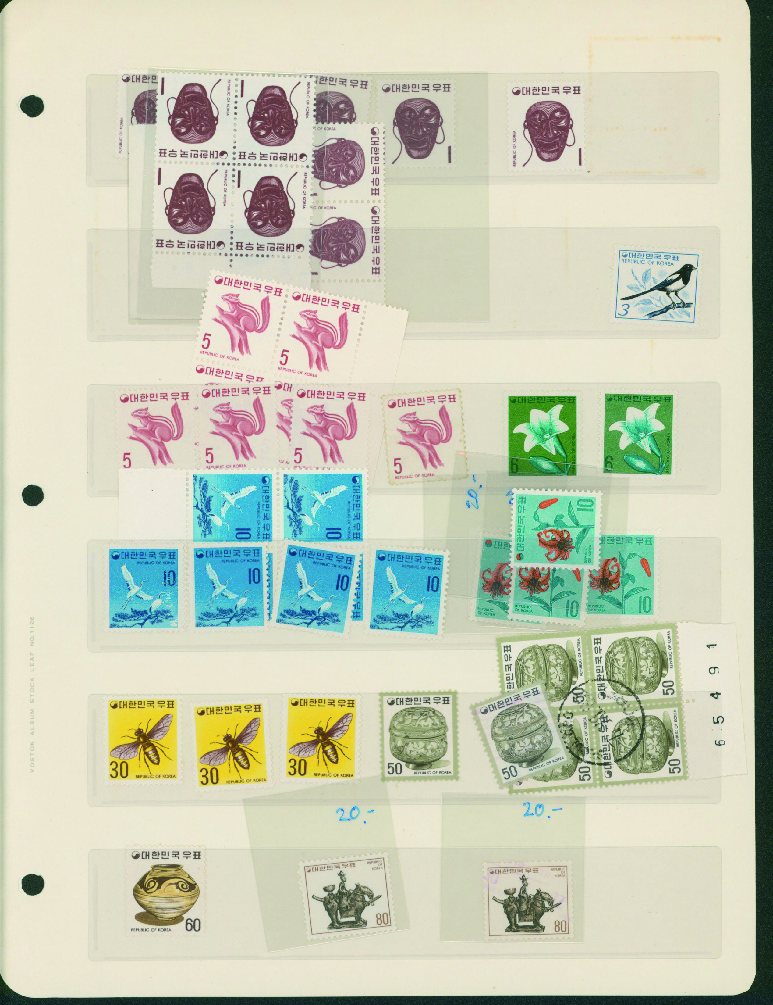South Korea 1960s-1970s Stamp Accumuration 5 leaves unused mixed condition of unused and used, (Image1) (Image2)