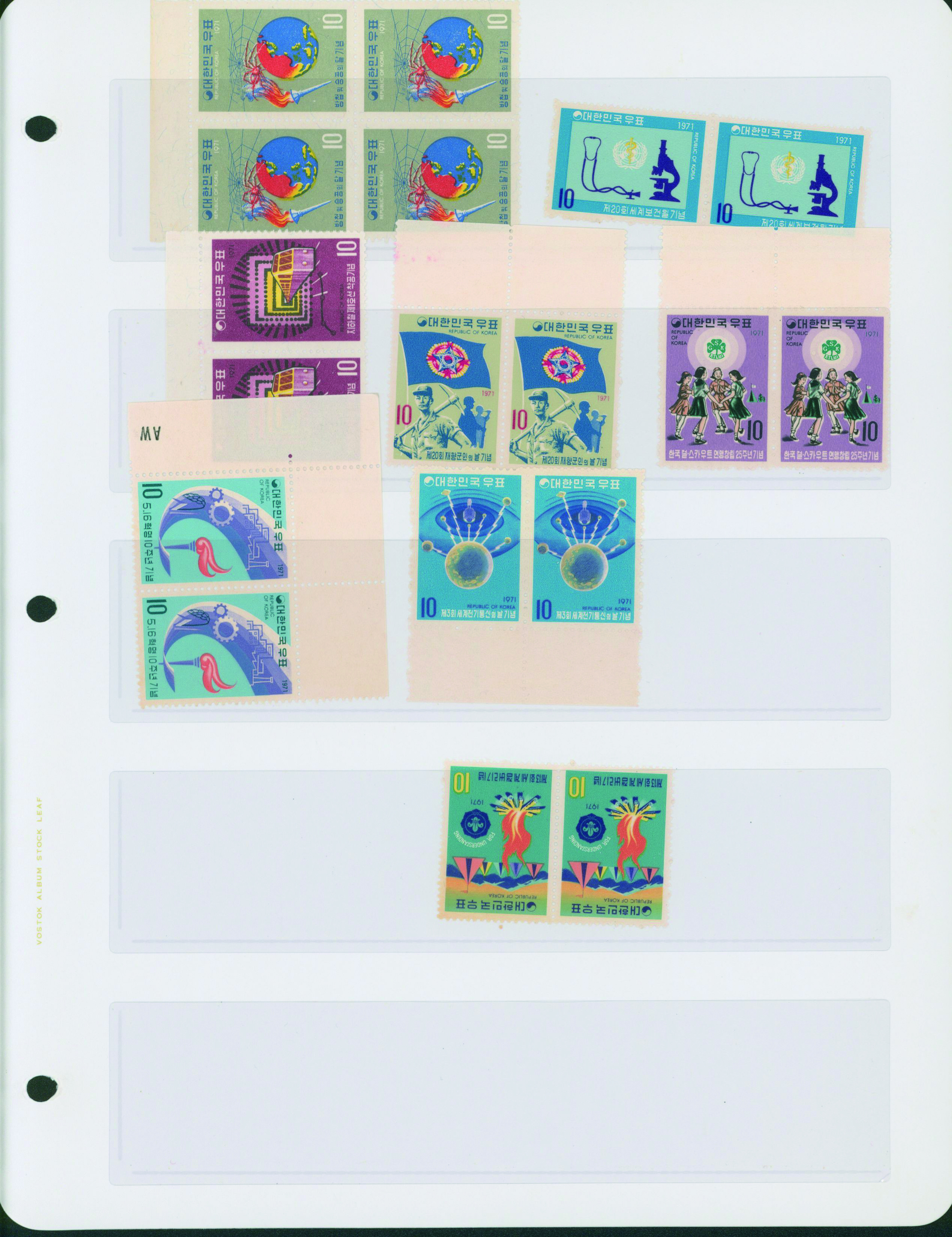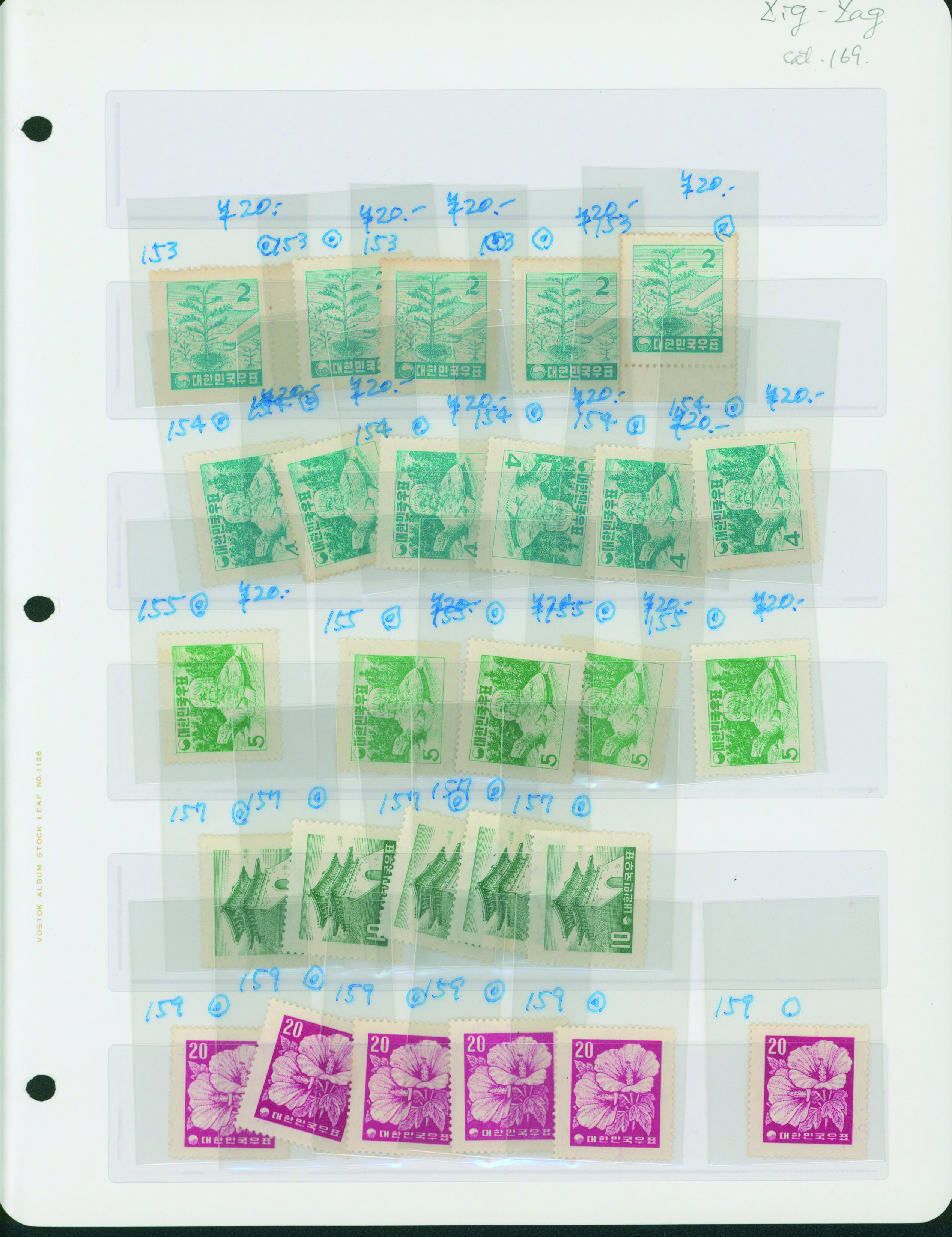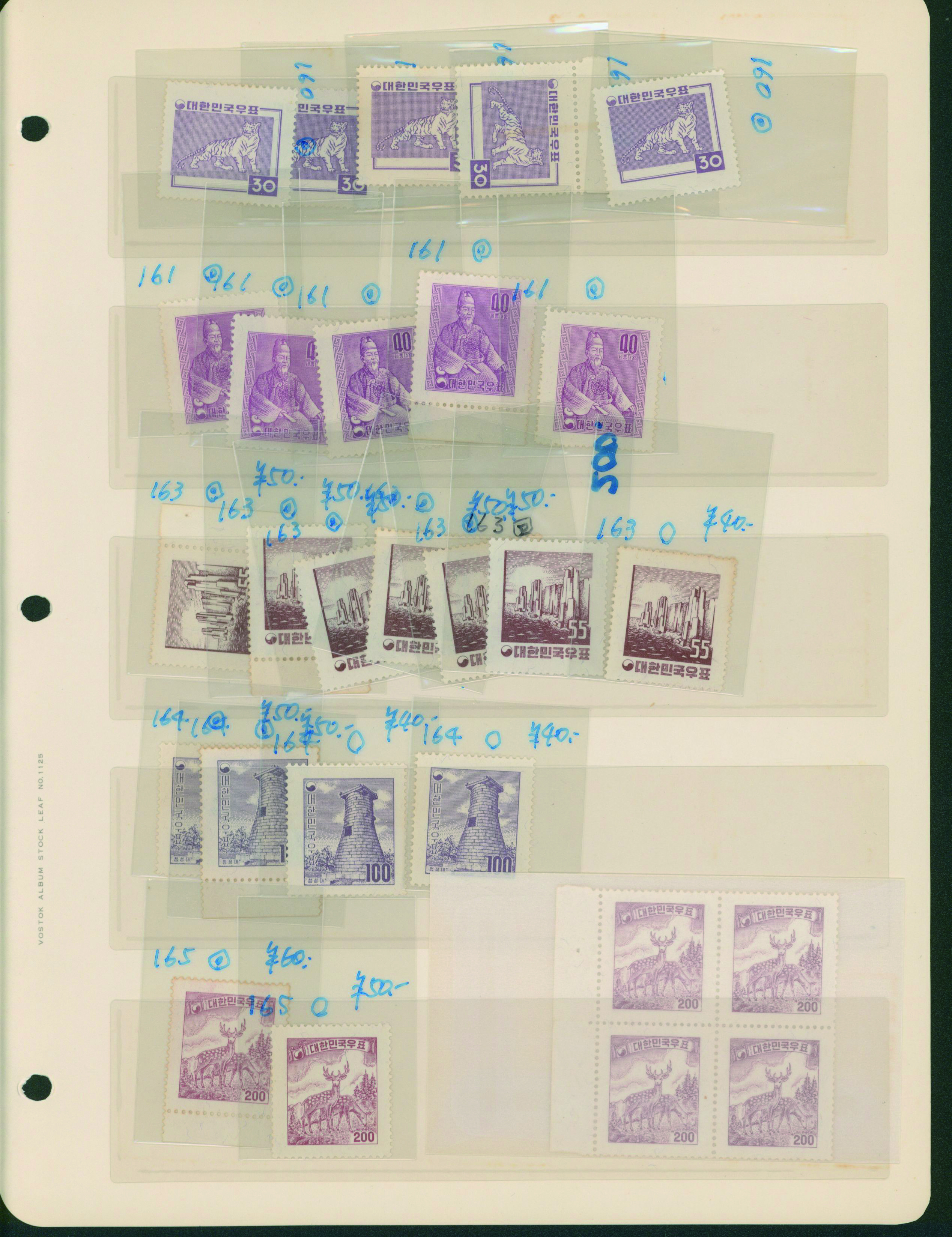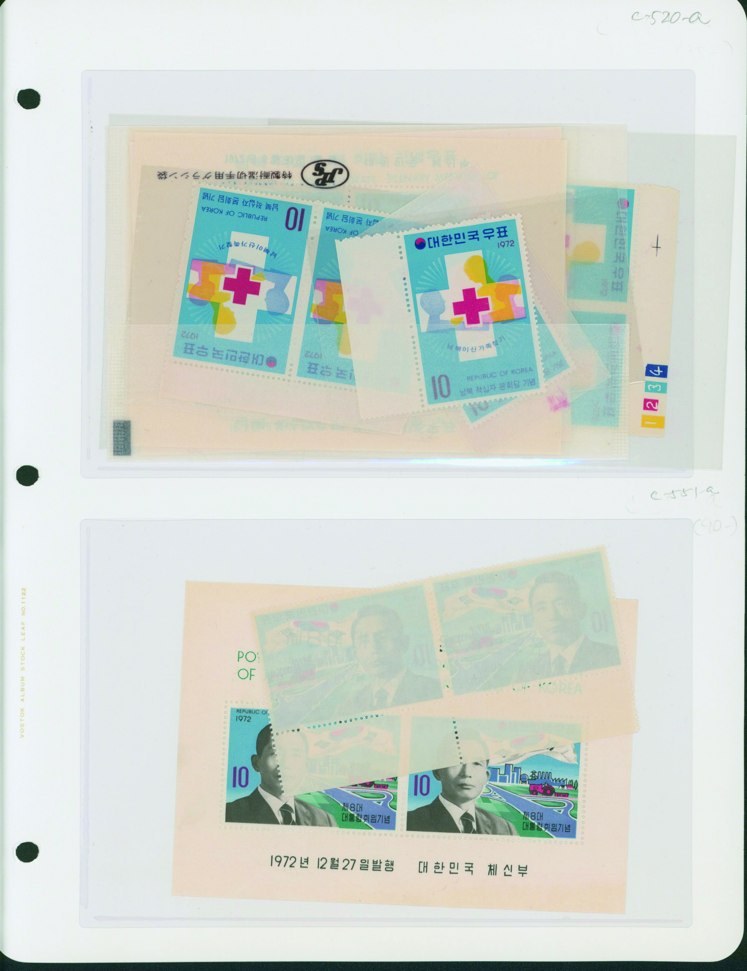 South Korea 1960s-1970s Stamp Accumuration 5 leaves unused mixed condition of unused and used, (Image1) (Image2)