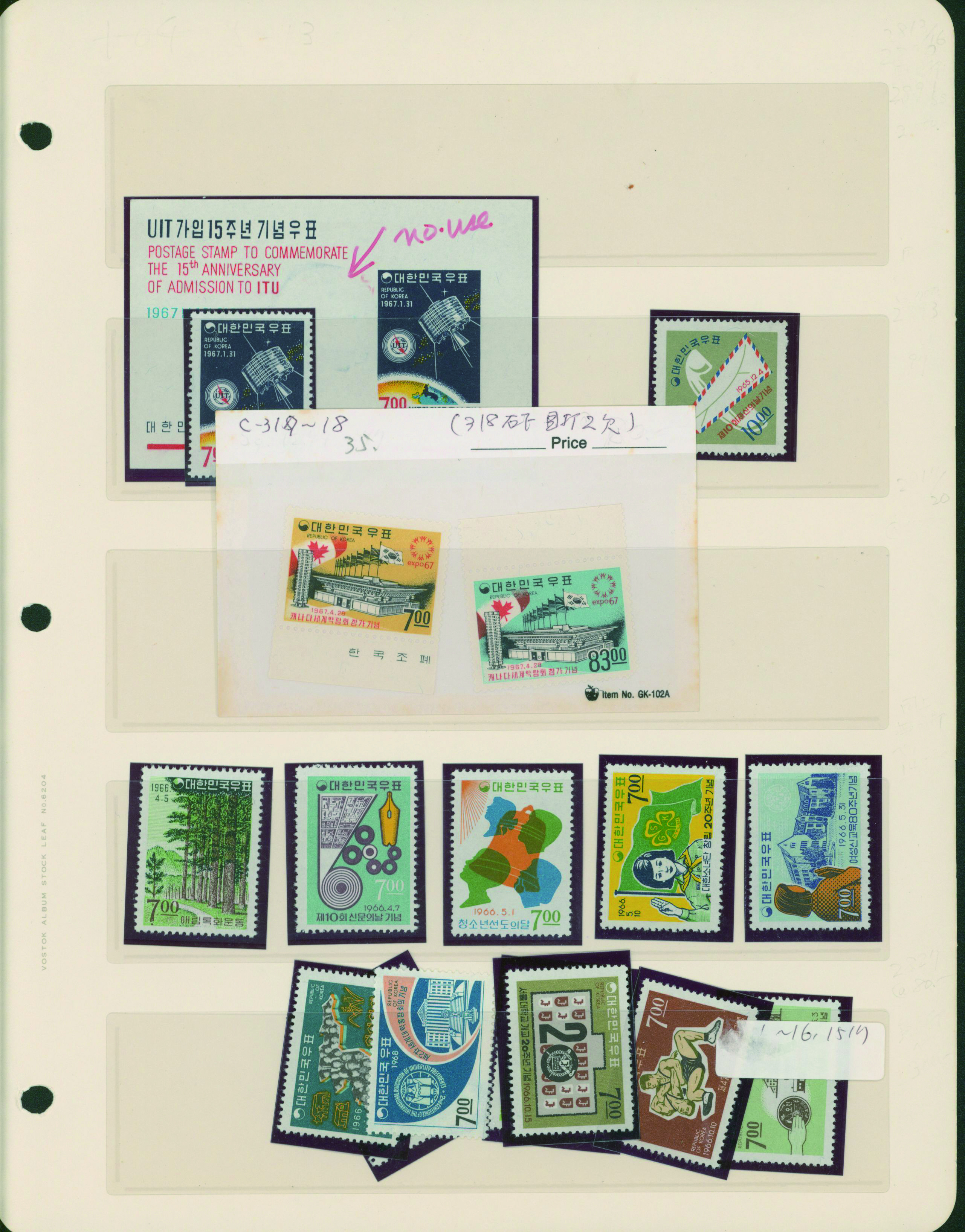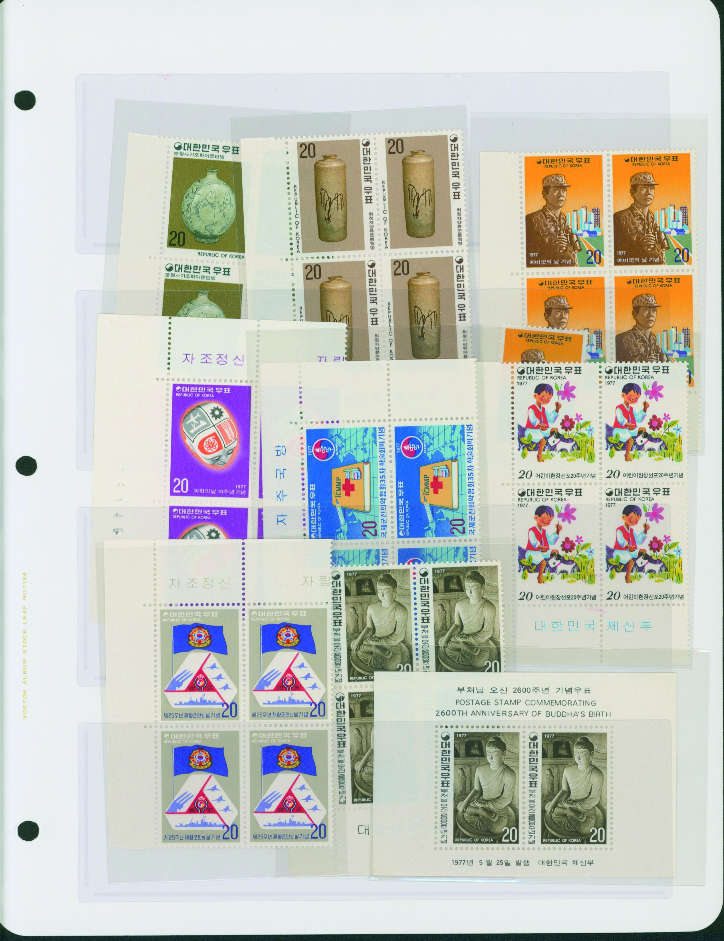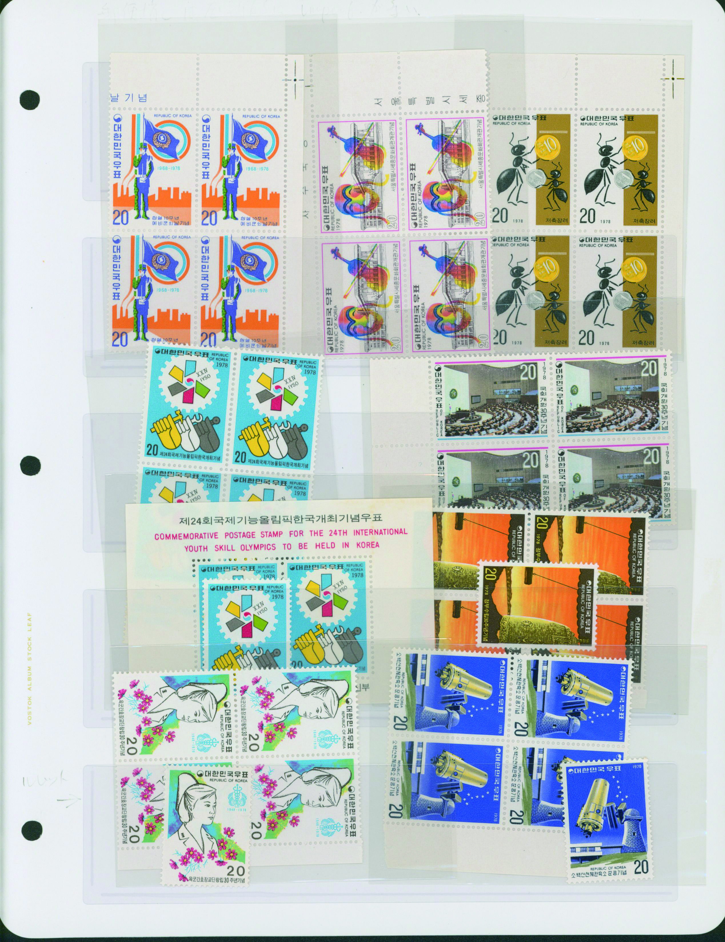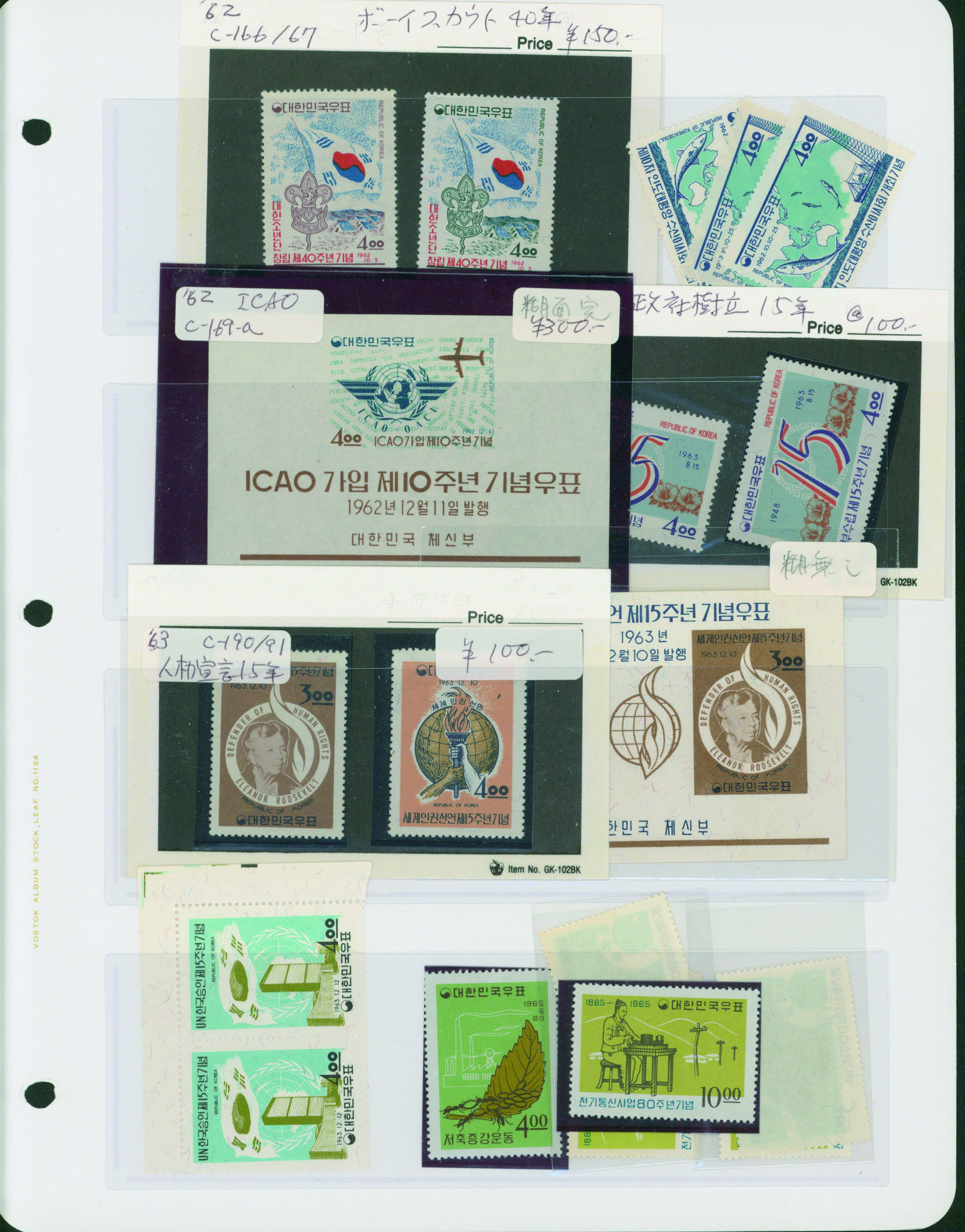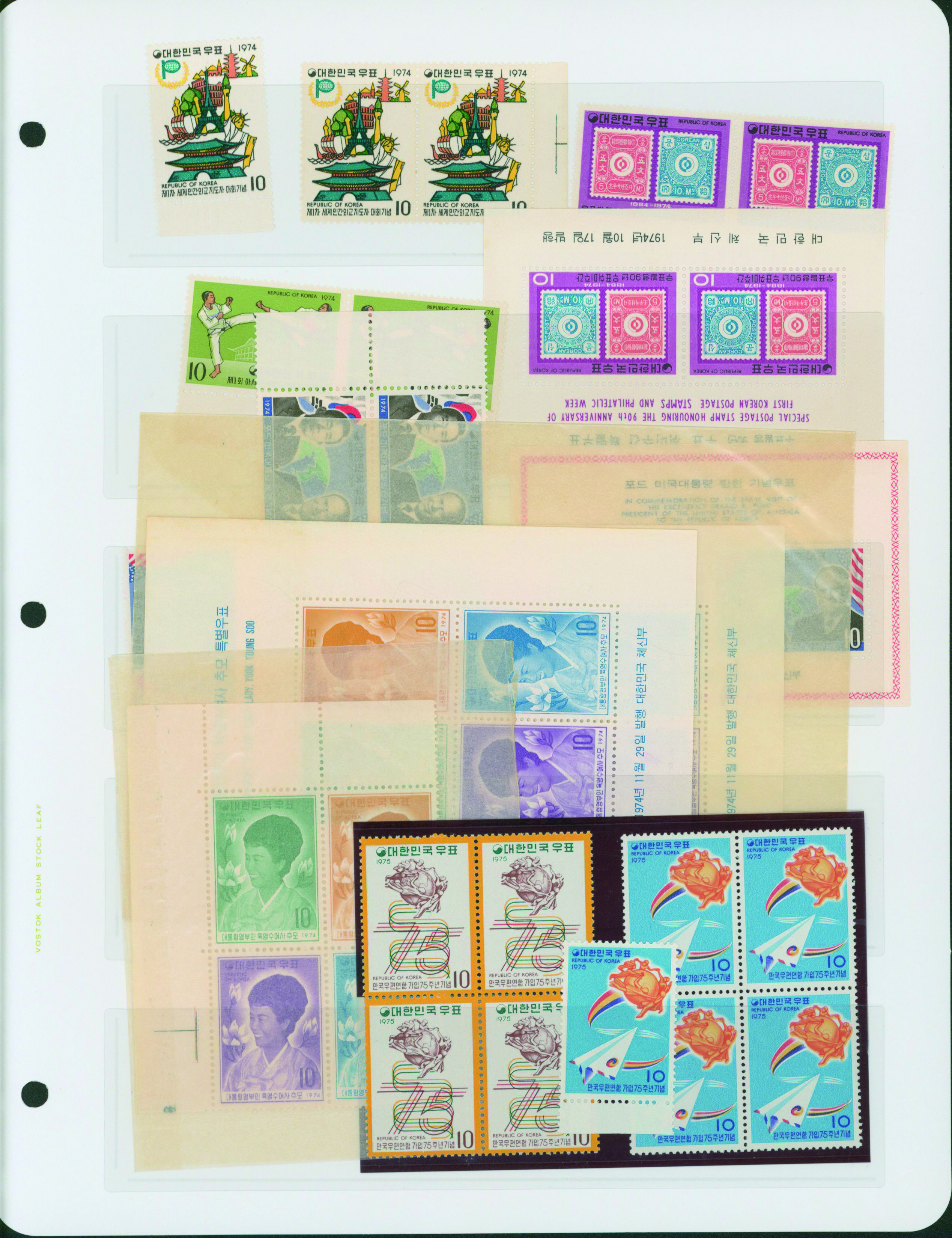 South Korea 1960s-1970s Stamp Accumuration 5 leaves unused mixed condition of unused and used, (Image1) (Image2)