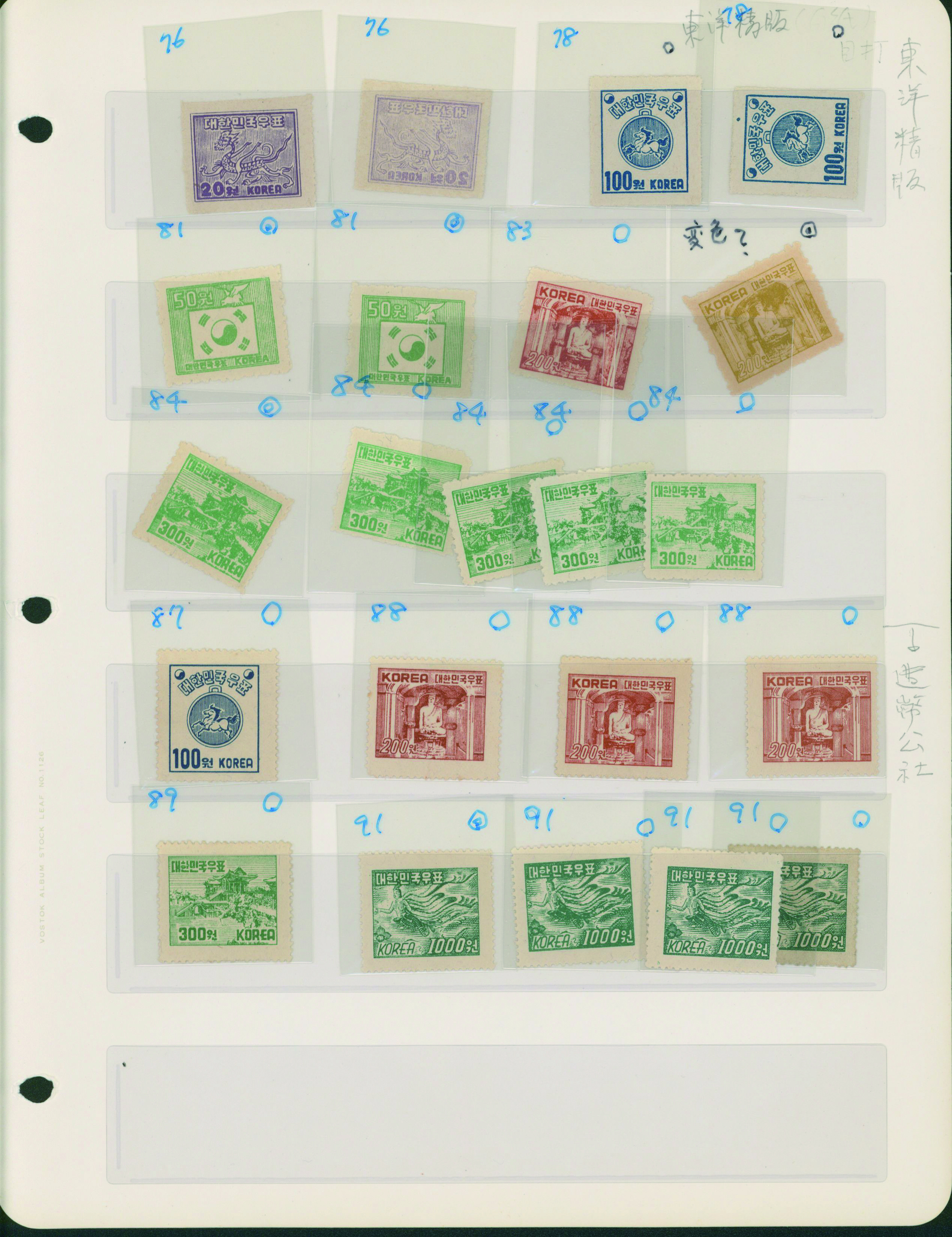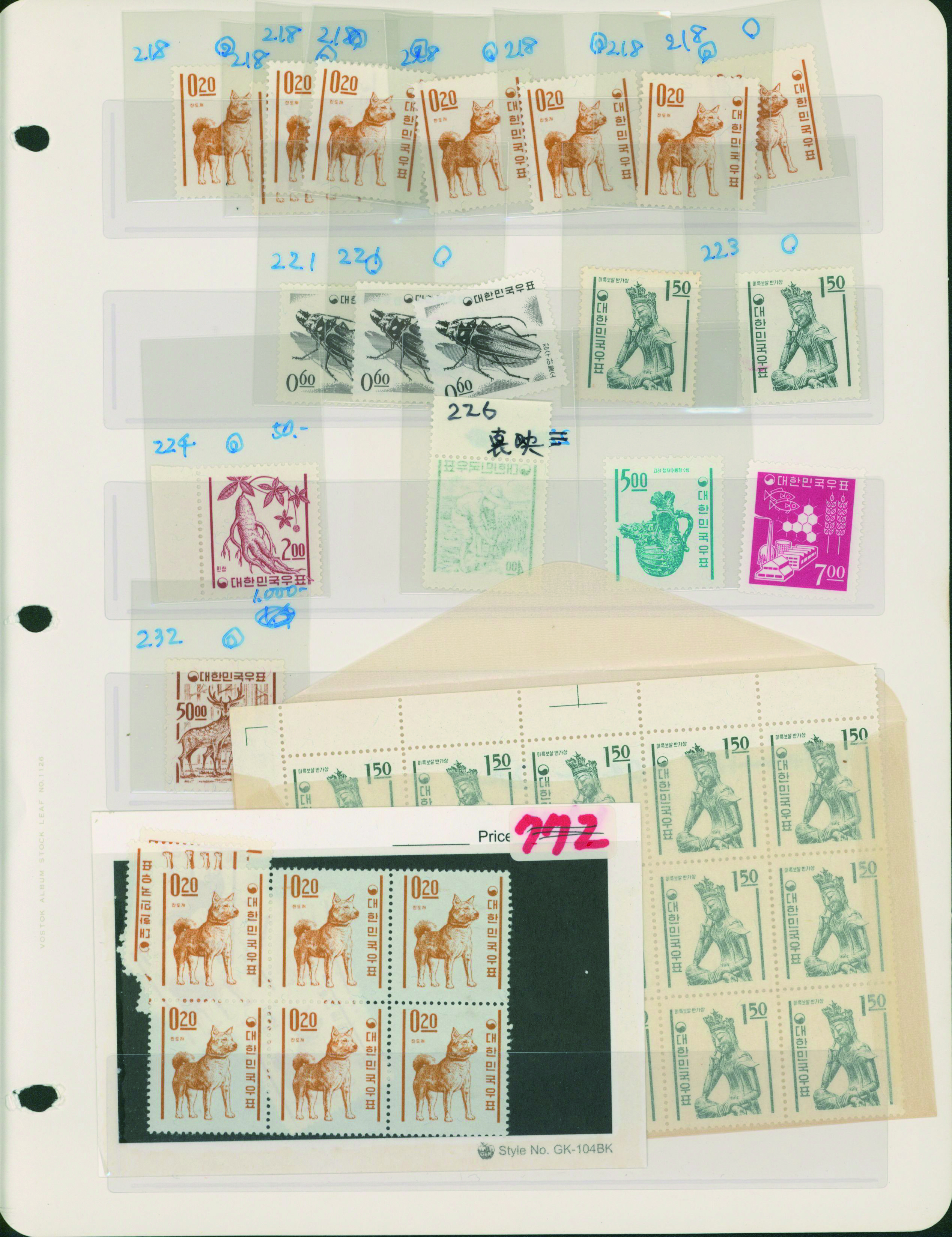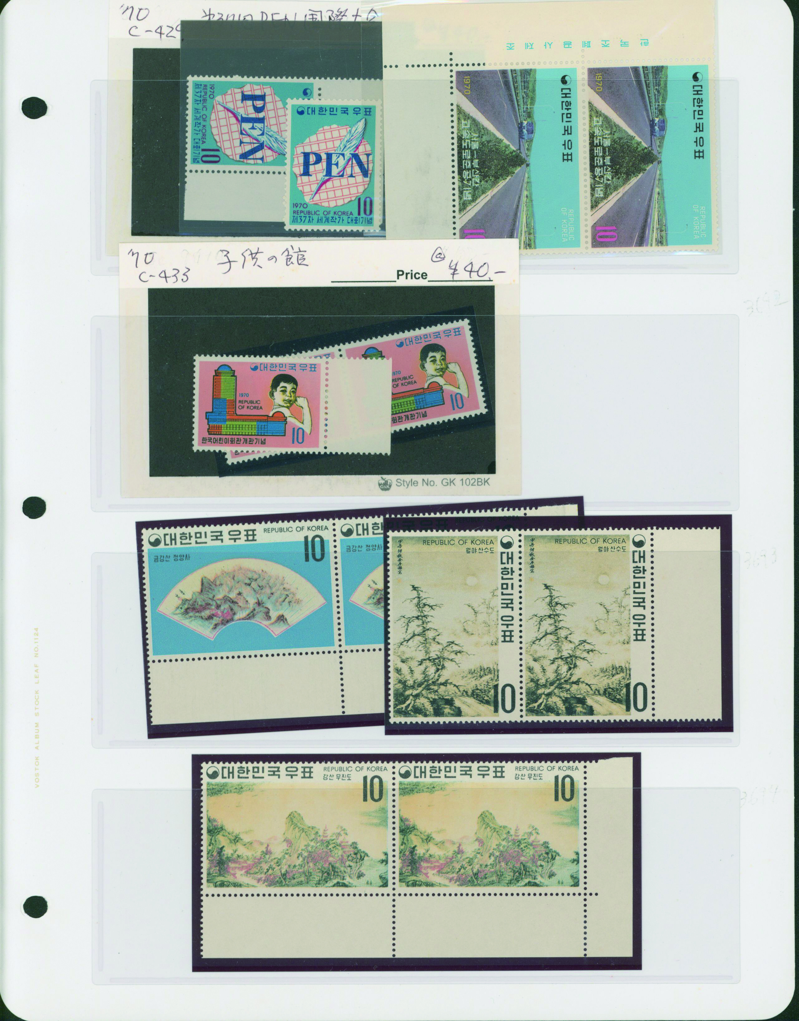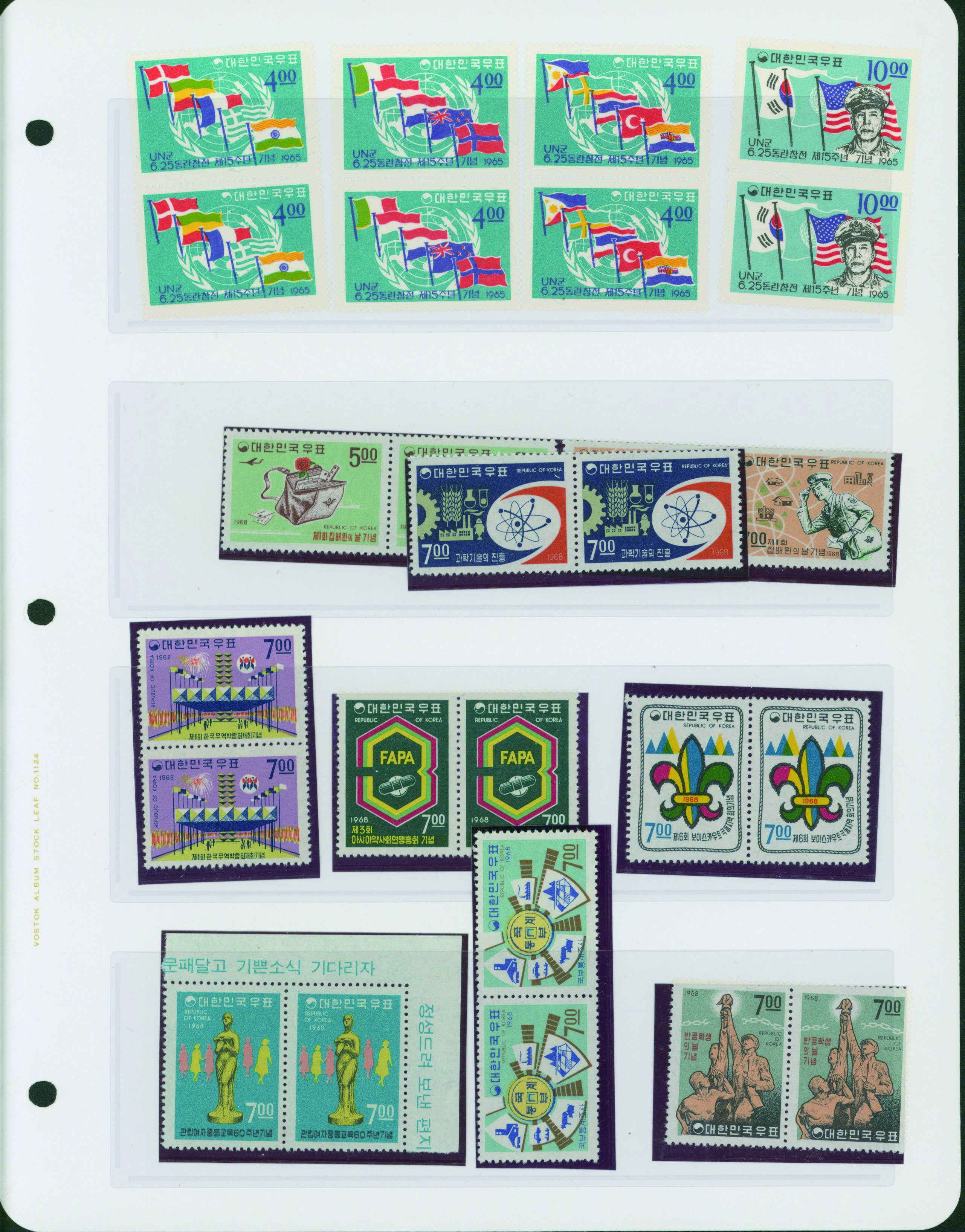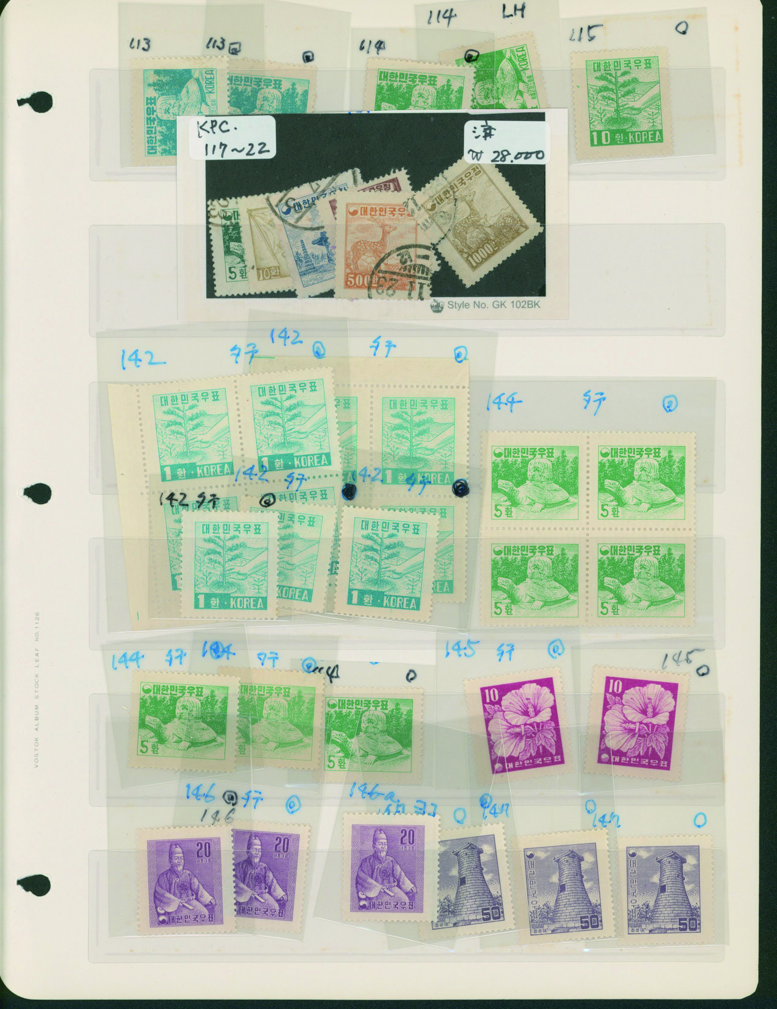 South Korea 1960s-1970s Stamp Accumuration 5 leaves unused mixed condition of unused and used, (Image1) (Image2)