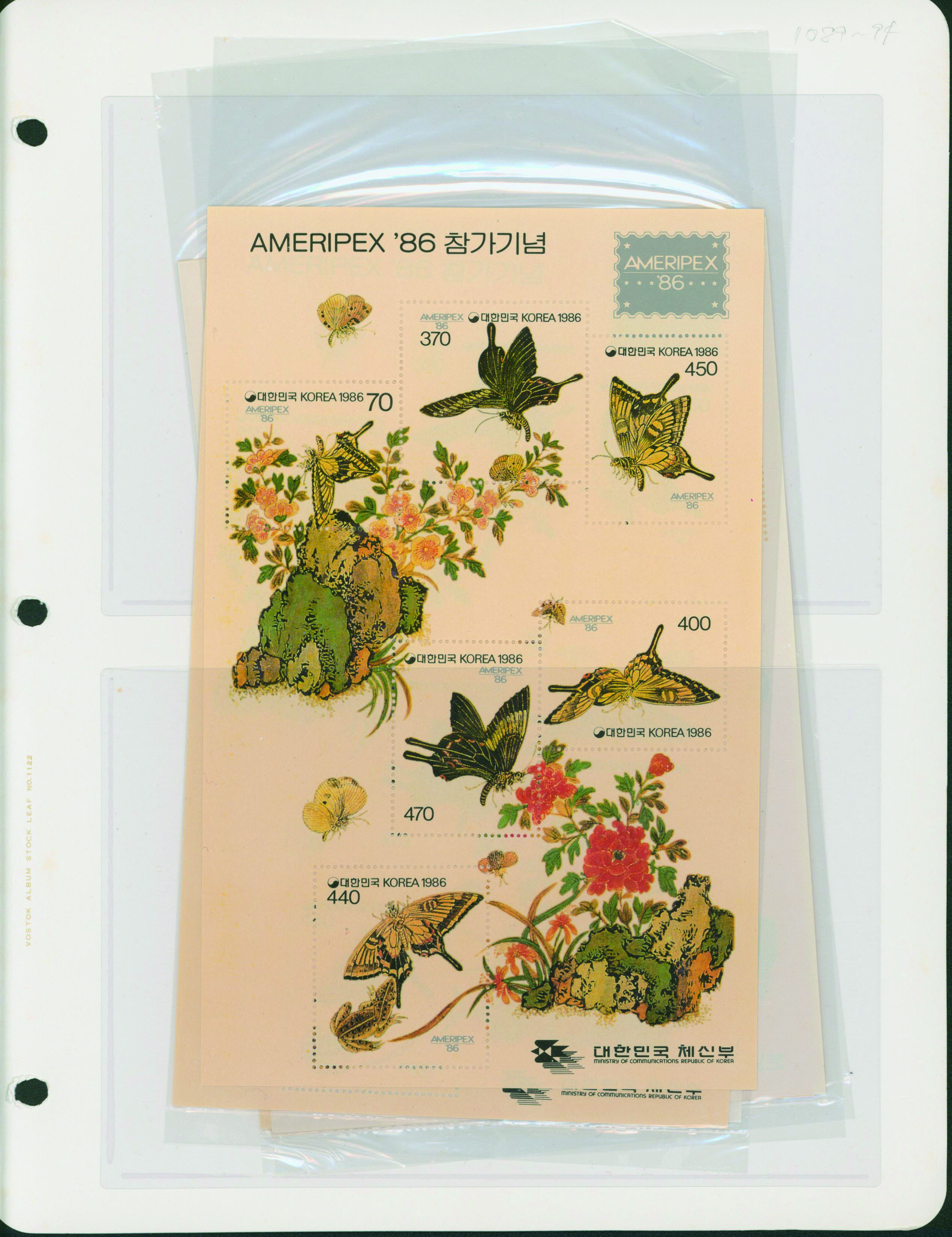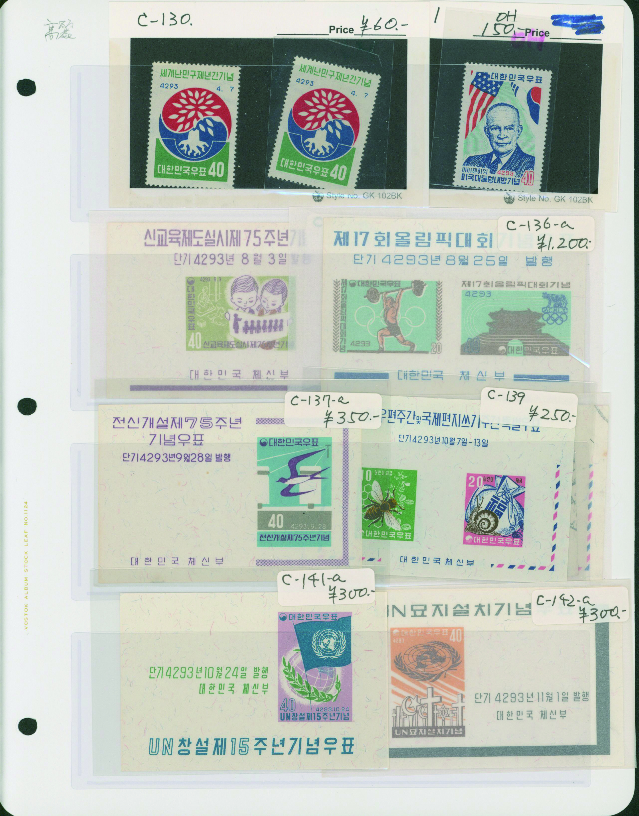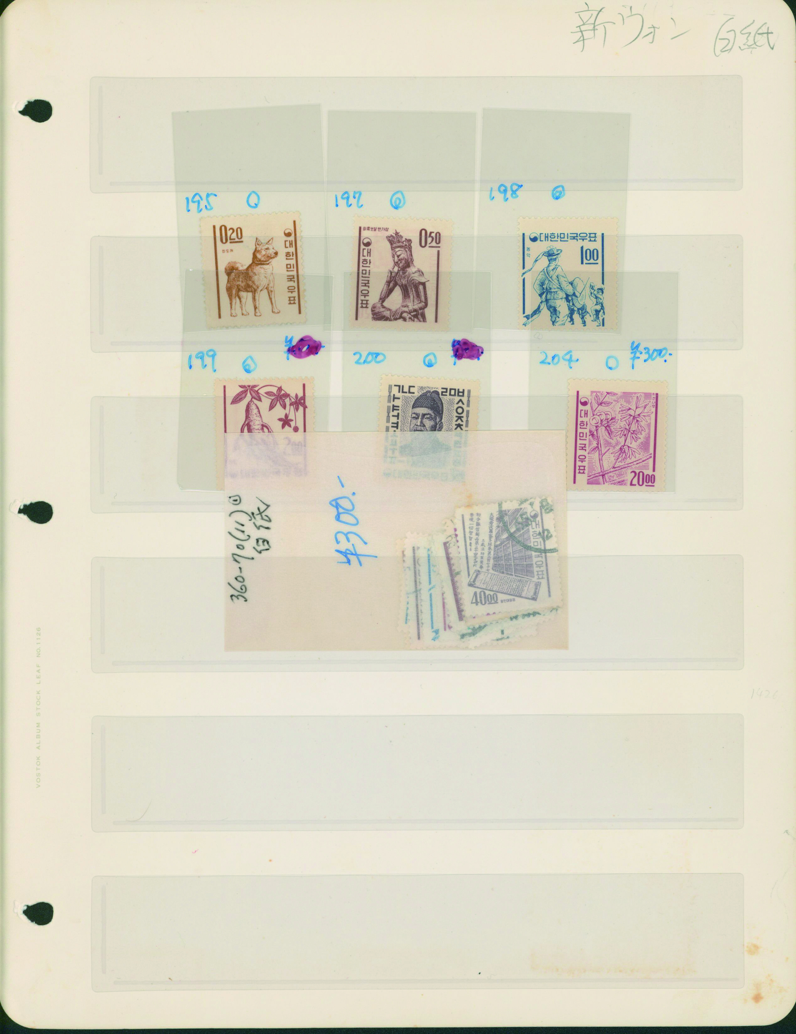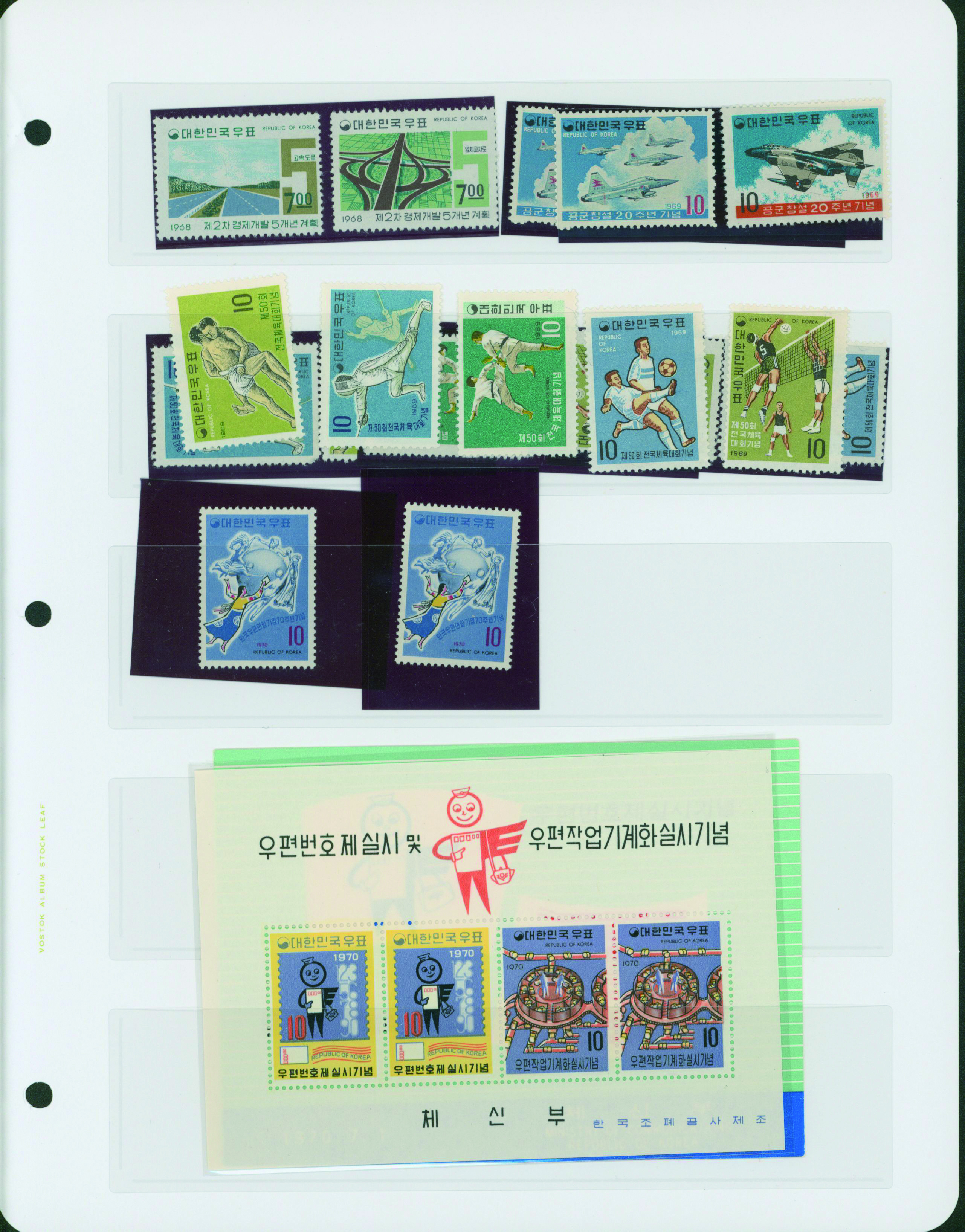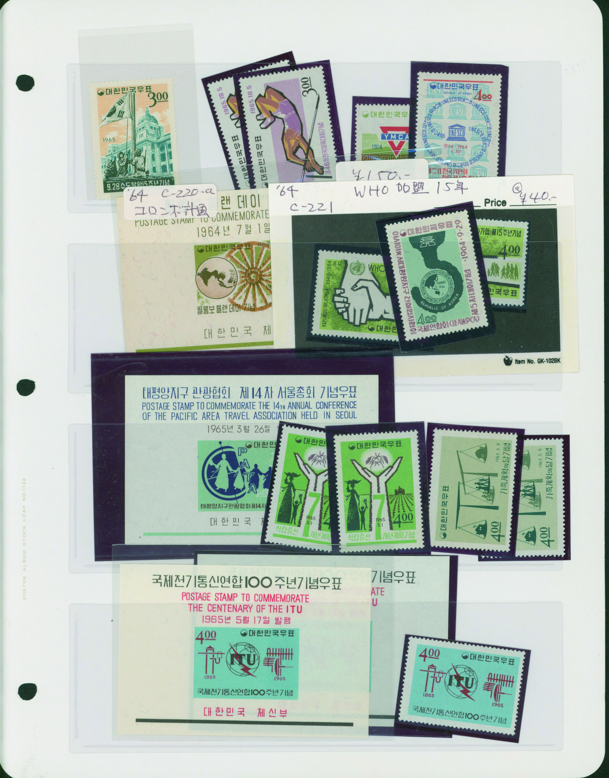 South Korea 1960s-1970s Stamp Accumuration 5 leaves unused mixed condition of unused and used, (Image1) (Image2)