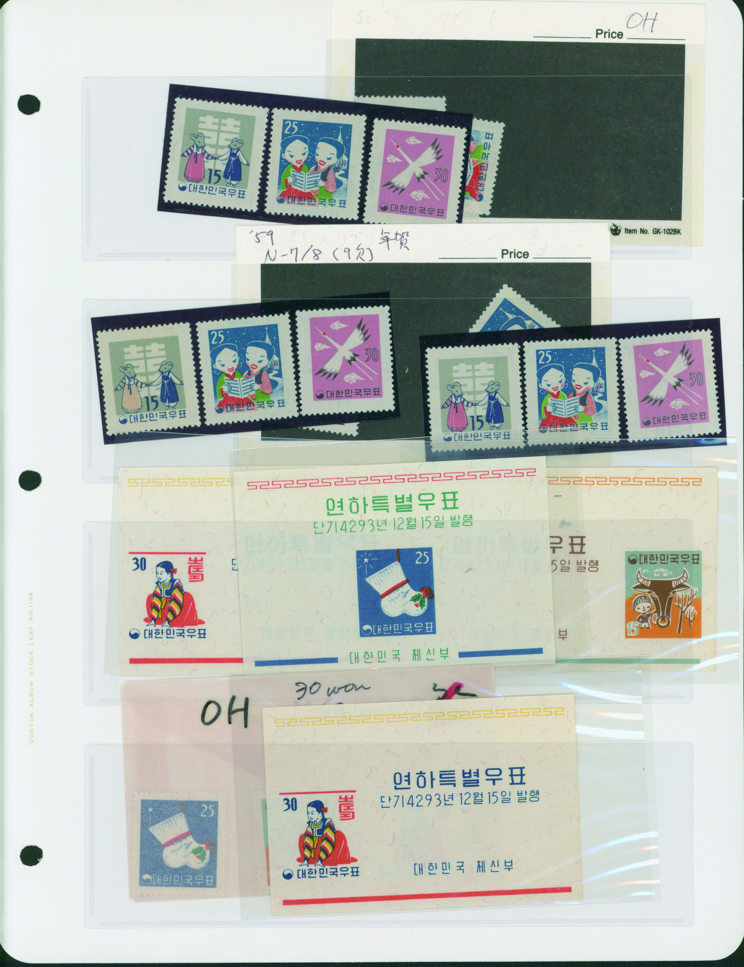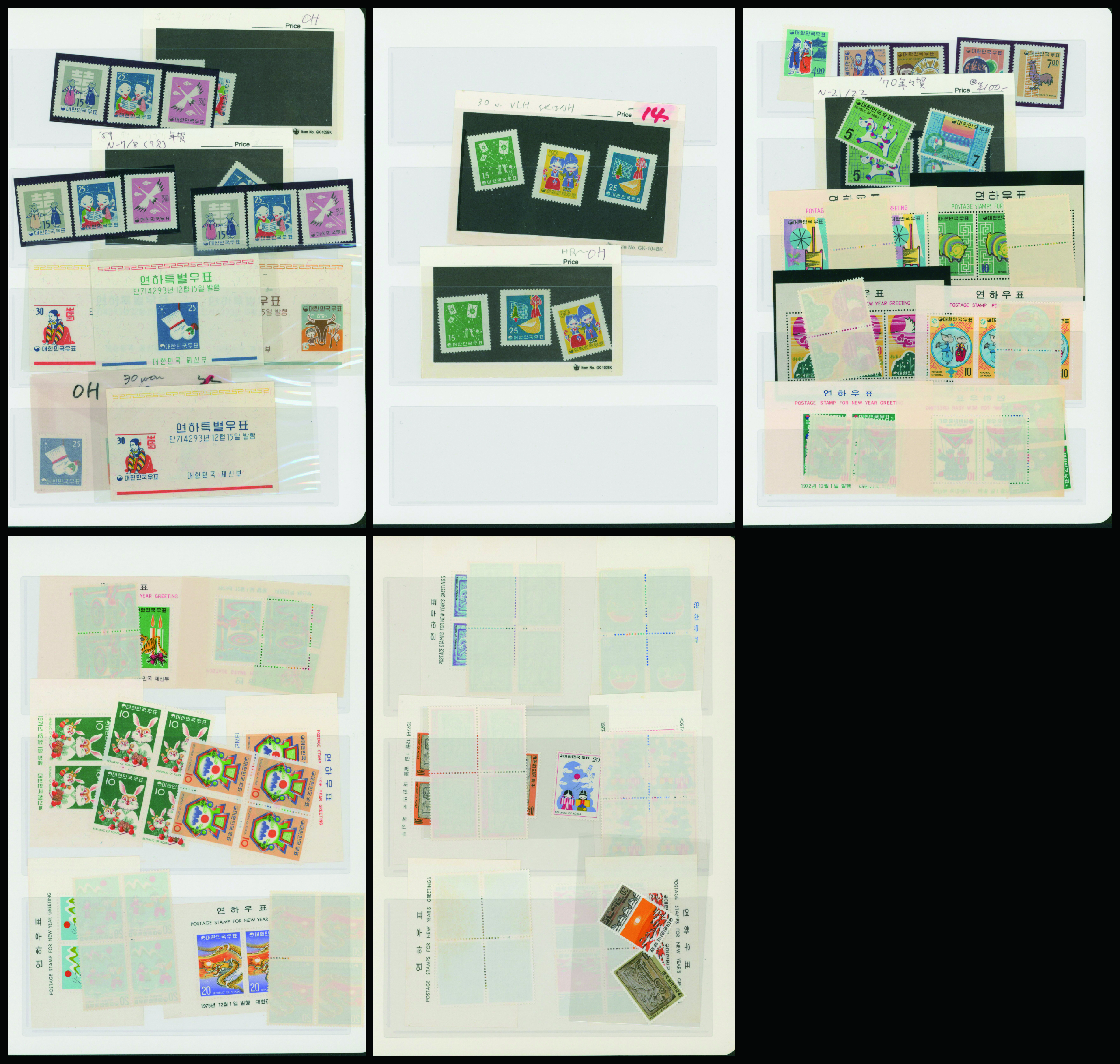 South Korea 1960s~ 5 leaves New Year Greeting Lot mainly unused with some used, (Image1) (Image2)