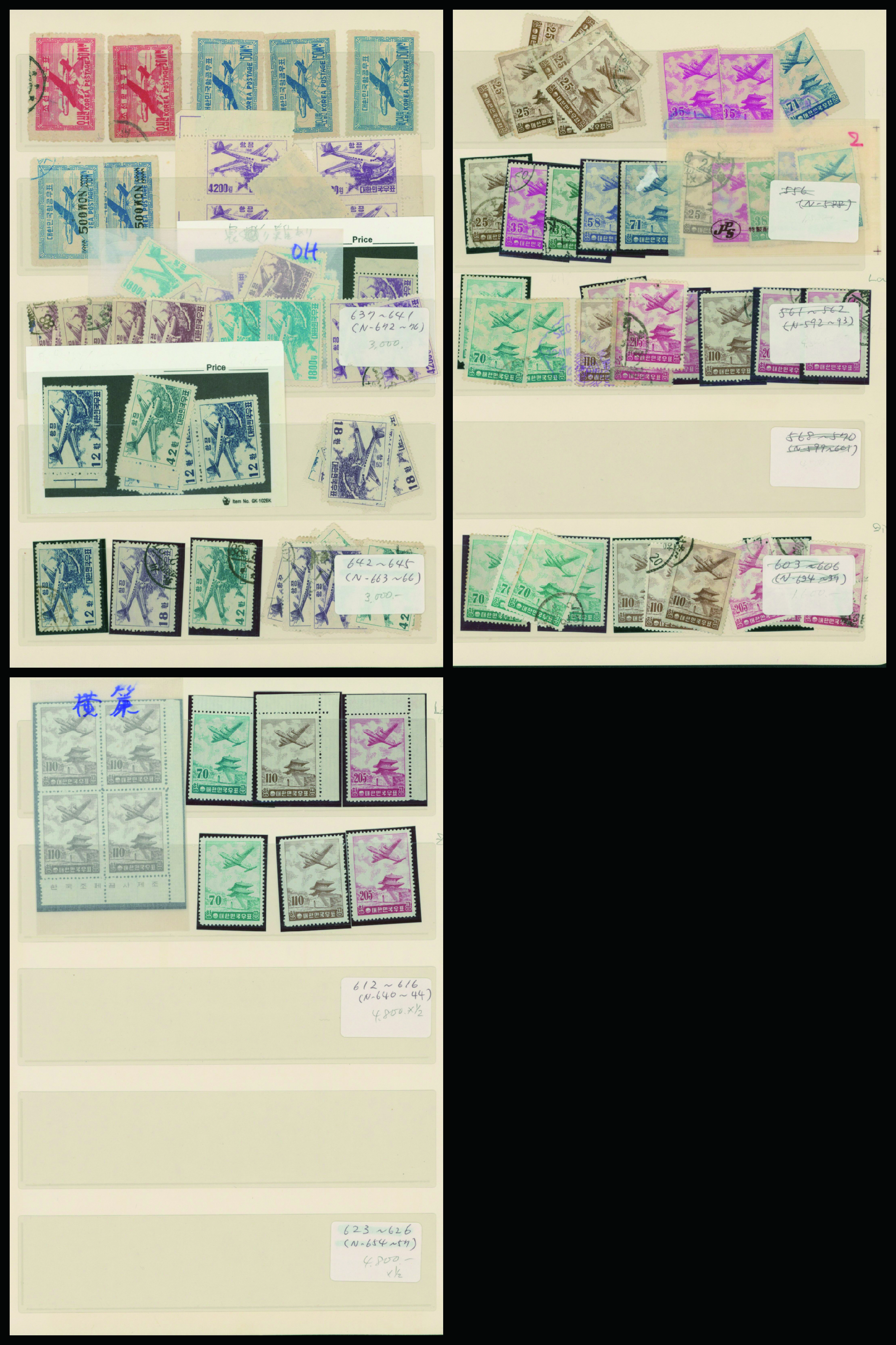 South Korea 1947-57 Airmail stamp 3 leaves mainly used with some unused, (Image1) (Image2)