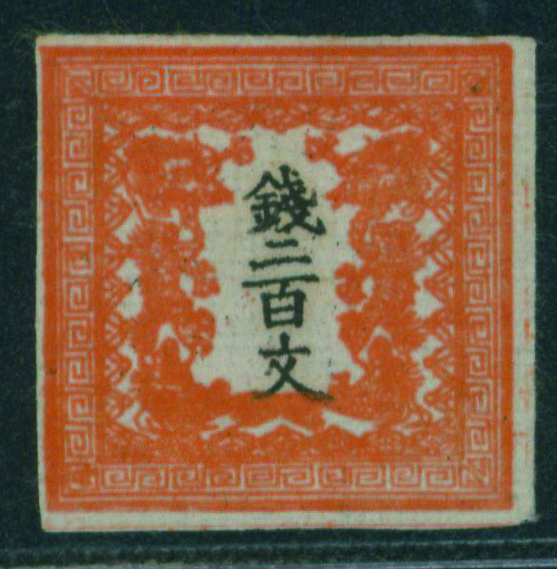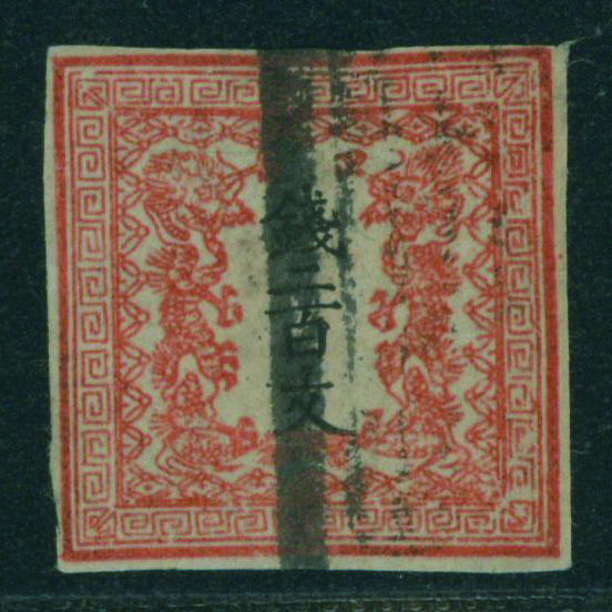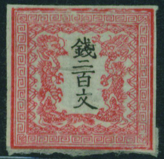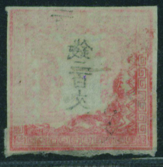 Dragon 200 Mon pl.1 pos.31 unused stained, paper attached, stamp repaired, cut into face, (Image1) (Image2)
