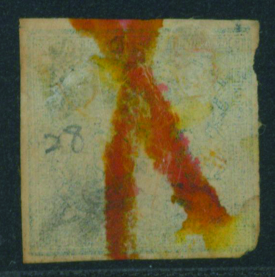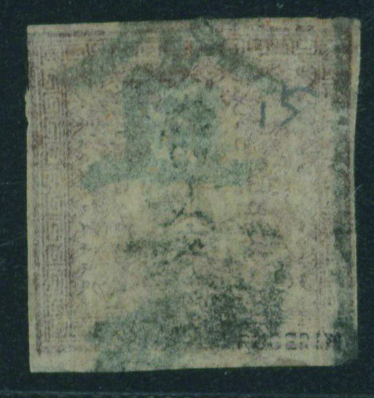 Dragon 48 Mon pl.1 pos.15 used cut into face, cancelled by framed three letters cancellation with