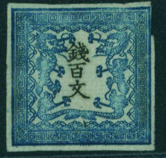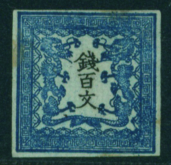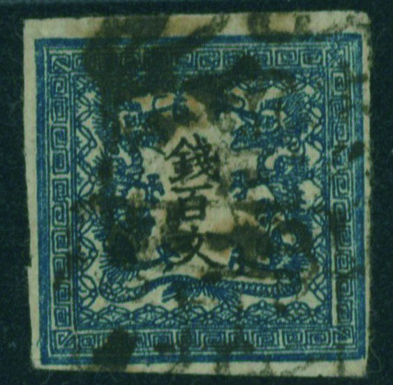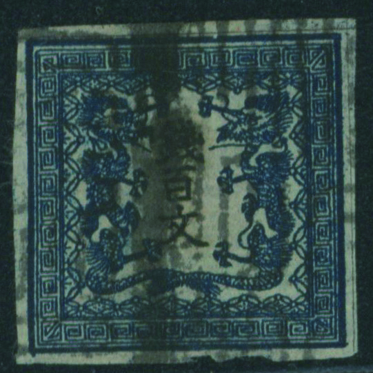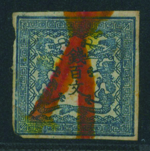 Dragon 100 Mon pl.2 pos.23 used stained, hinged, unreadable cancellation, (Image1) (Image2)