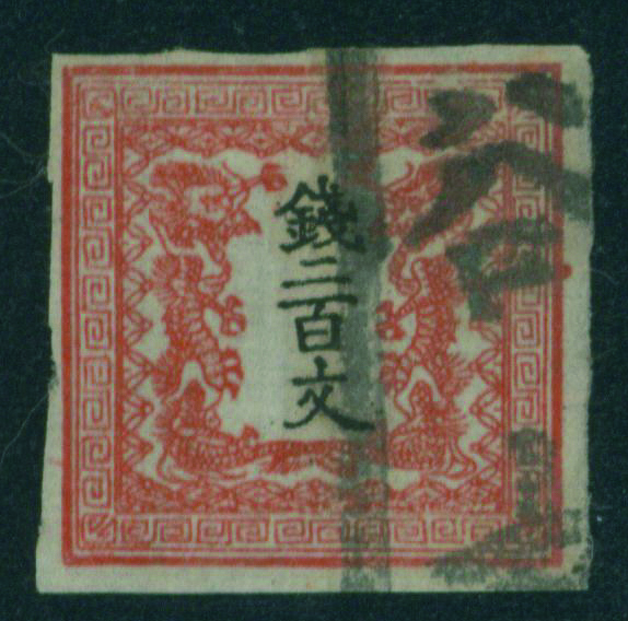 Dragon 200 Mon pl.1 pos.31 used hoarse shade, cut into face, cancelled by fancy cancellation (Image1) (Image2)