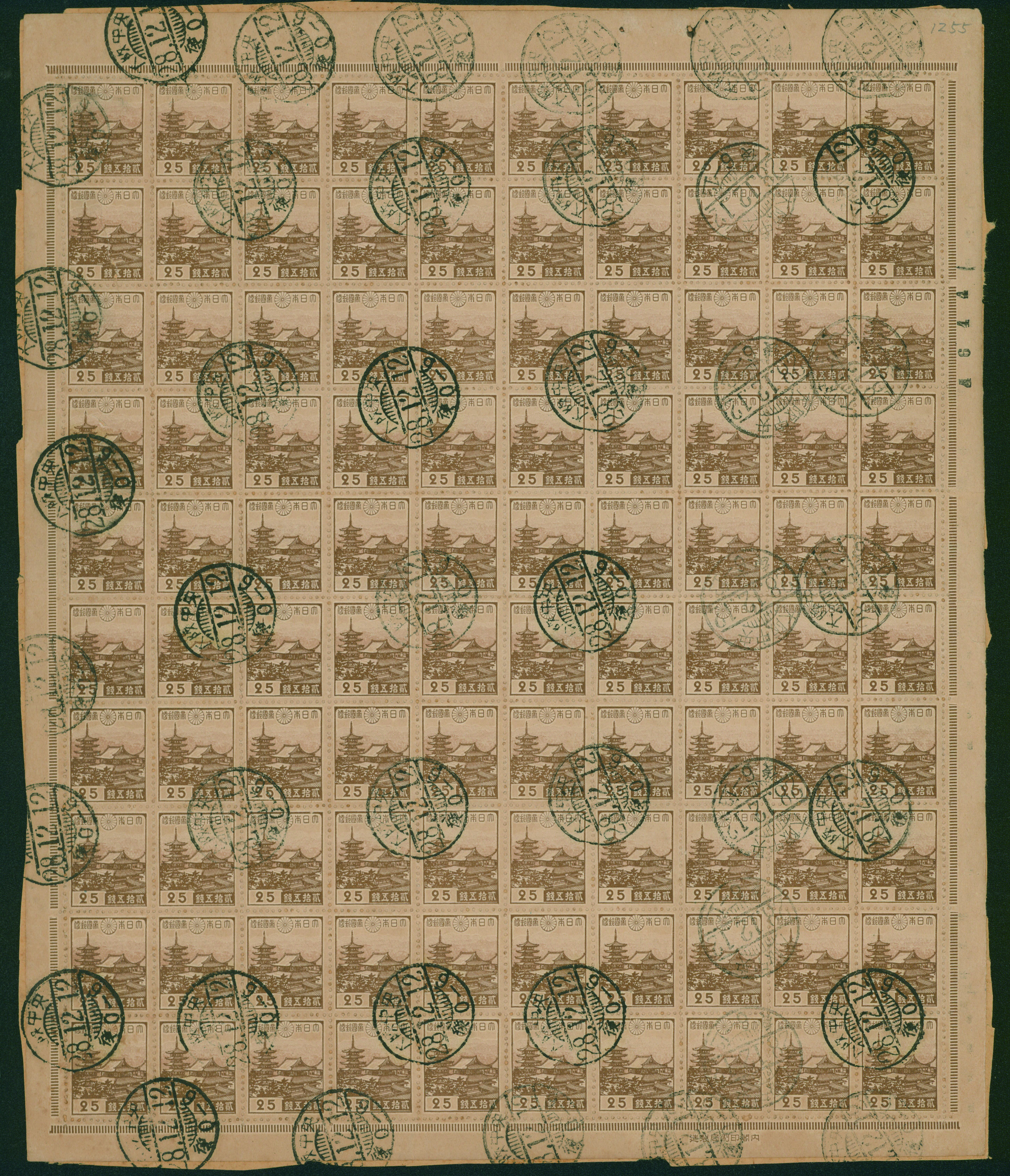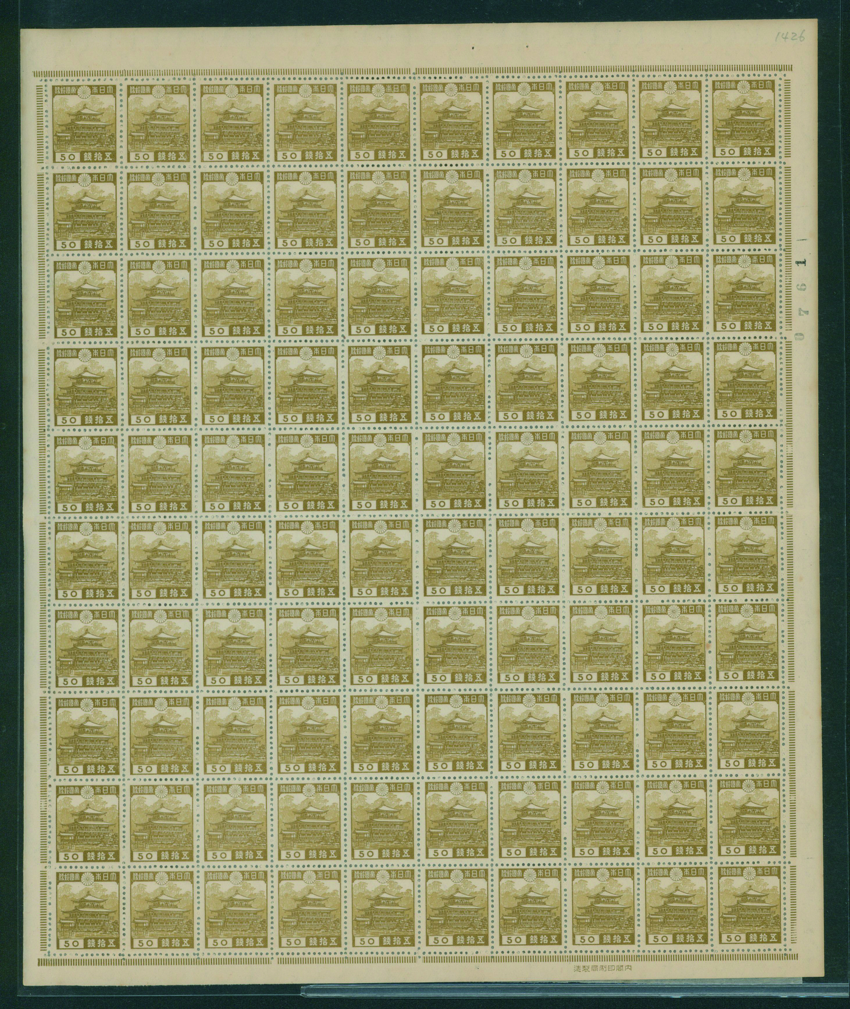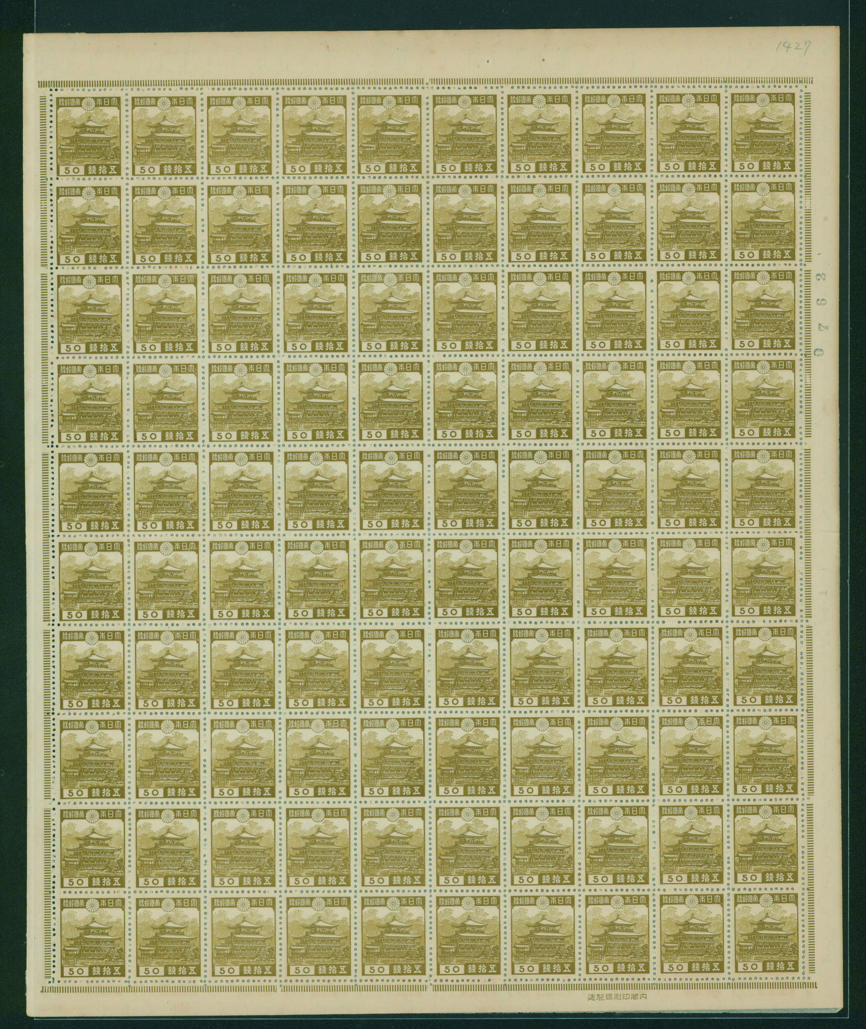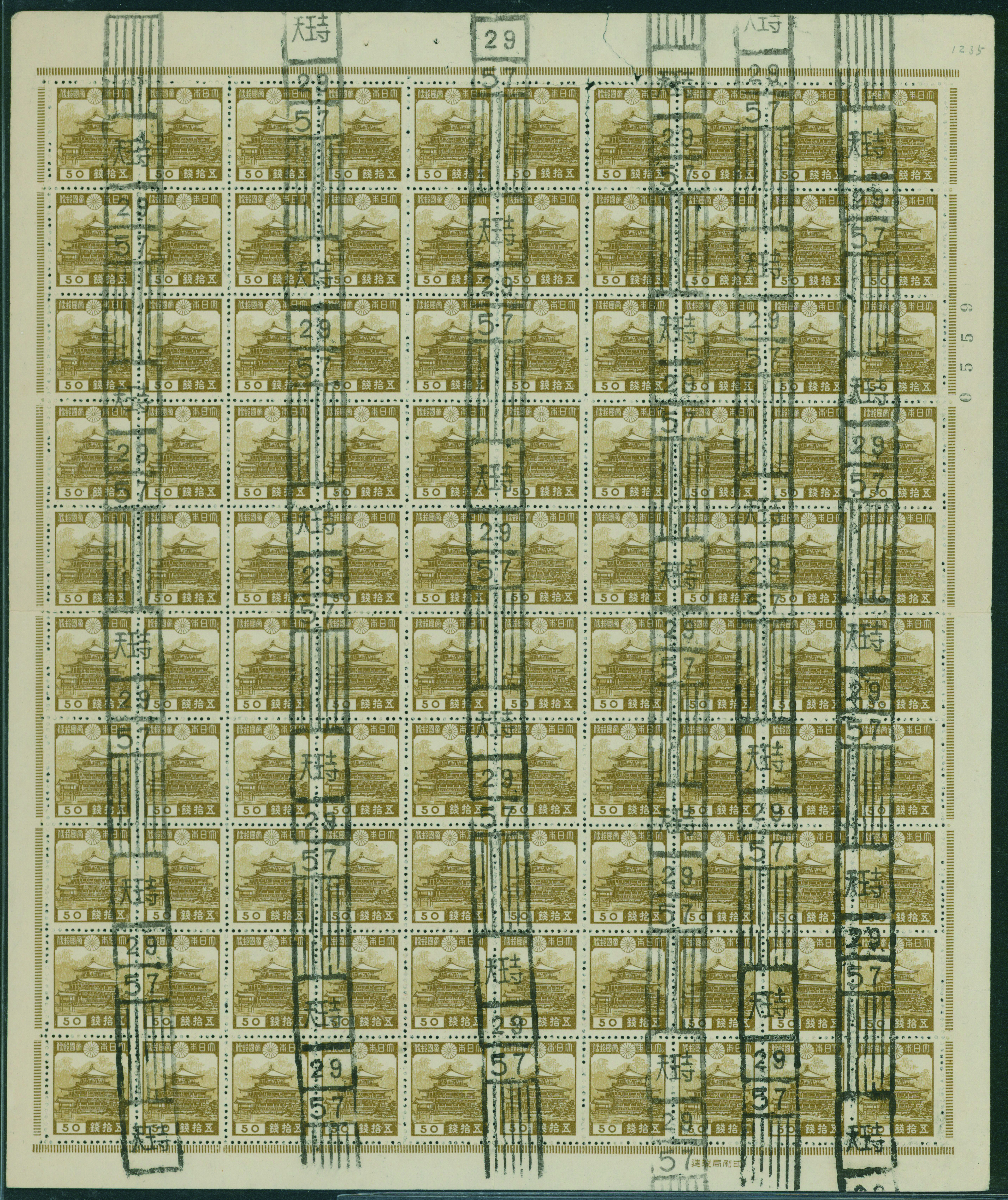 1937-1940 issue 50 Sen used sheet(s), cancelled by roller cancellation 1954-05-07 Tennouji (Image1) (Image2)