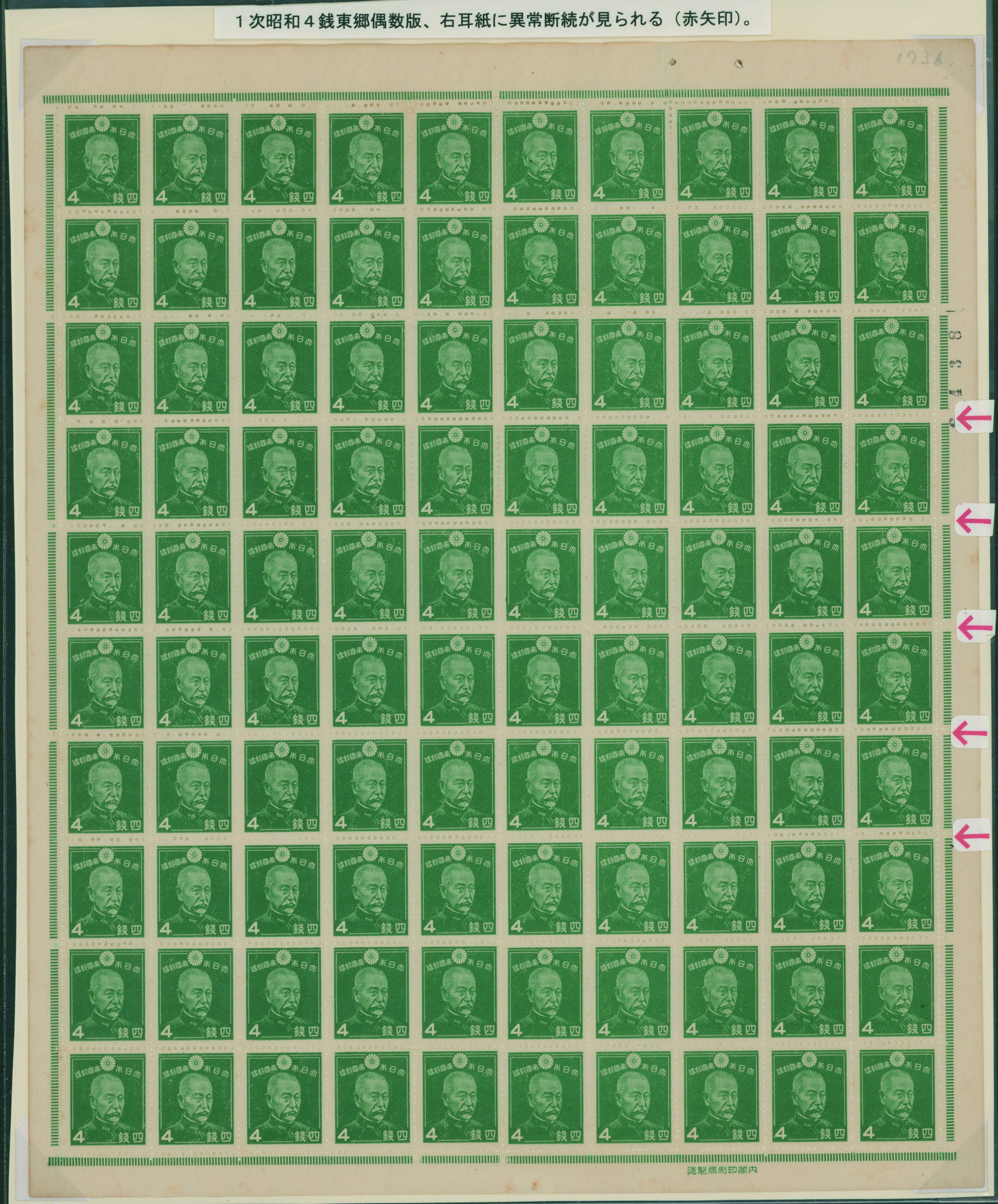 1937-1940 issue 4 Sen unused sheet(s), slip paper attached to the back, (Image1) (Image2)