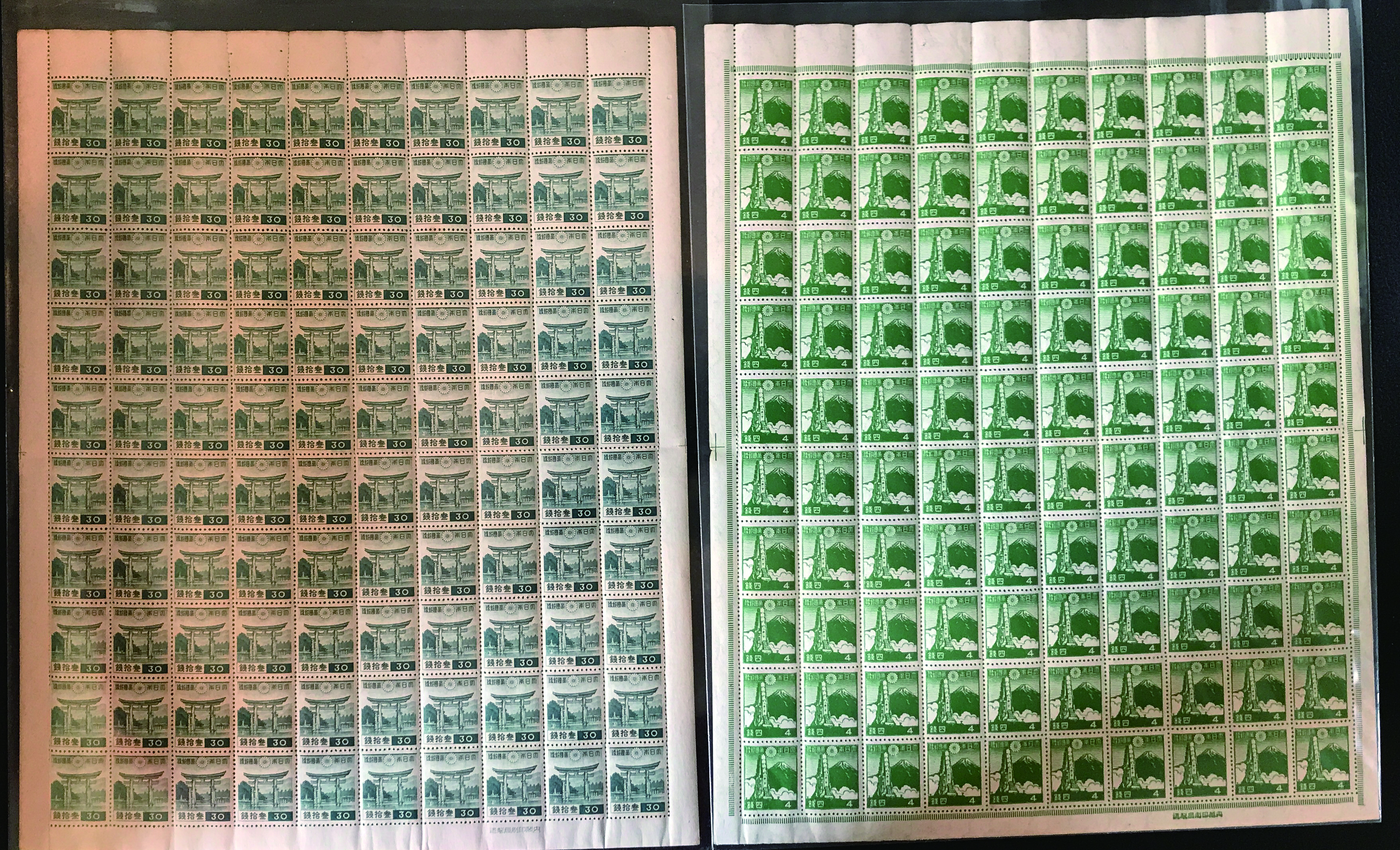 1937-1940 issue 30 Sen, wartime issue 4 Sen unused sheet(s), (Image1) (Image2)