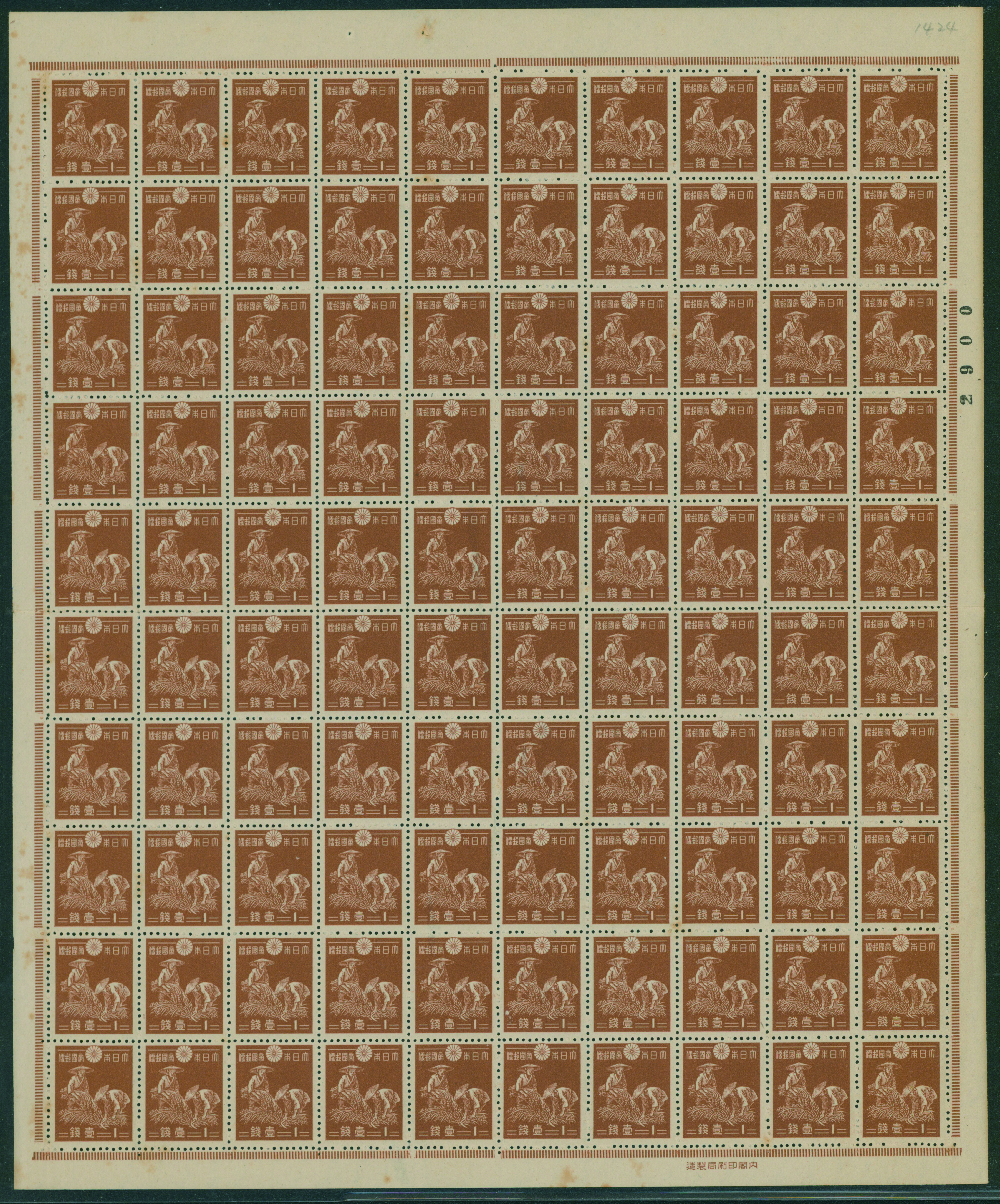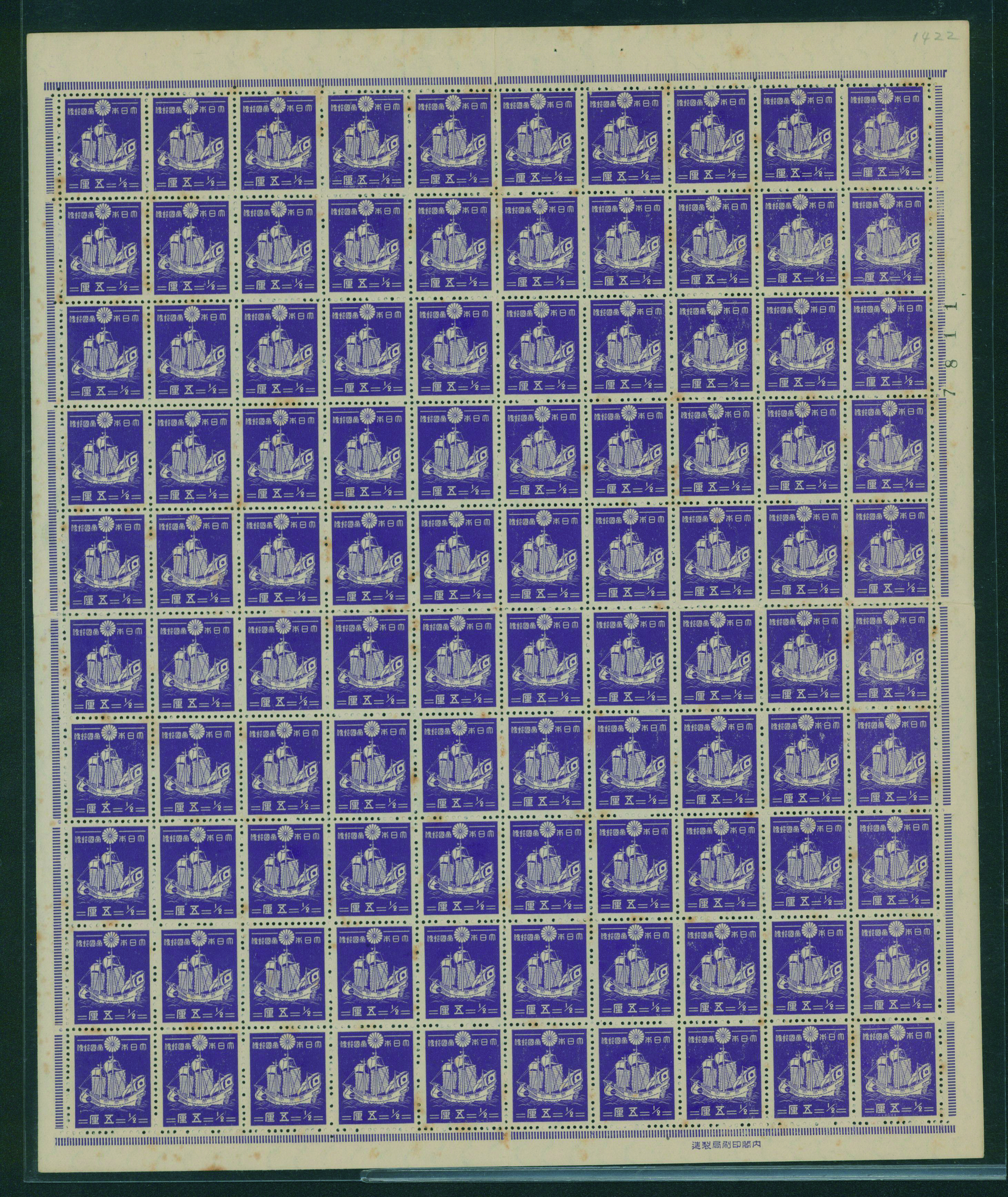1937-1940 issue 1 Sen unused stained, sheet(s), (Image1) (Image2)