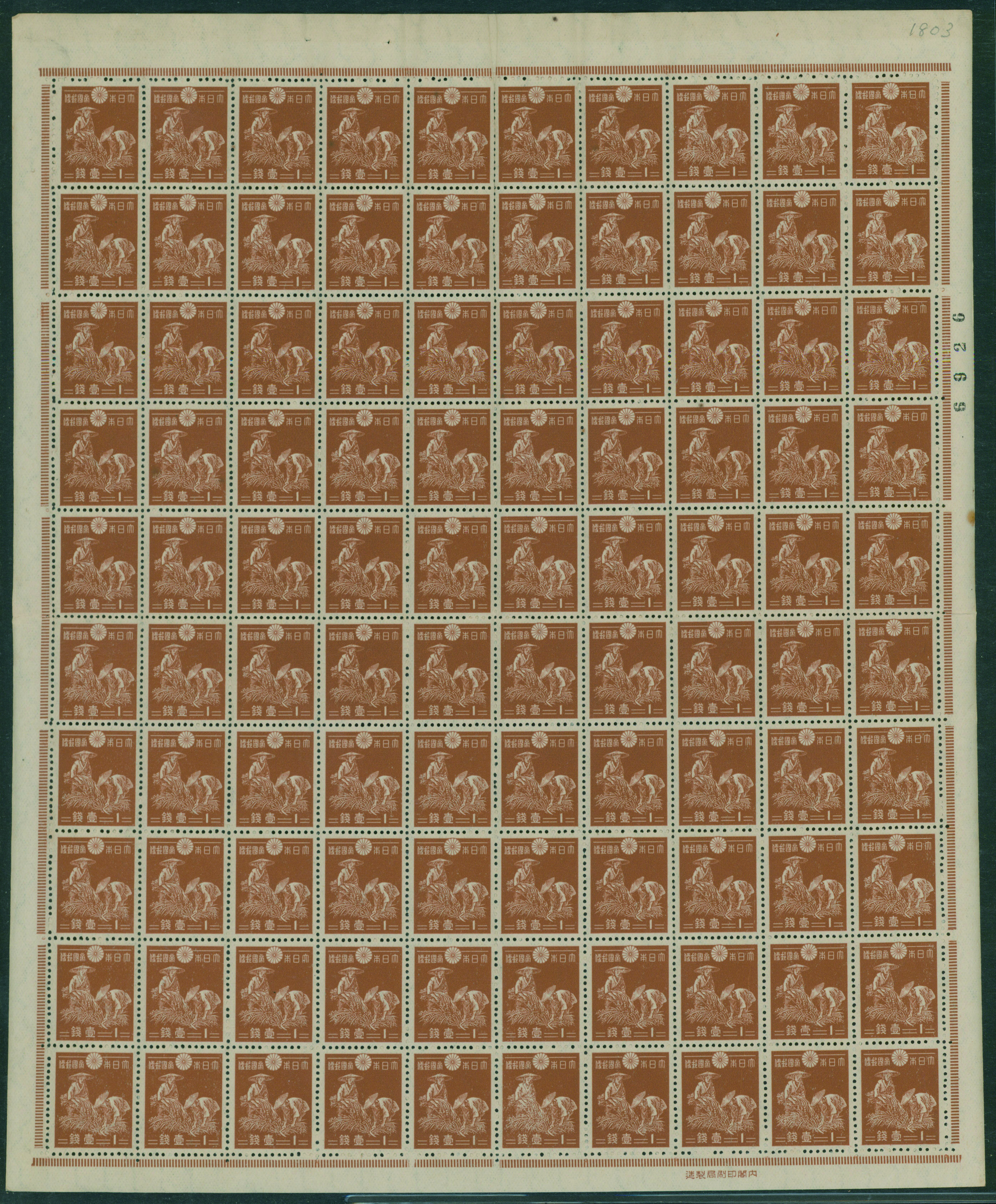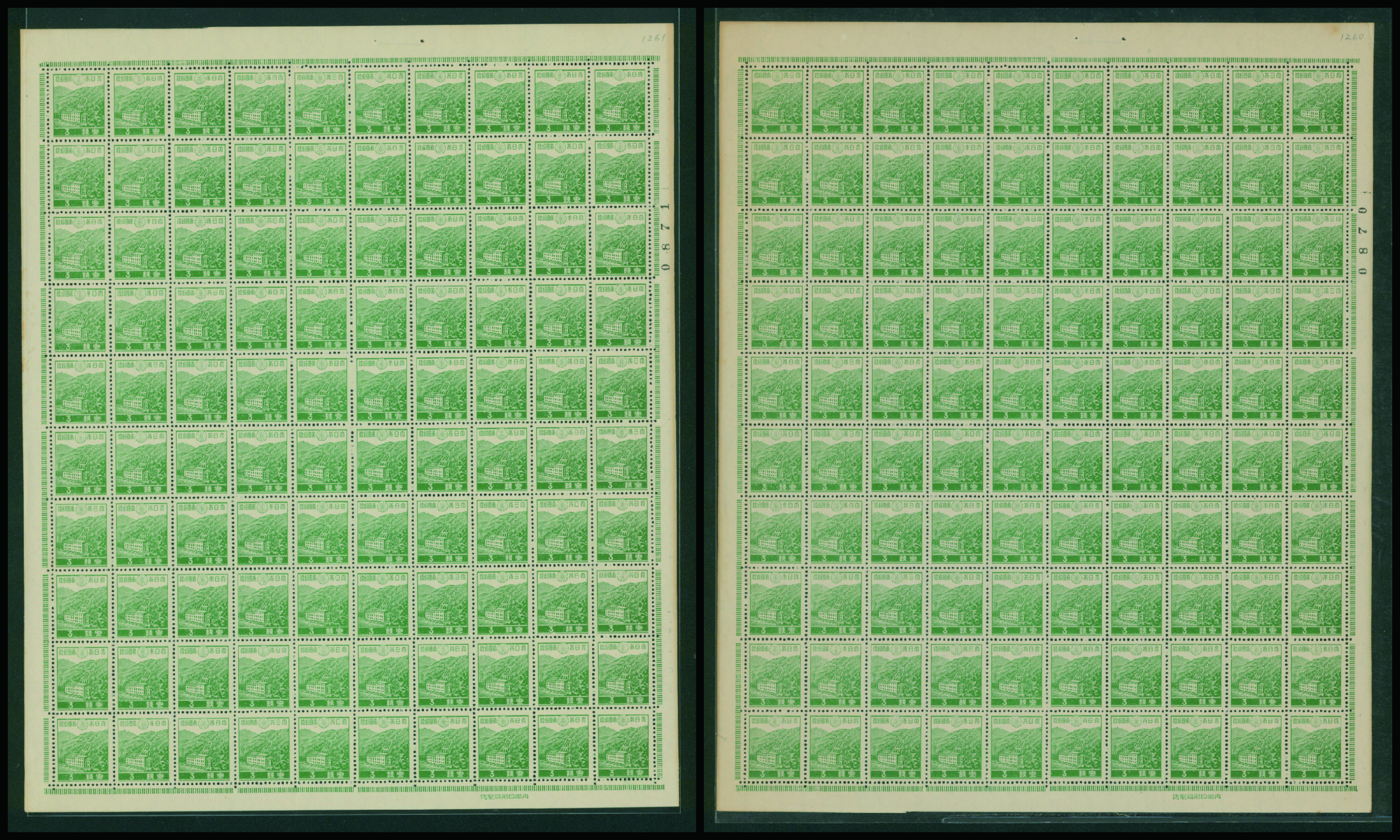1937-1940 issue 3 Sen unused 2 sheets (Image1) (Image2)