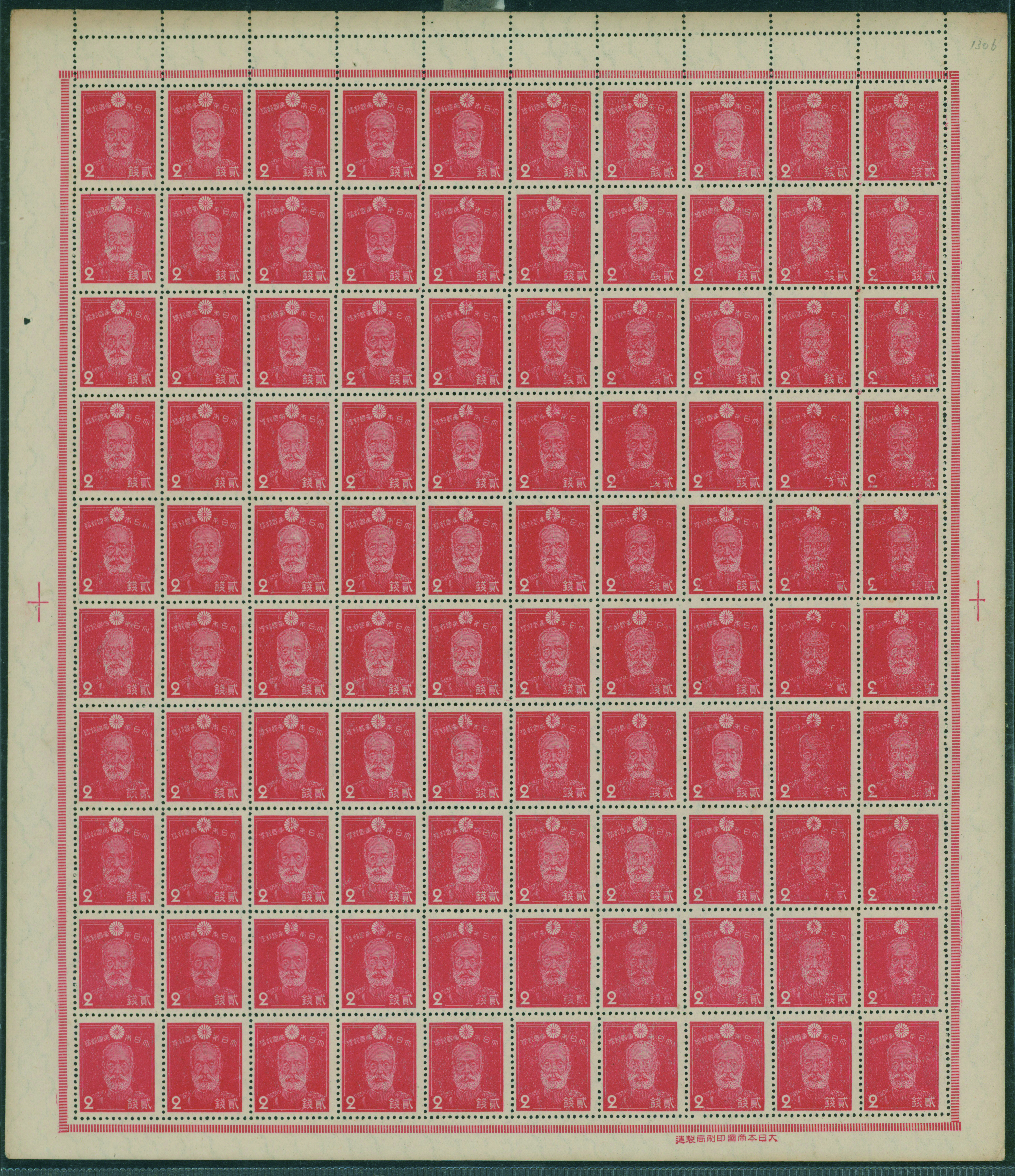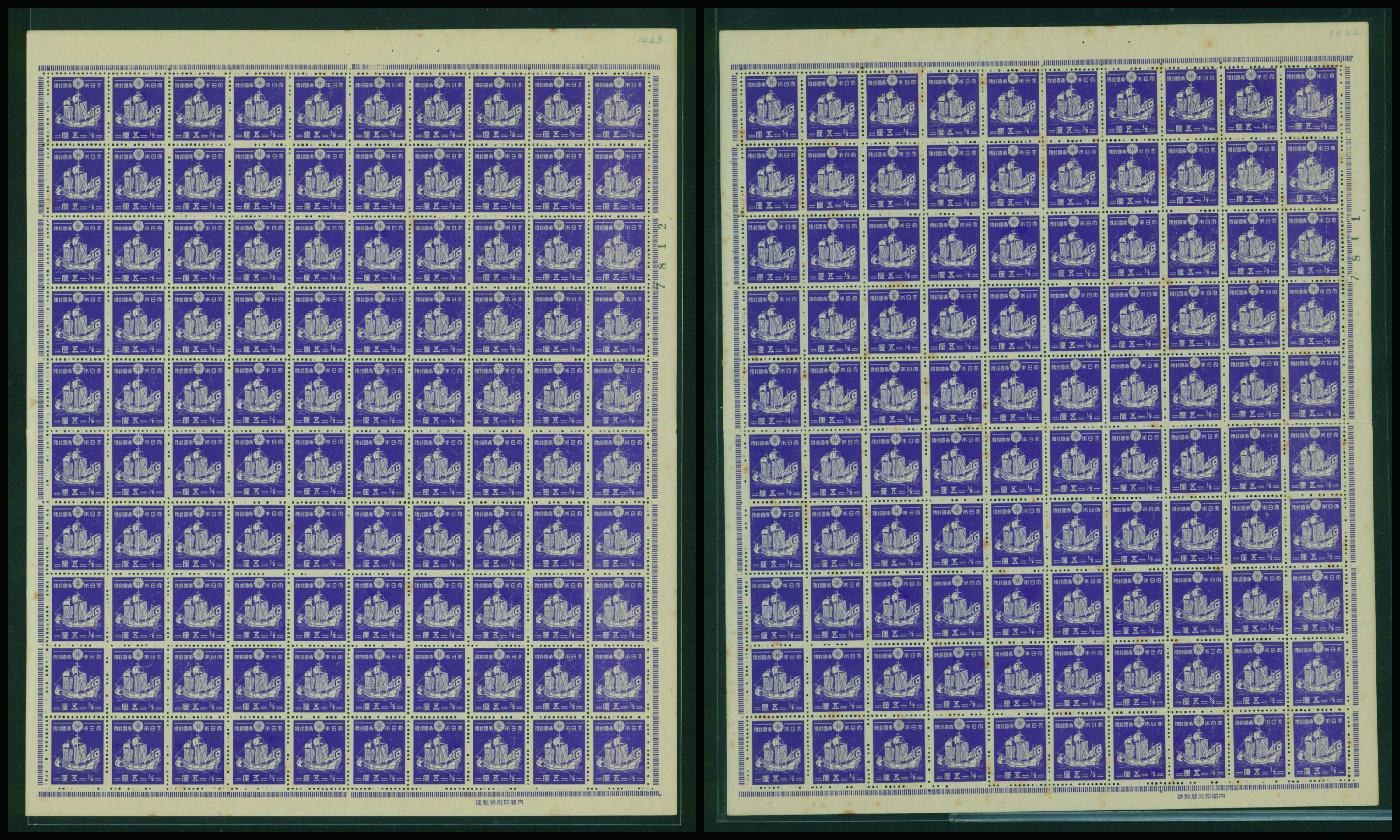 1937-1940 issue 2 Sen unused stained, sheet(s), (Image1) (Image2)