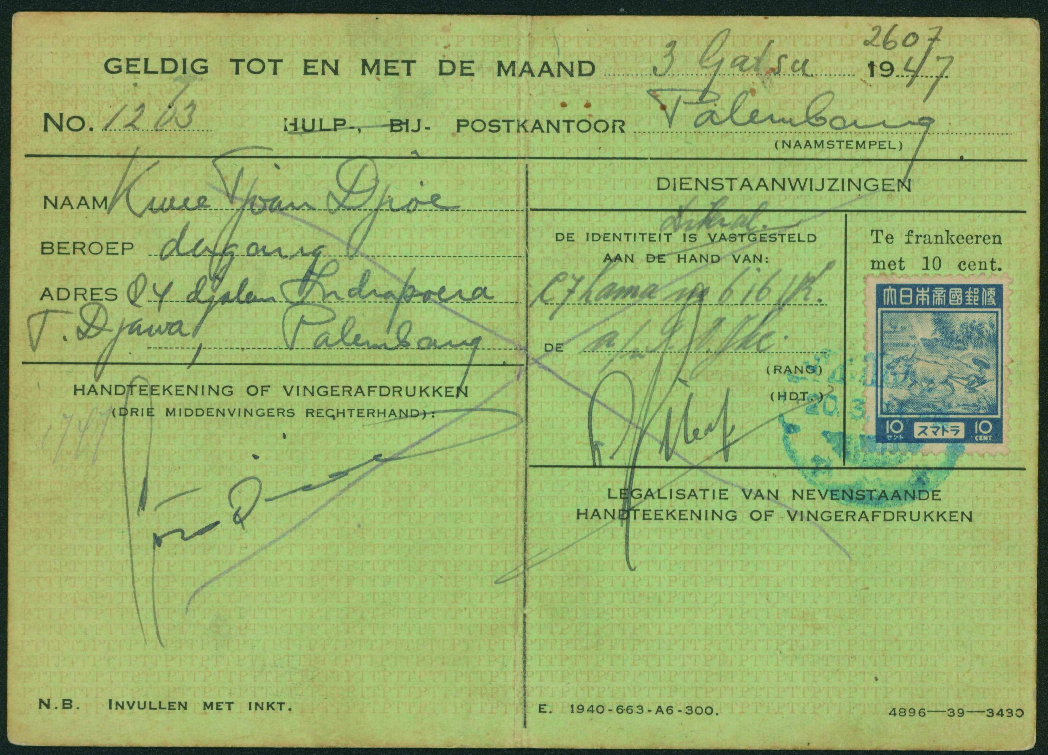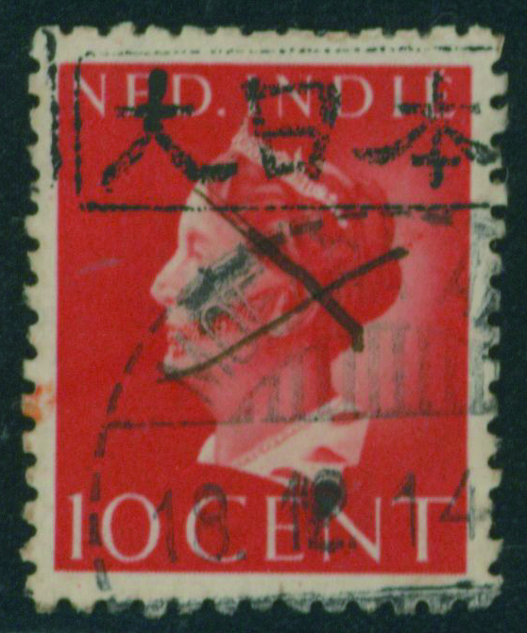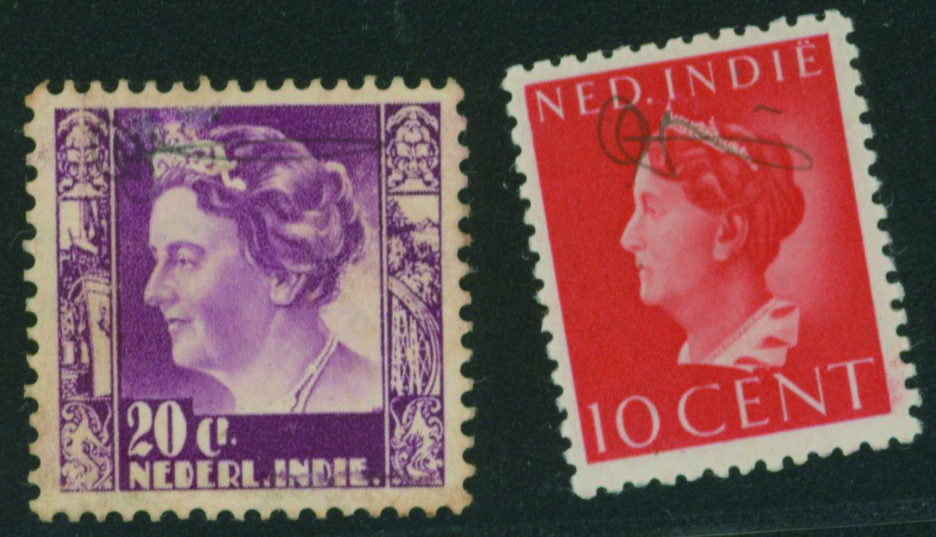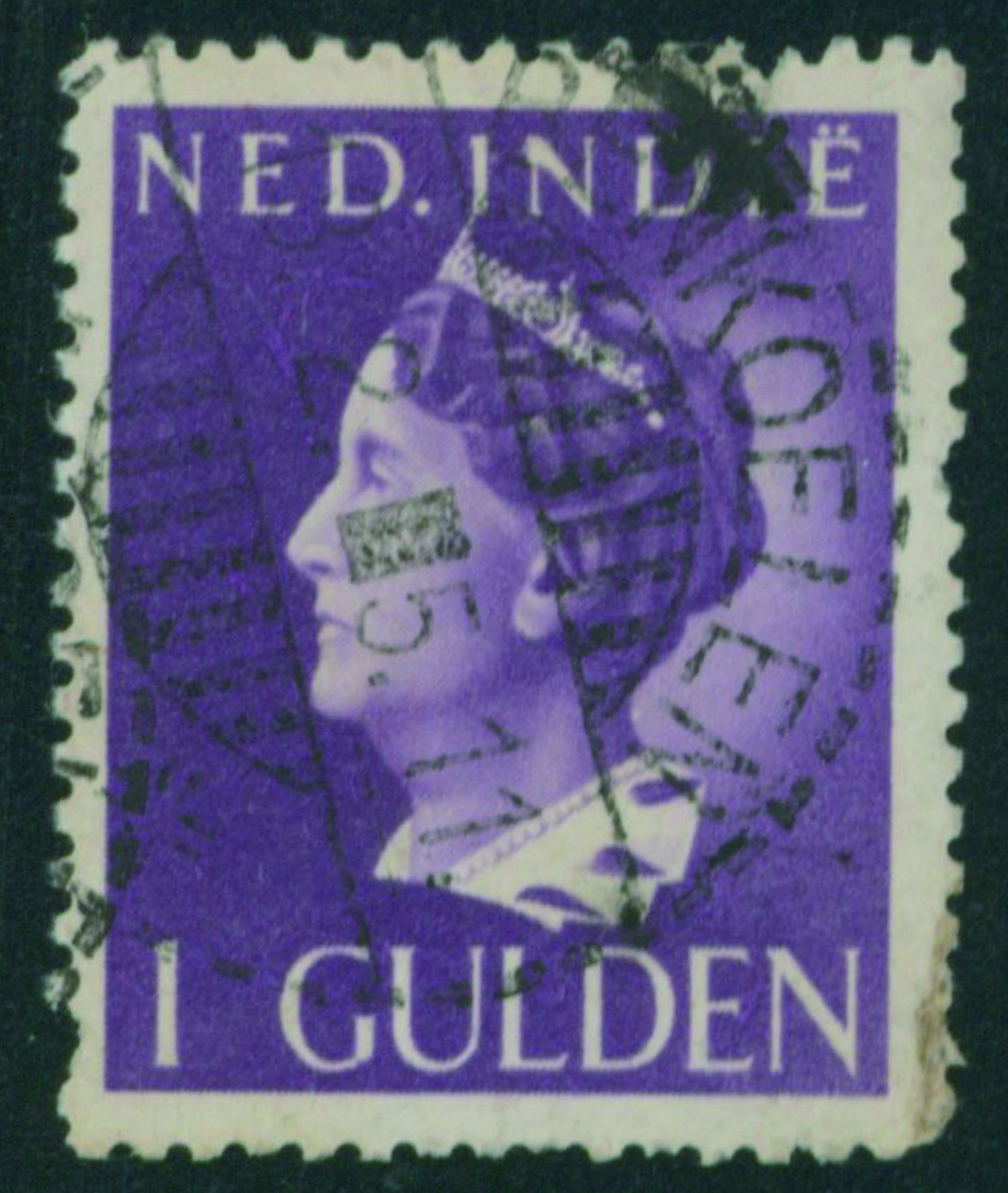 Ned. Indies 1 G non ovpt. used cancelled by datestamp 1945-02-13 Benkoelen (Image1) (Image2)