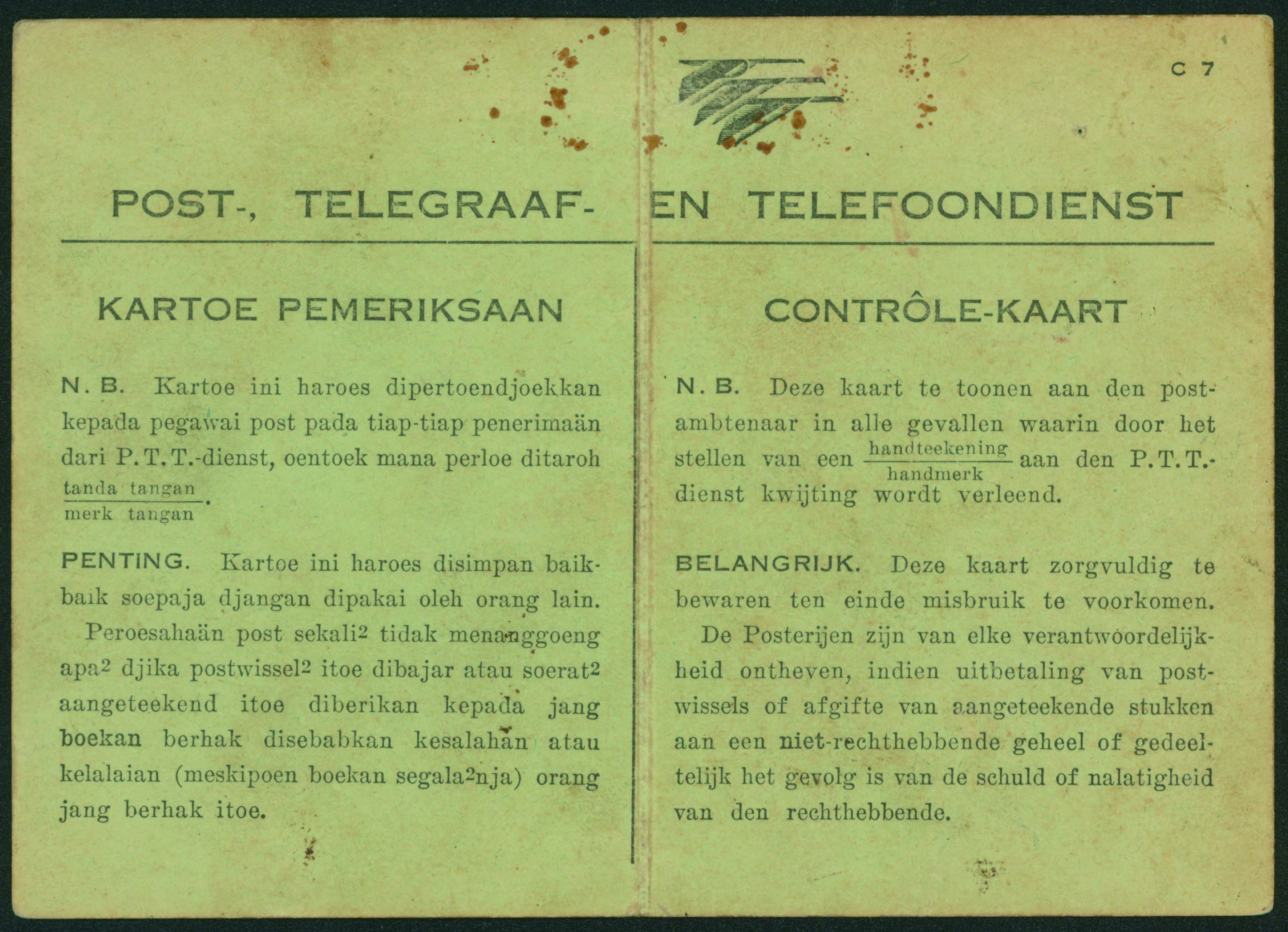 Ned. Indies Sumatra 5c single franking 2 examples money order, censored (Image1) (Image2)