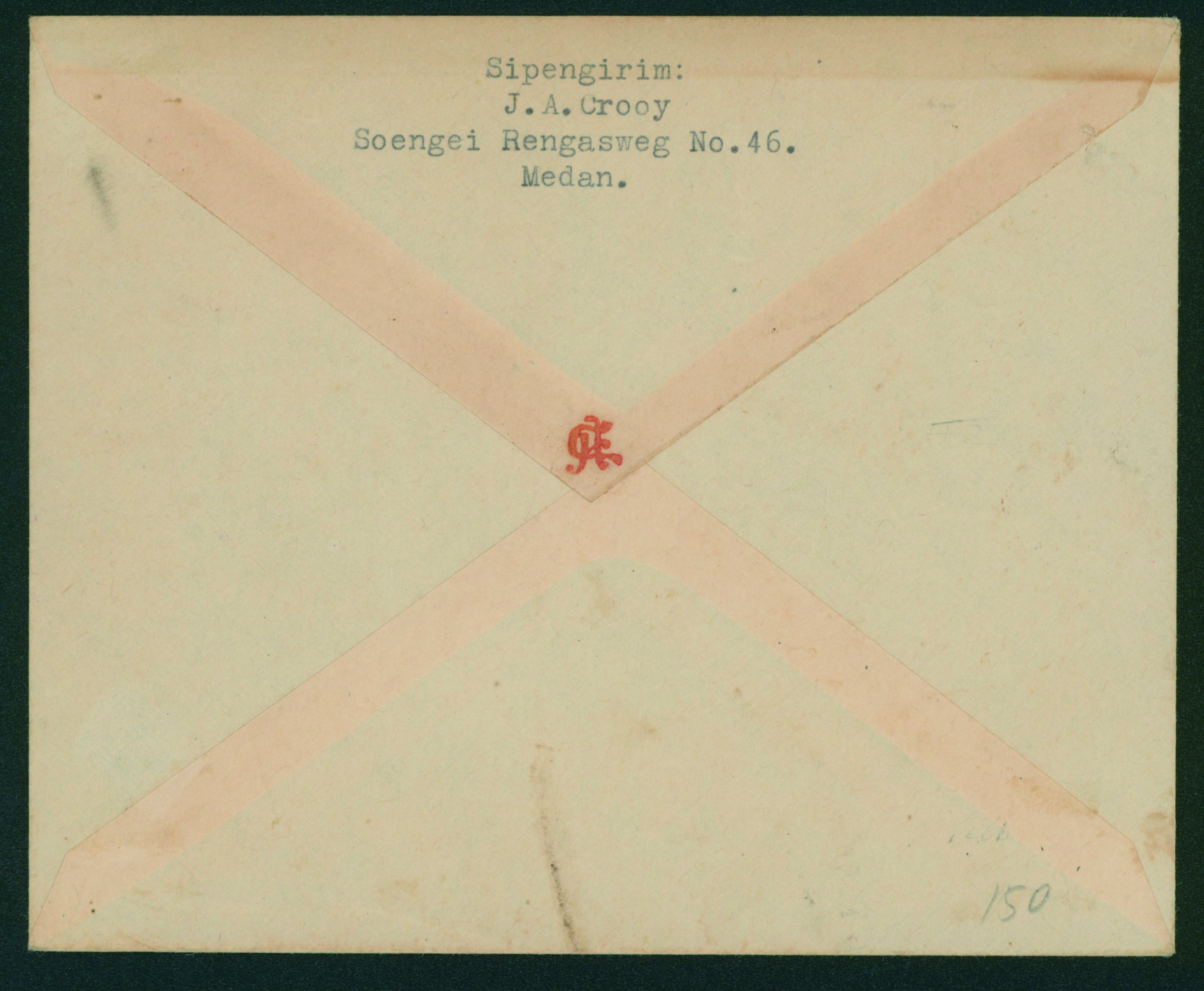 Sumatra 10c pictorial stamp single franking Post Telegraph cover stained, (Image1) (Image2)