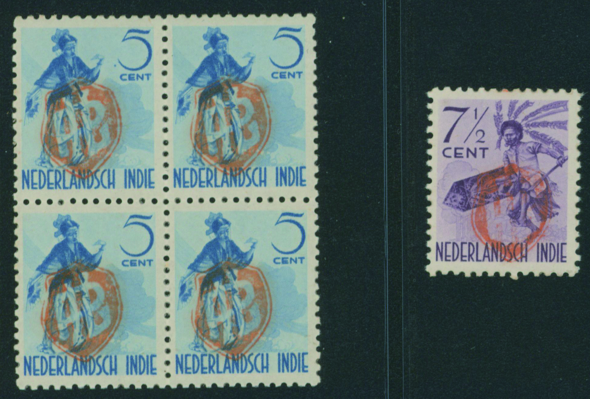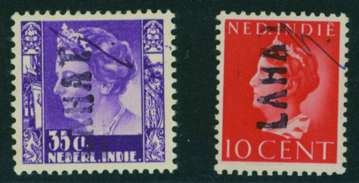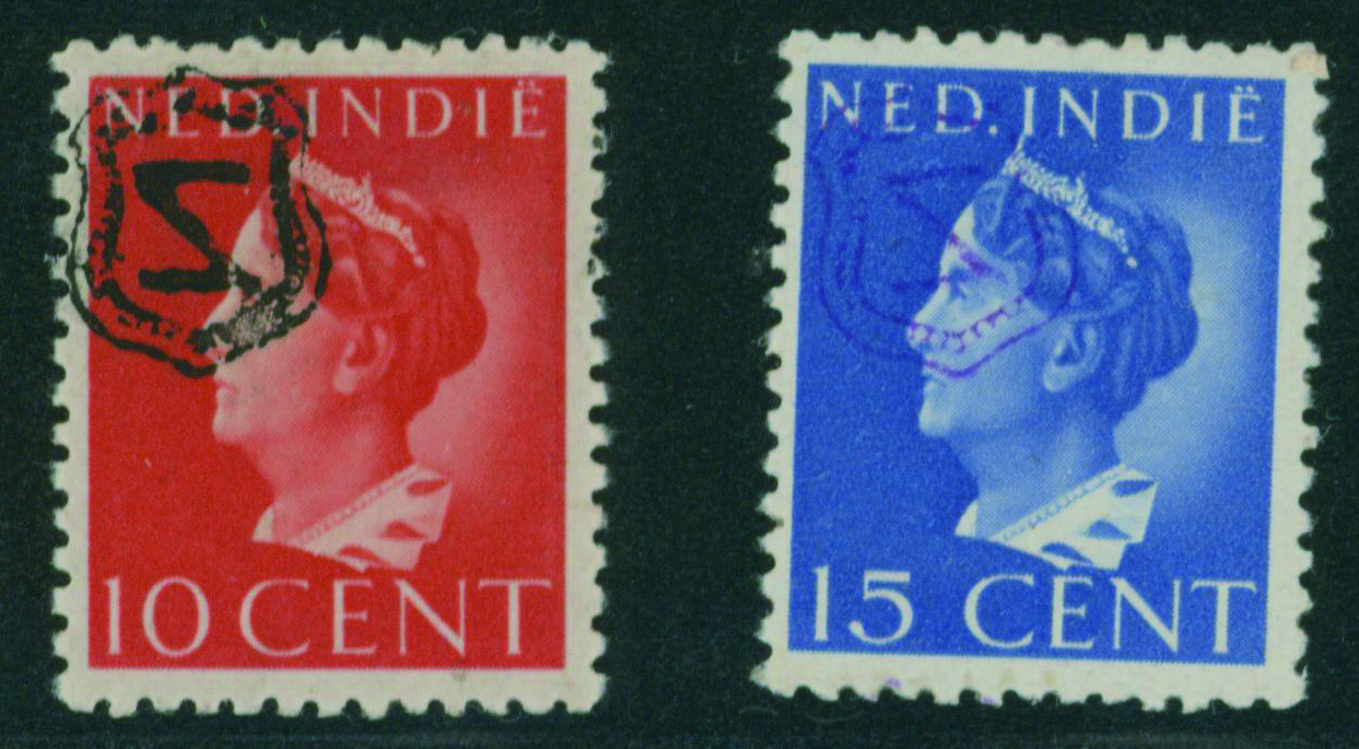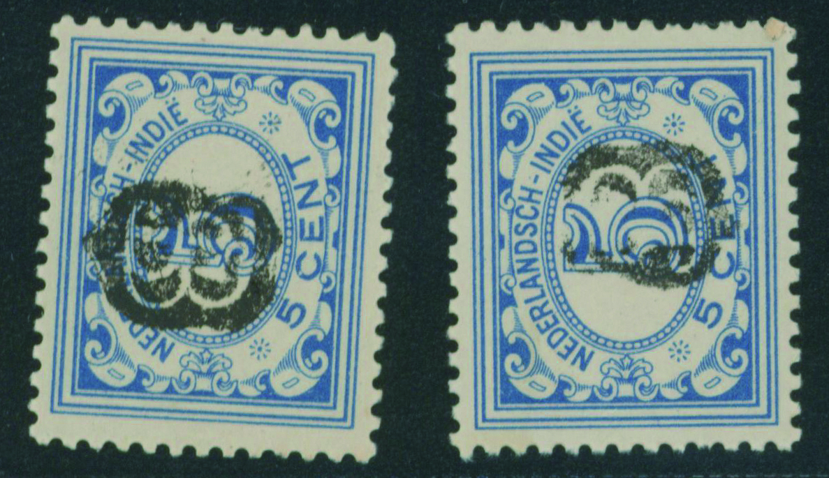 Ned. Indies palembang local ring ovpt. 2 examples unused included one inverted ovpt. (Image1) (Image2)