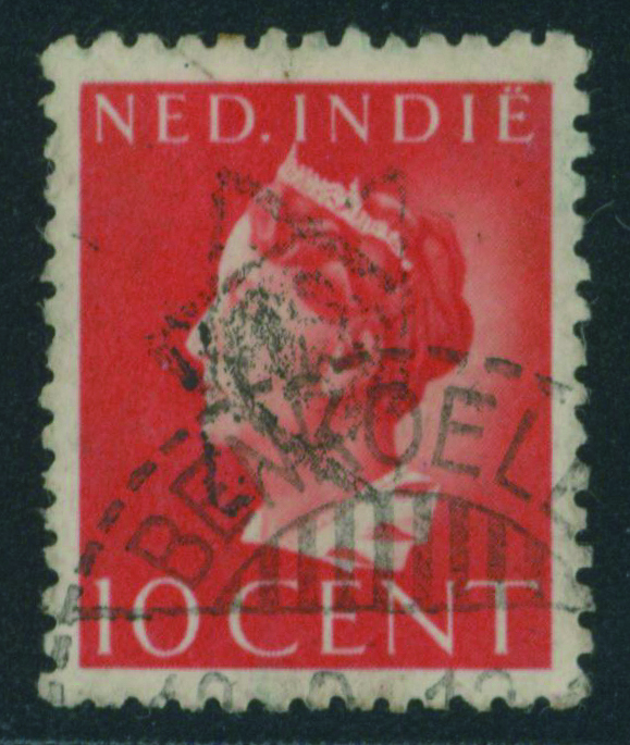 Ned. Indies benkulen ovpt. 10c used cancelled by datestamp Benkoelen (Image1) (Image2)