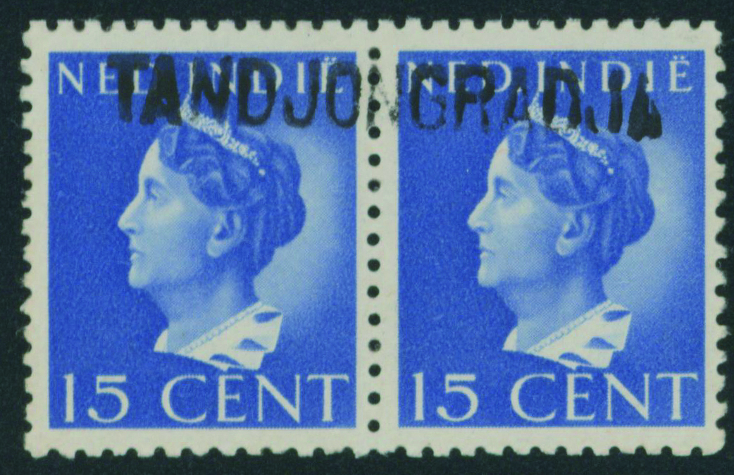 Ned. Indies palembang local 15c pair TANDJONGRADJA ovpt. unused (Image1) (Image2)