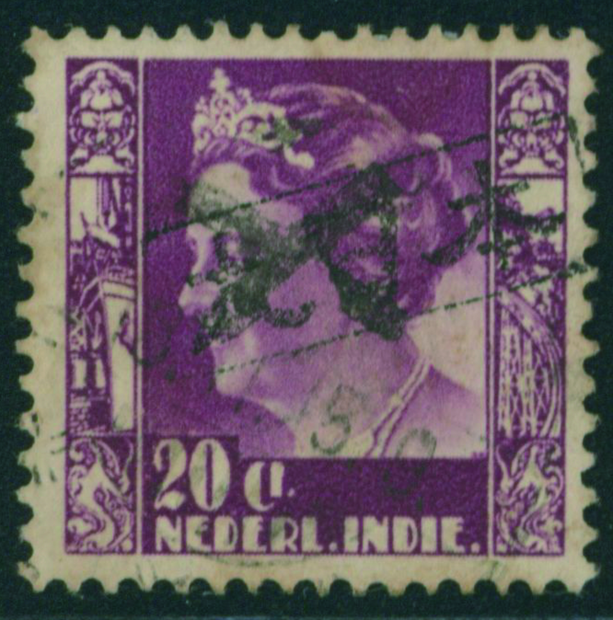 Ned. Indies 20c Sumatra, Benkoelen crossed overprint used cancelled by obliteration (Image1) (Image2)