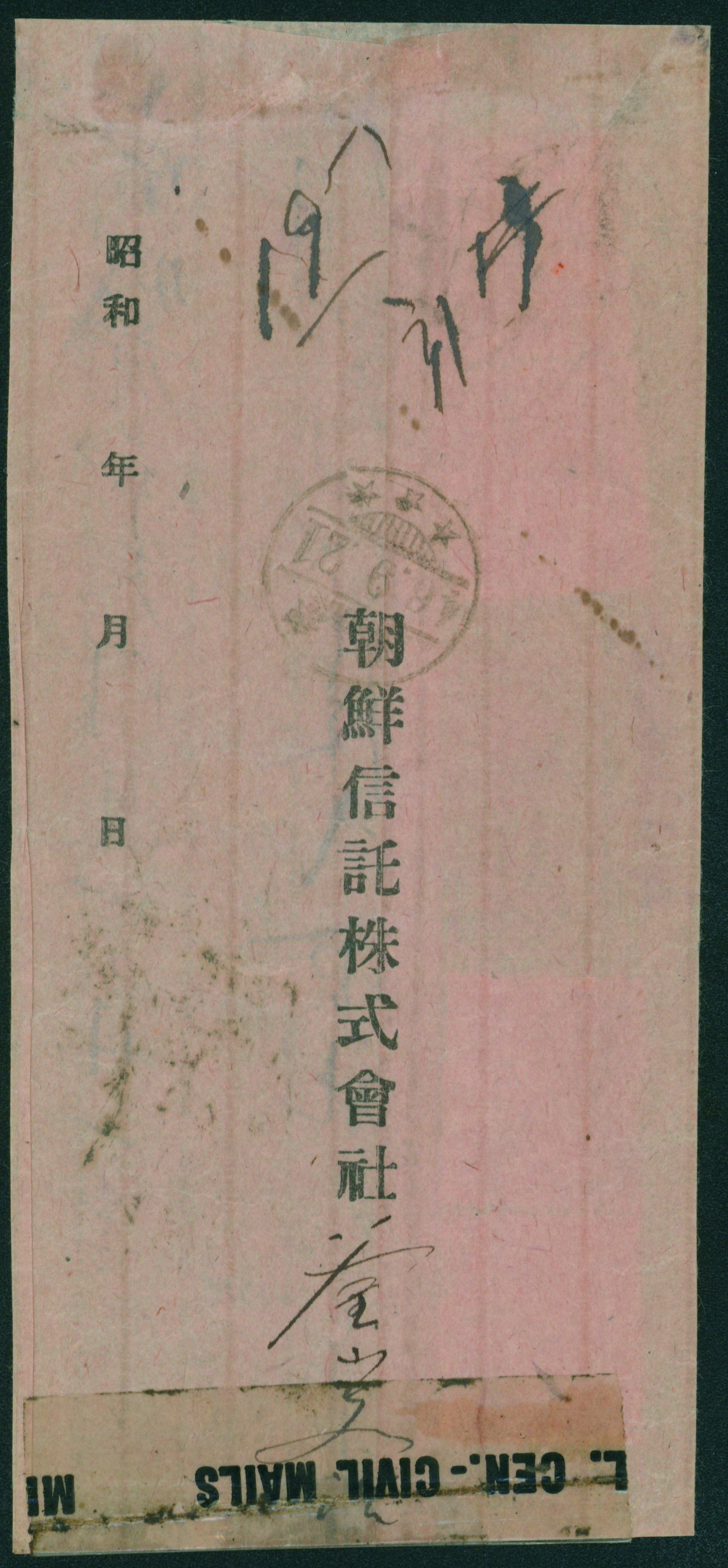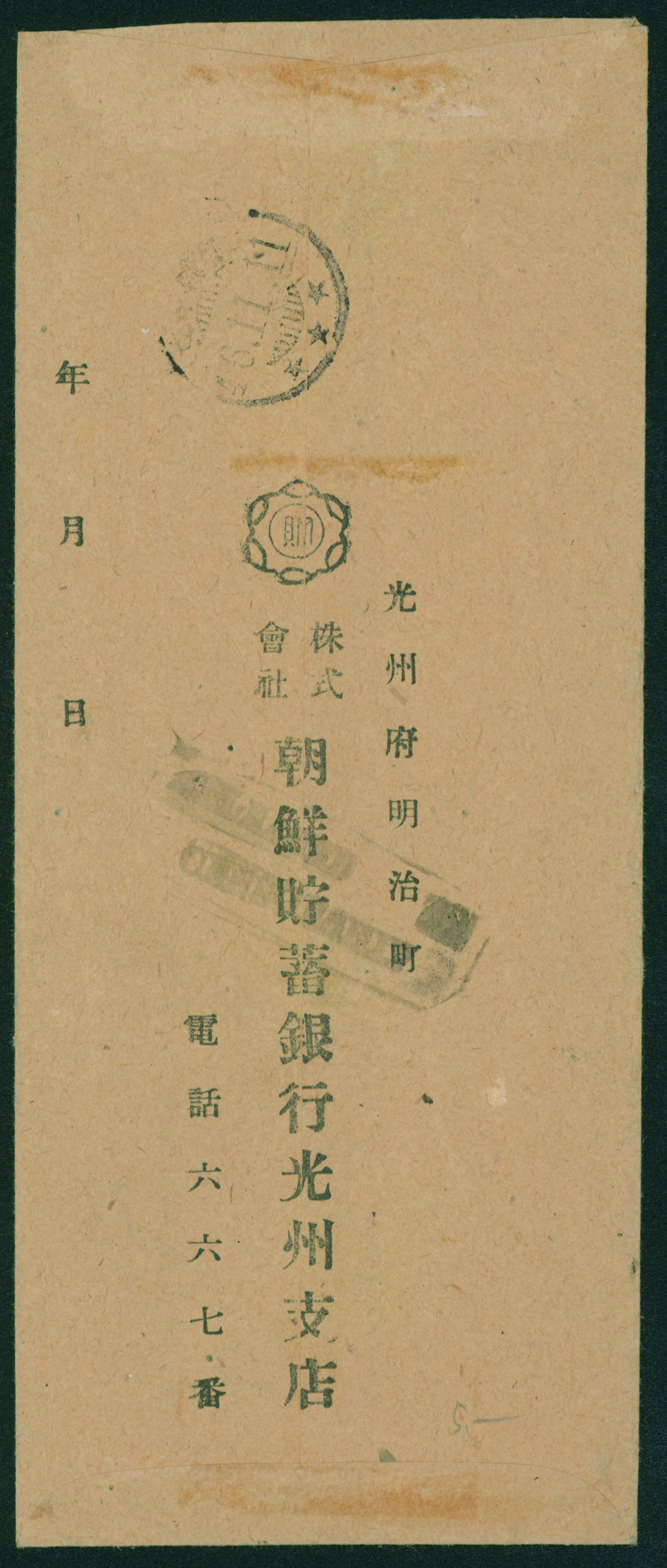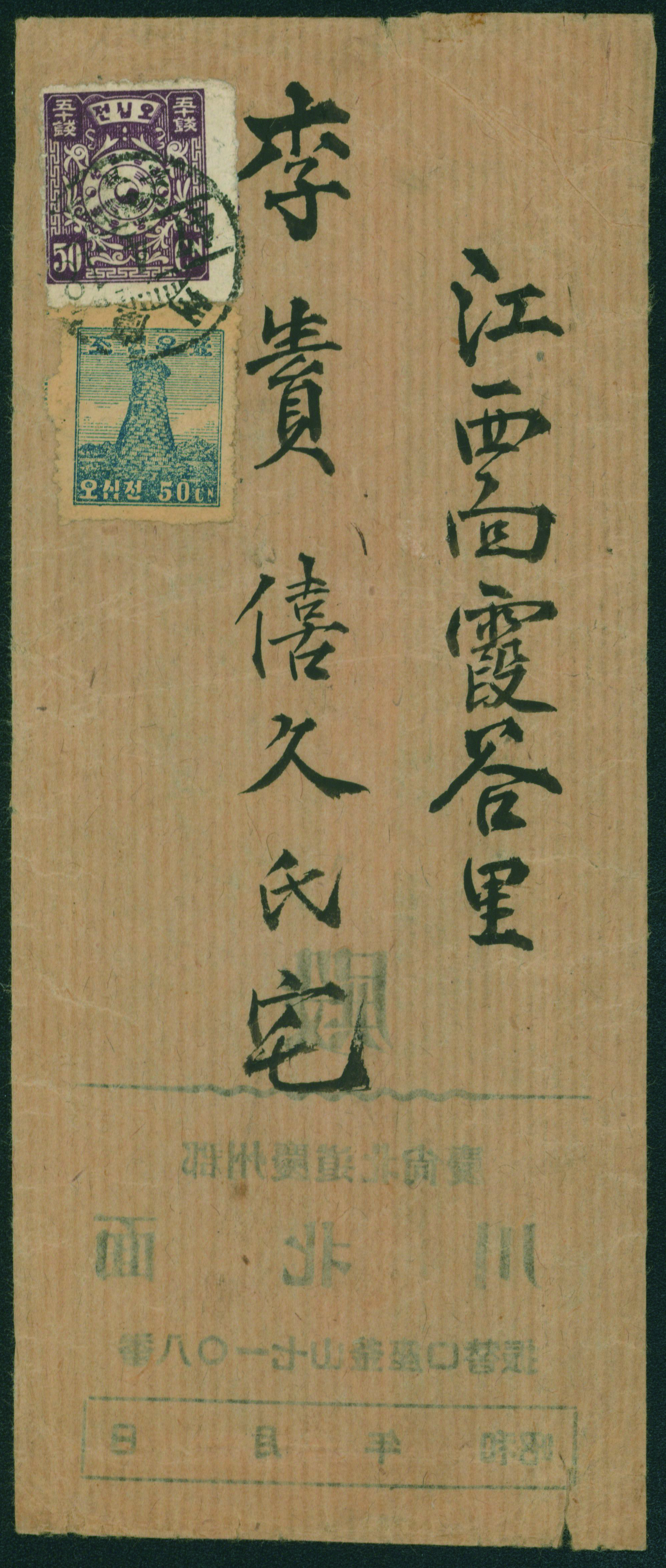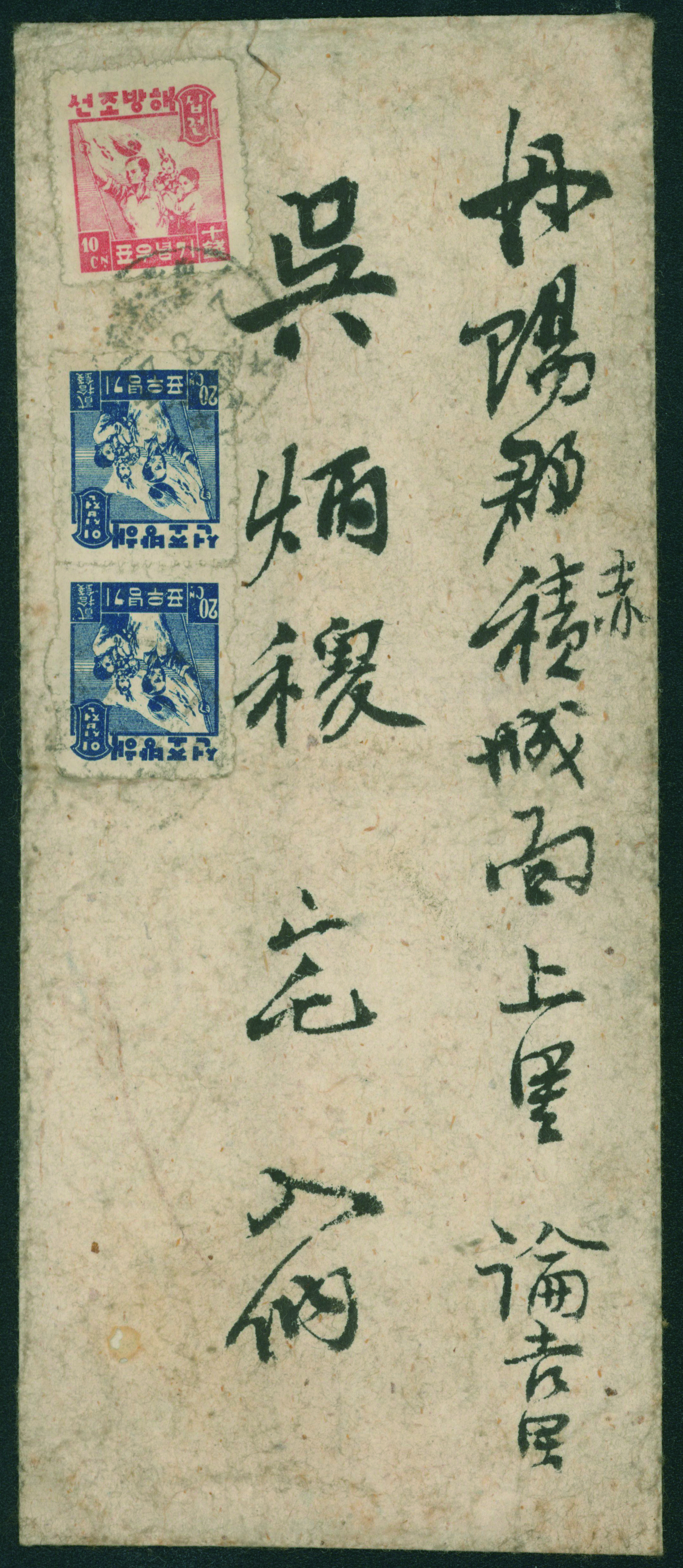 South Korea Liberation Issue 10sen Double Franking+Postage paid usage 慶北倉泉46.9.2 Rare (Image1) (Image2)