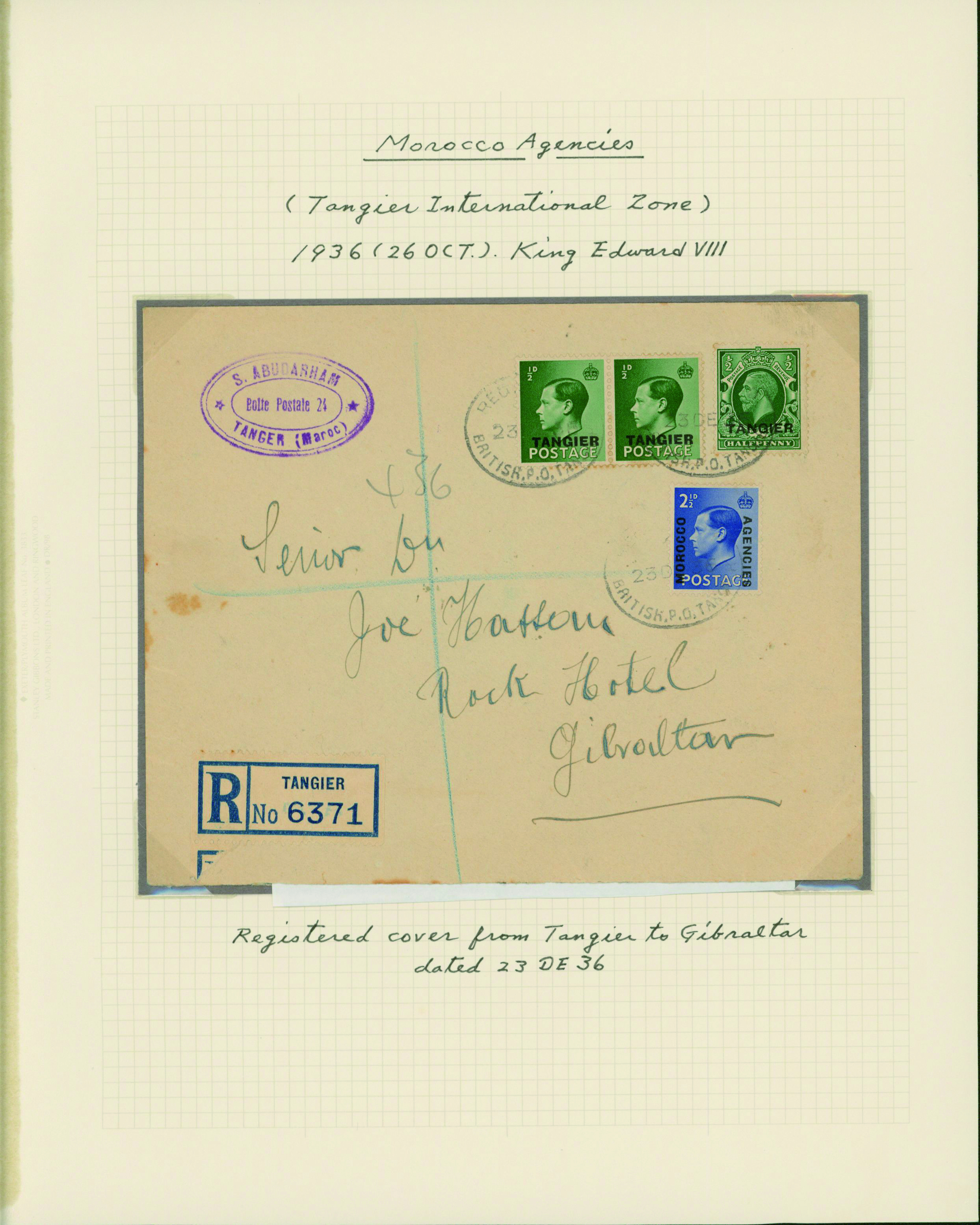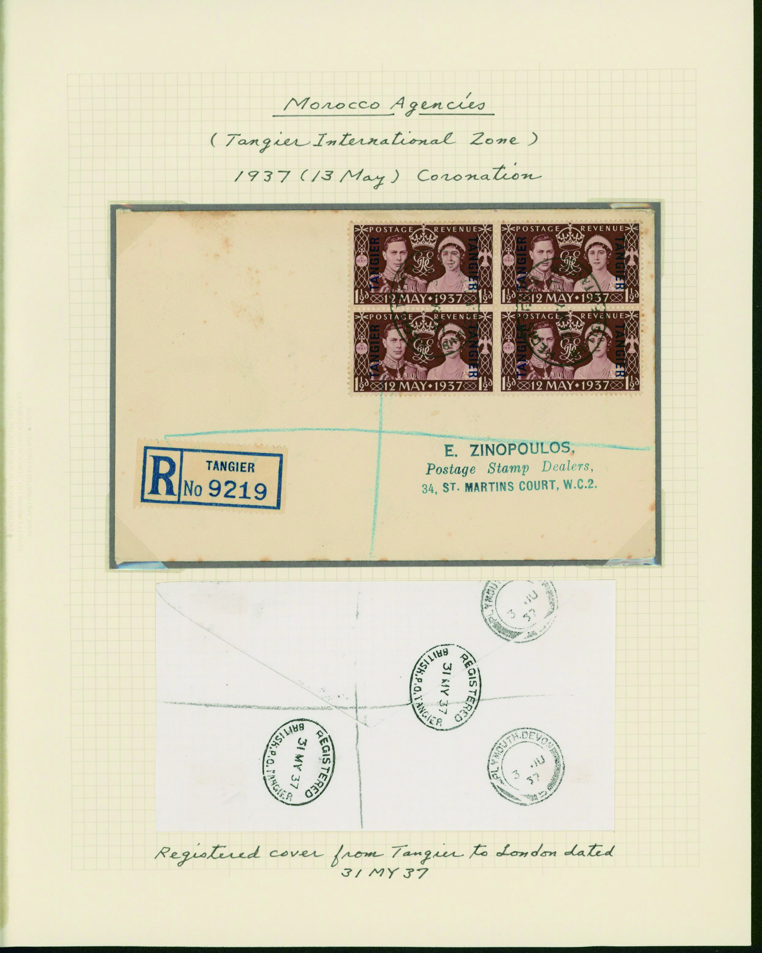 1141   imageUK British post offices in Morocco, Tangier International zone 1936-1937 10 pages, 8 covers YouTube (Image1) (Image2) (Image3) (Image4) (Image5) (Image6) (Image7) (All Images)