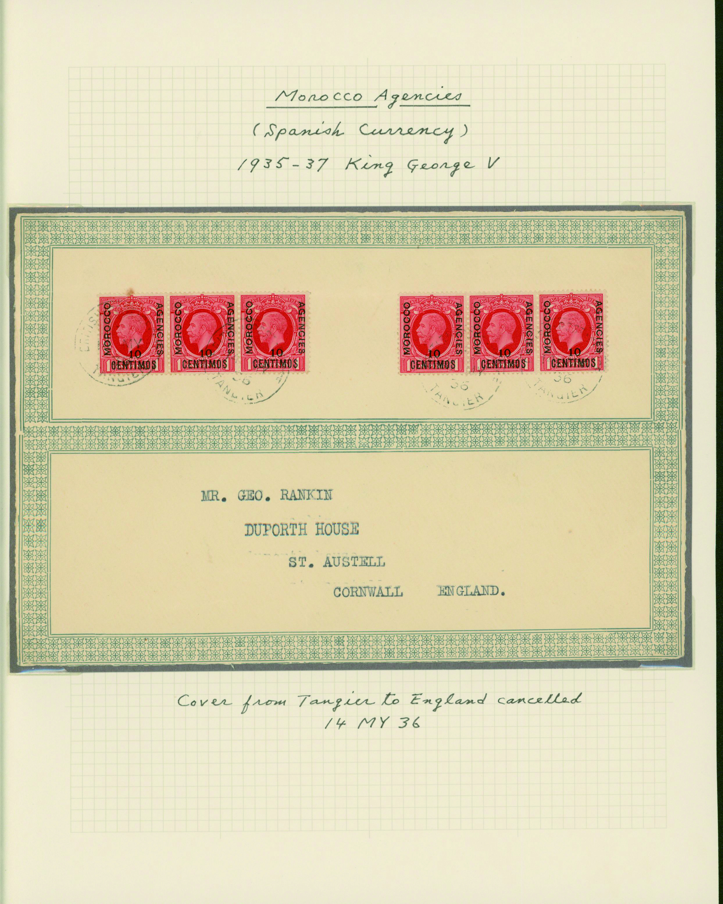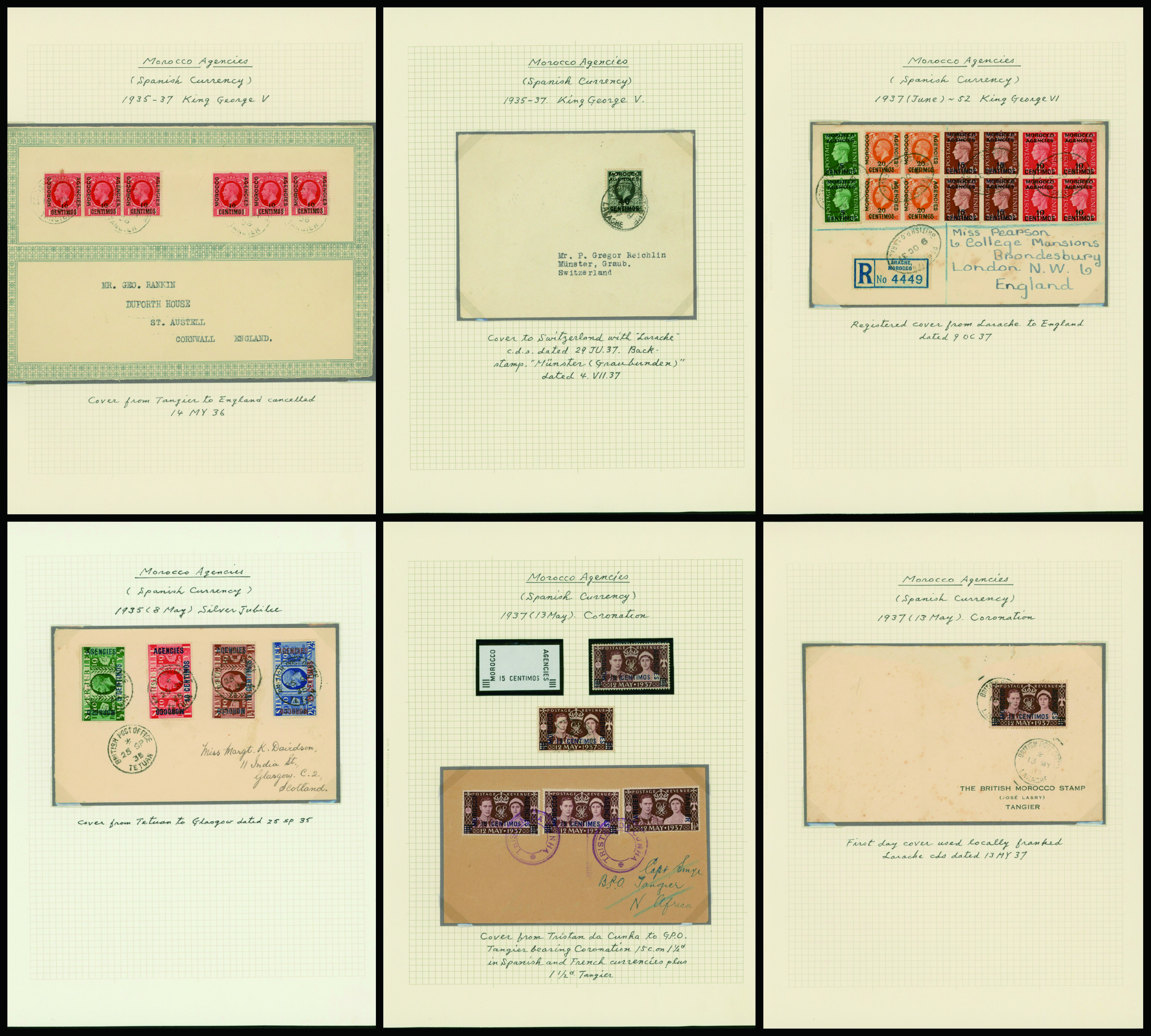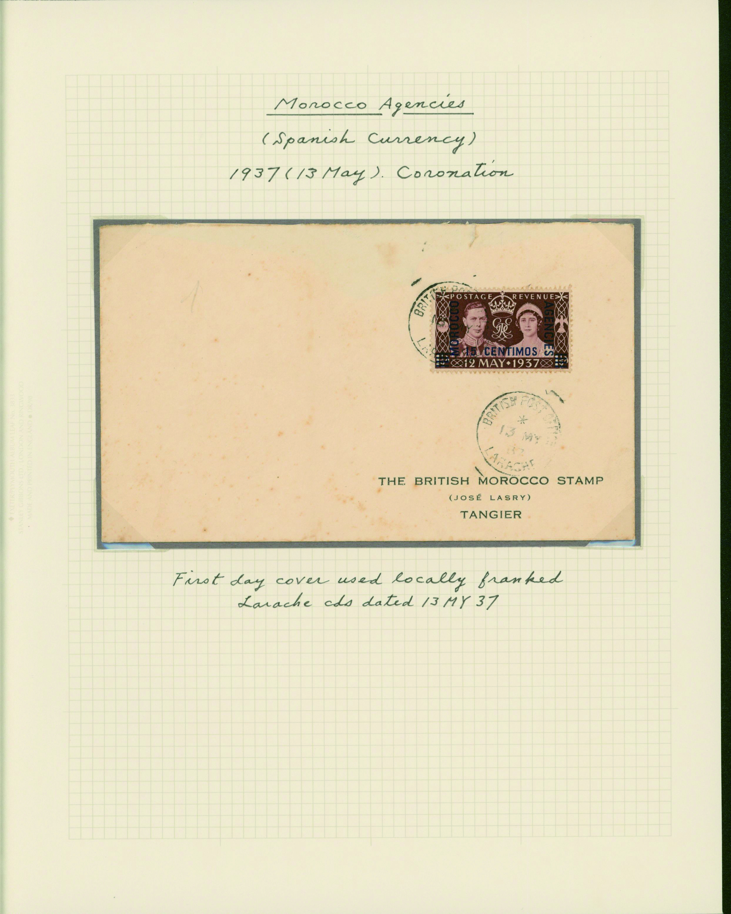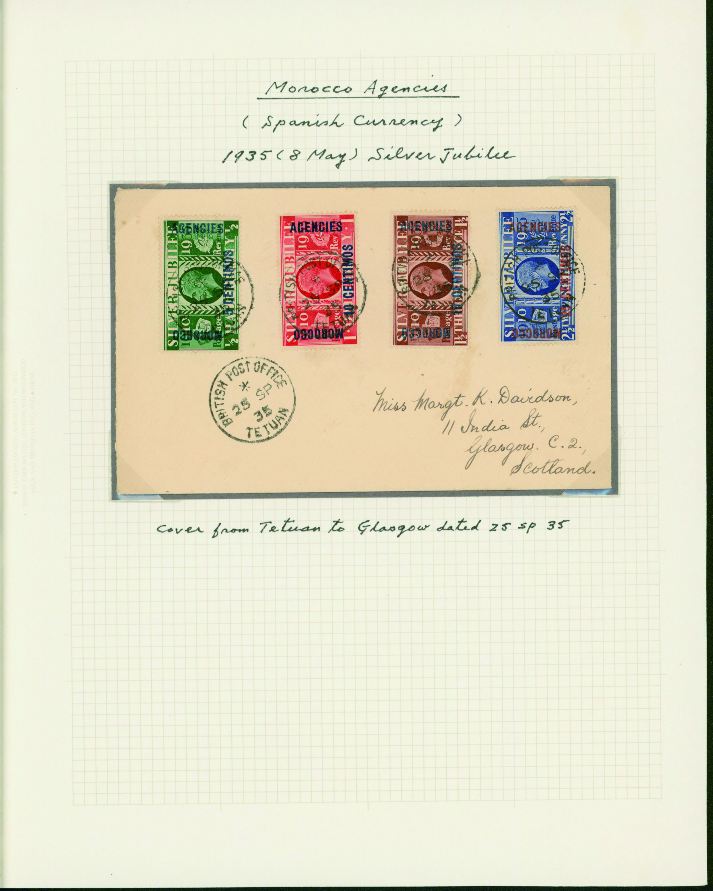1128   imageUK British Post offices in Morocco, Spanish currency 1935-1937 7 pages, 6 covers YouTube (Image1) (Image2) (Image3) (Image4) (Image5) (Image6) (Image7) (All Images)