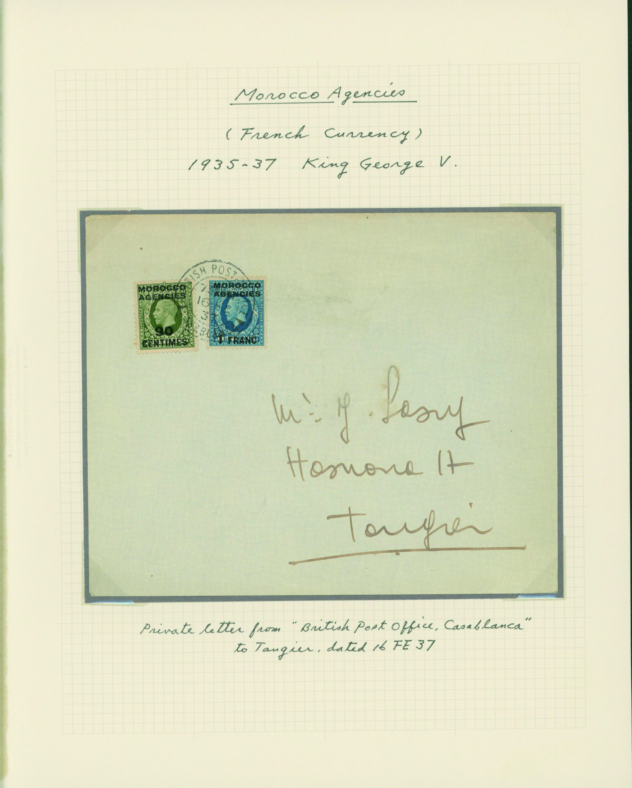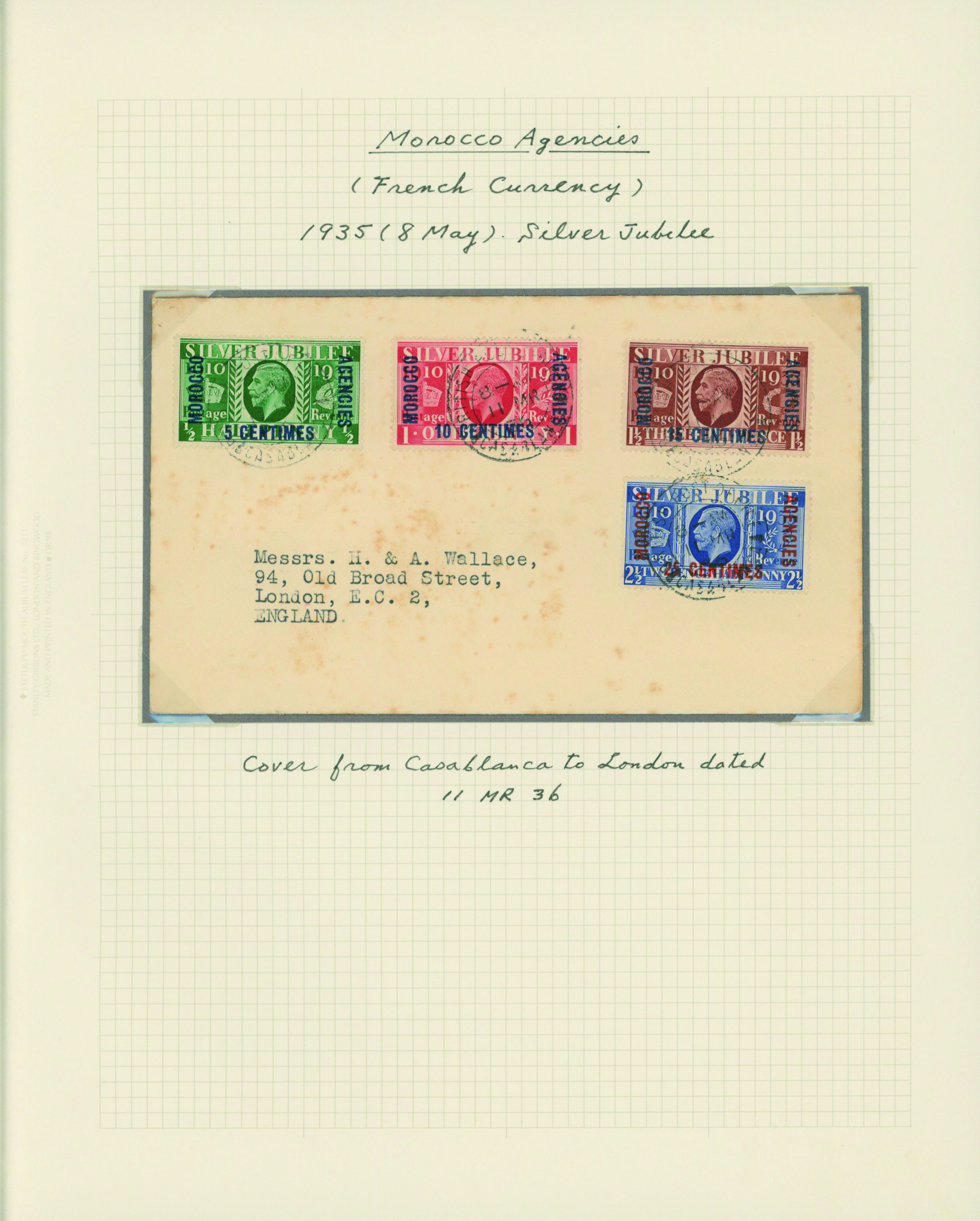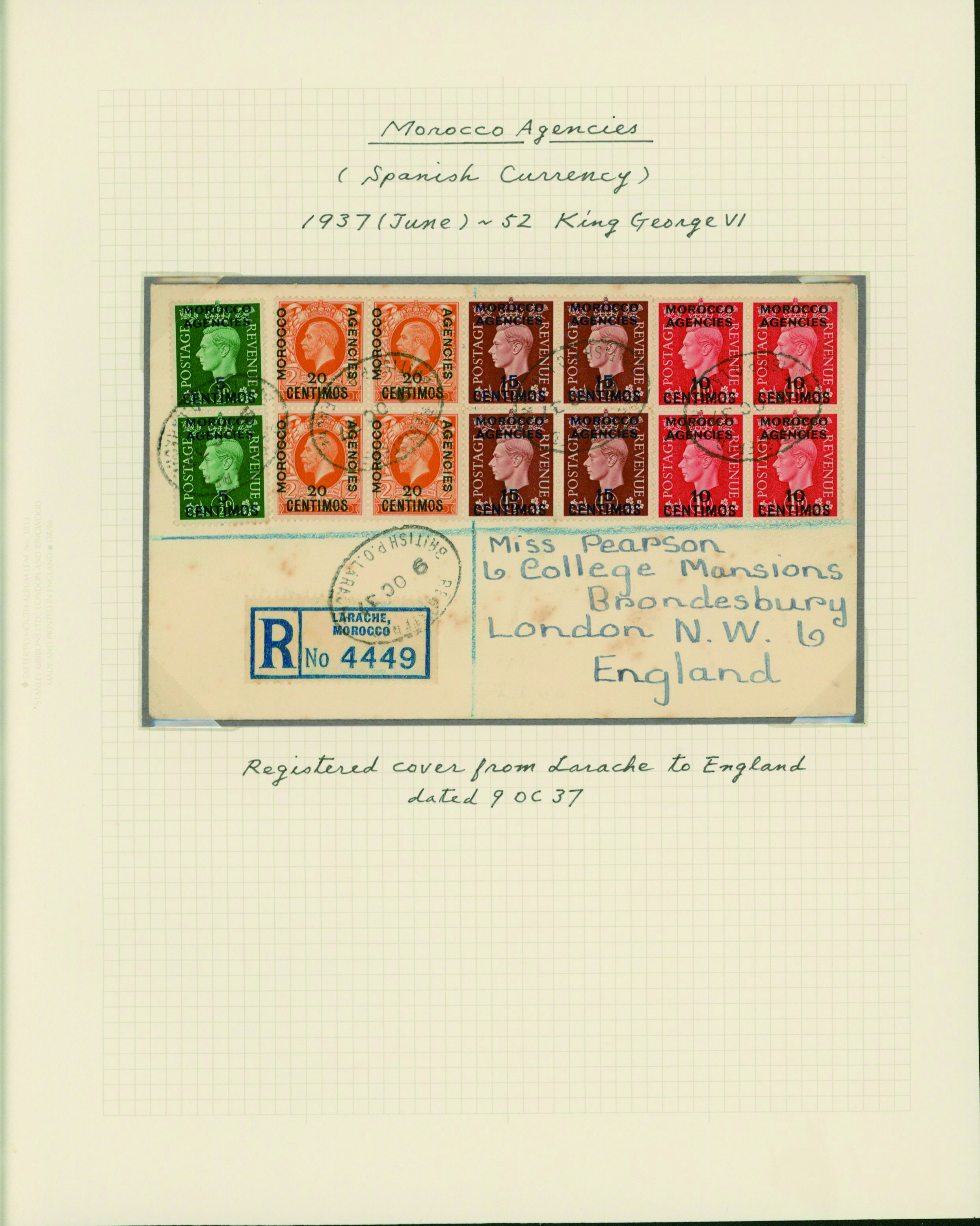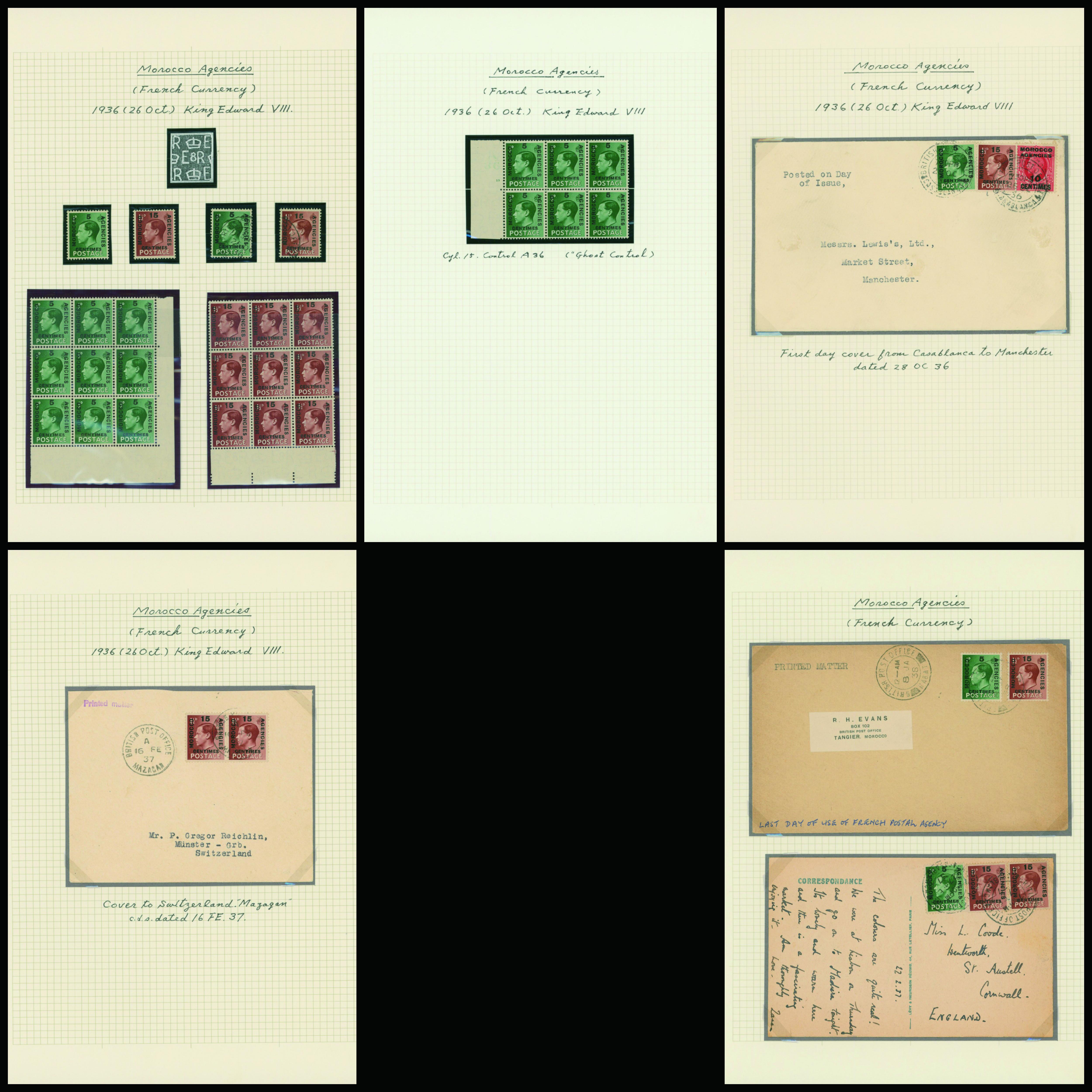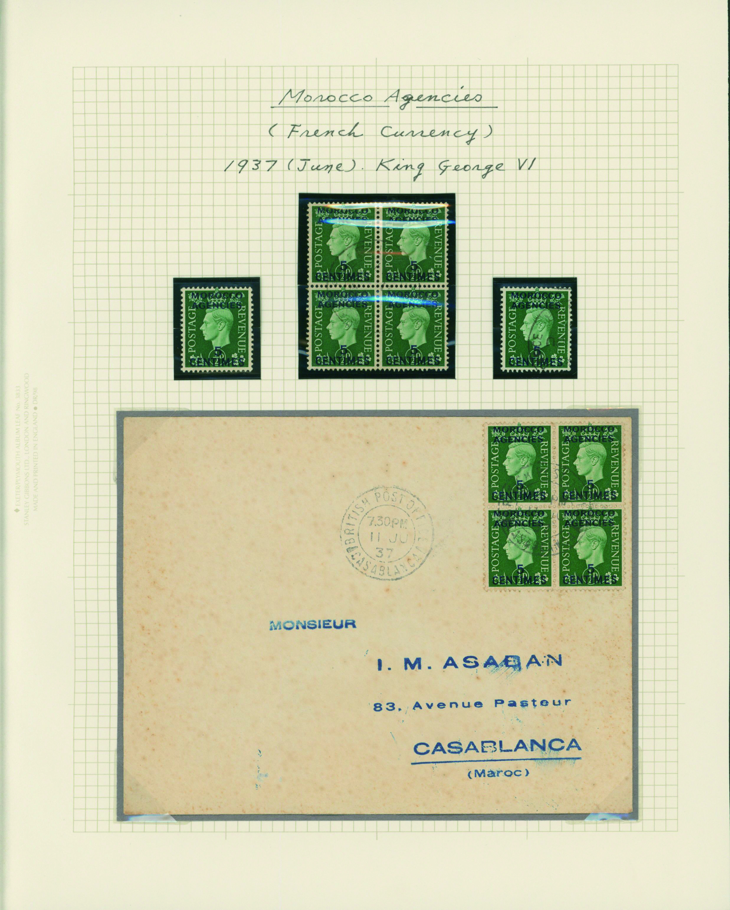 1128   imageUK British Post offices in Morocco, Spanish currency 1935-1937 7 pages, 6 covers YouTube (Image1) (Image2) (Image3) (Image4) (Image5) (Image6) (Image7) (All Images)