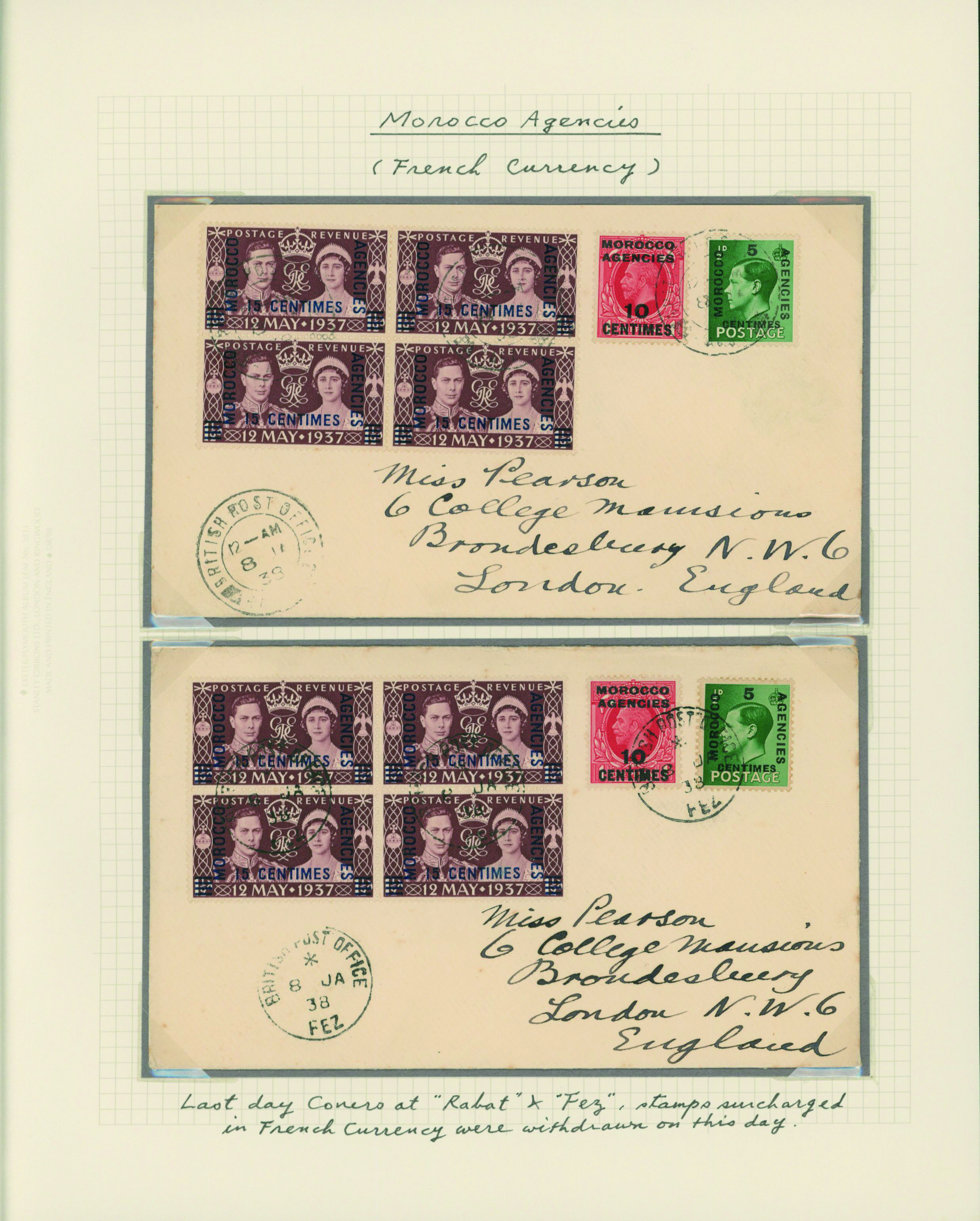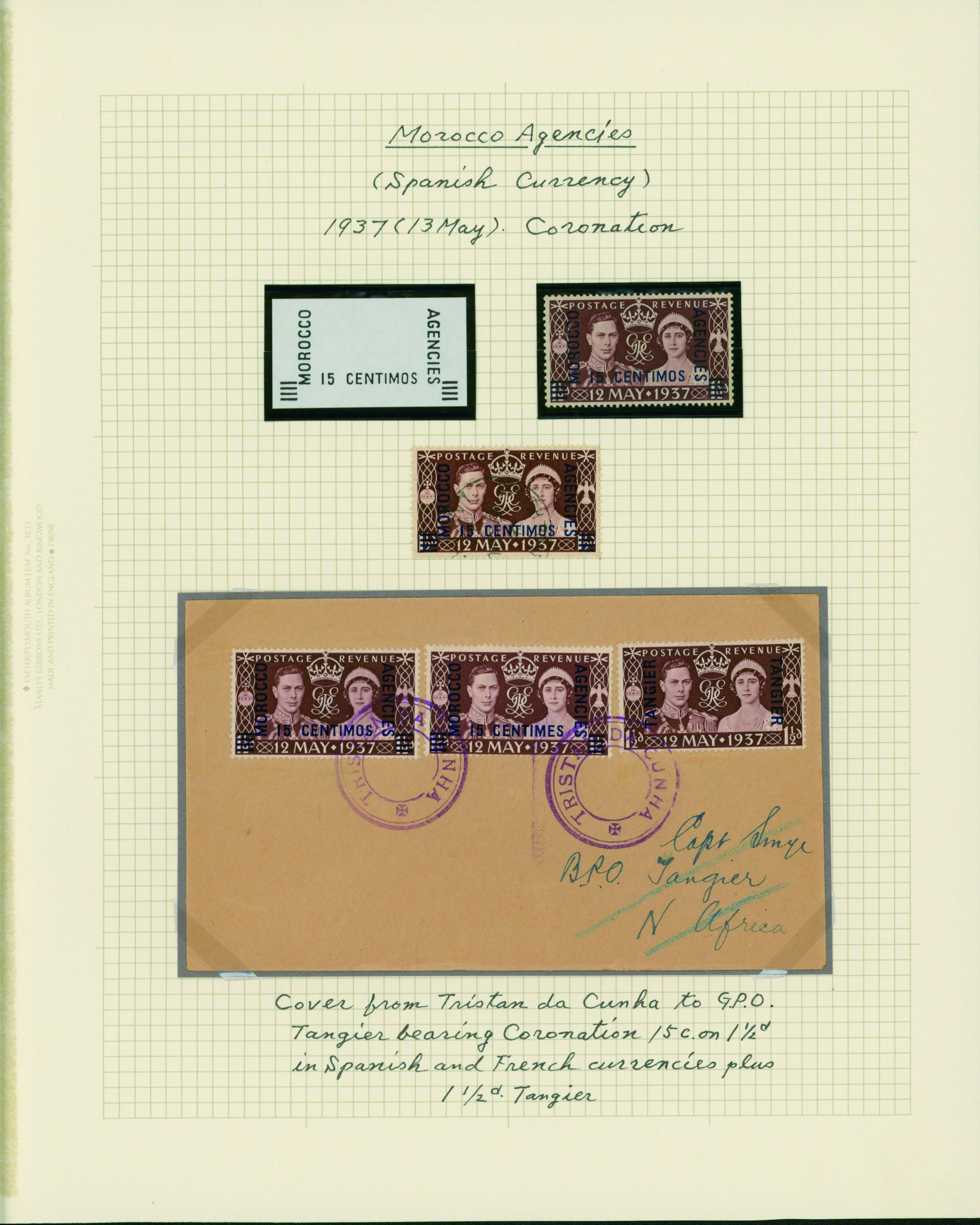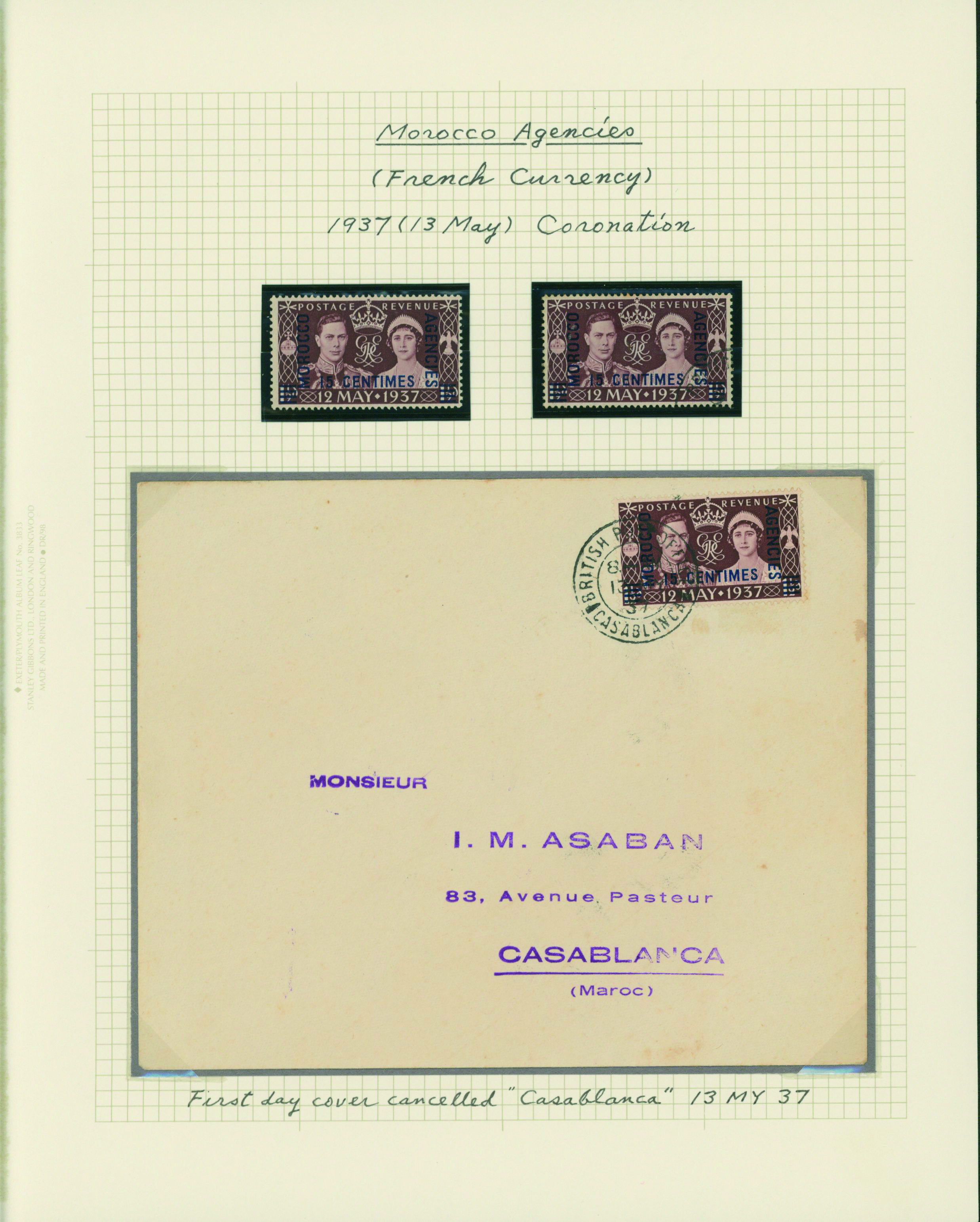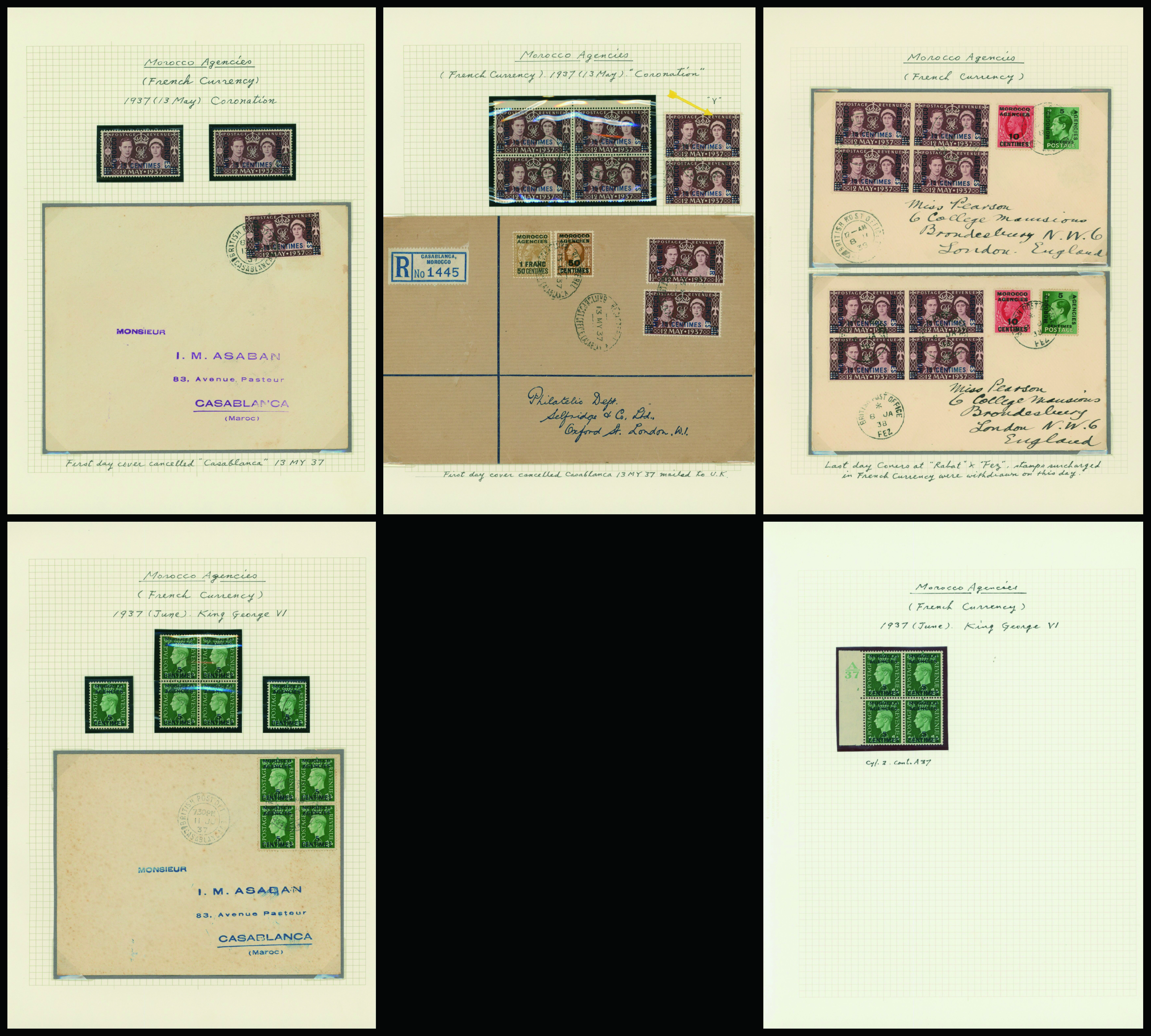 1128   imageUK British Post offices in Morocco, Spanish currency 1935-1937 7 pages, 6 covers YouTube (Image1) (Image2) (Image3) (Image4) (Image5) (Image6) (Image7) (All Images)