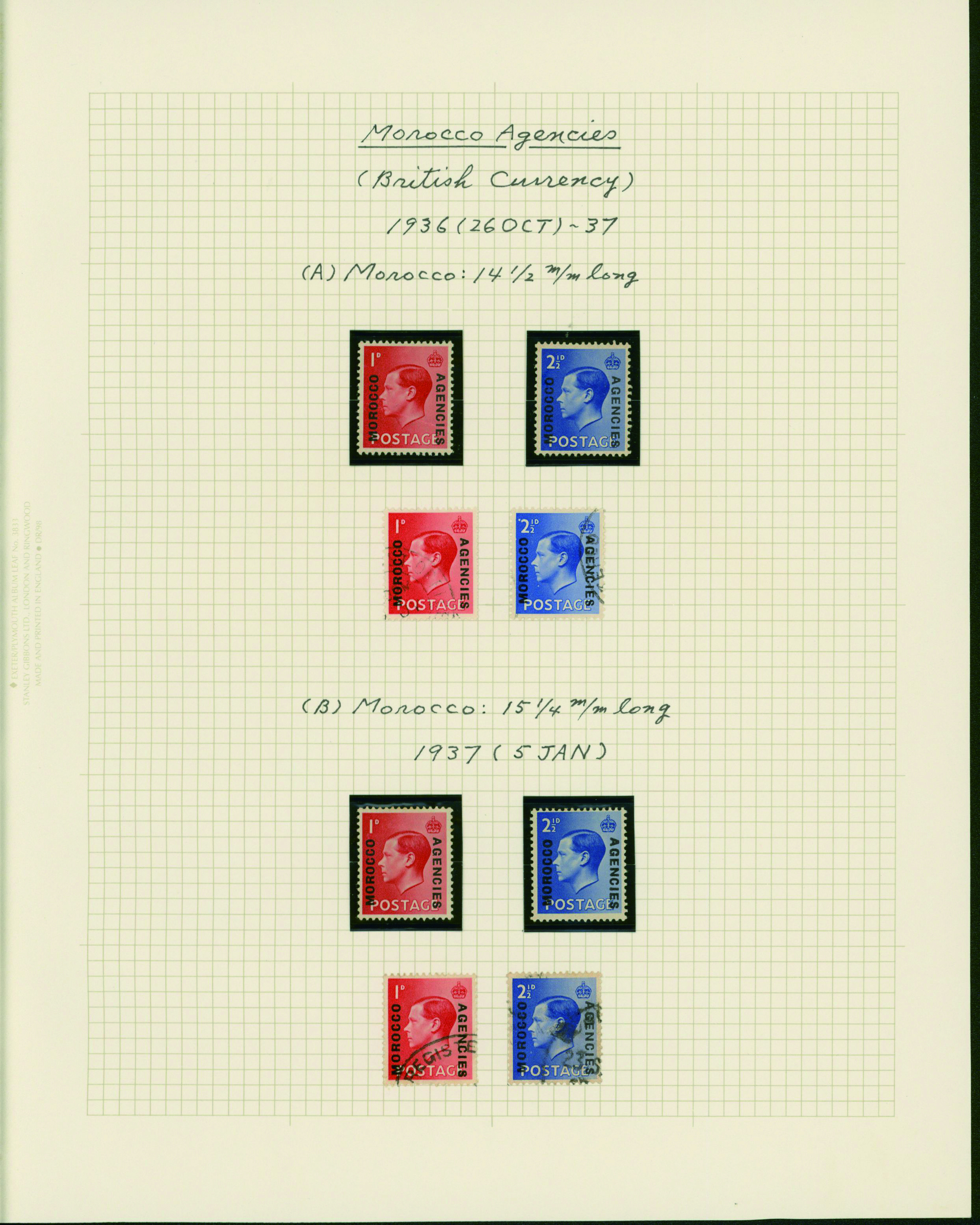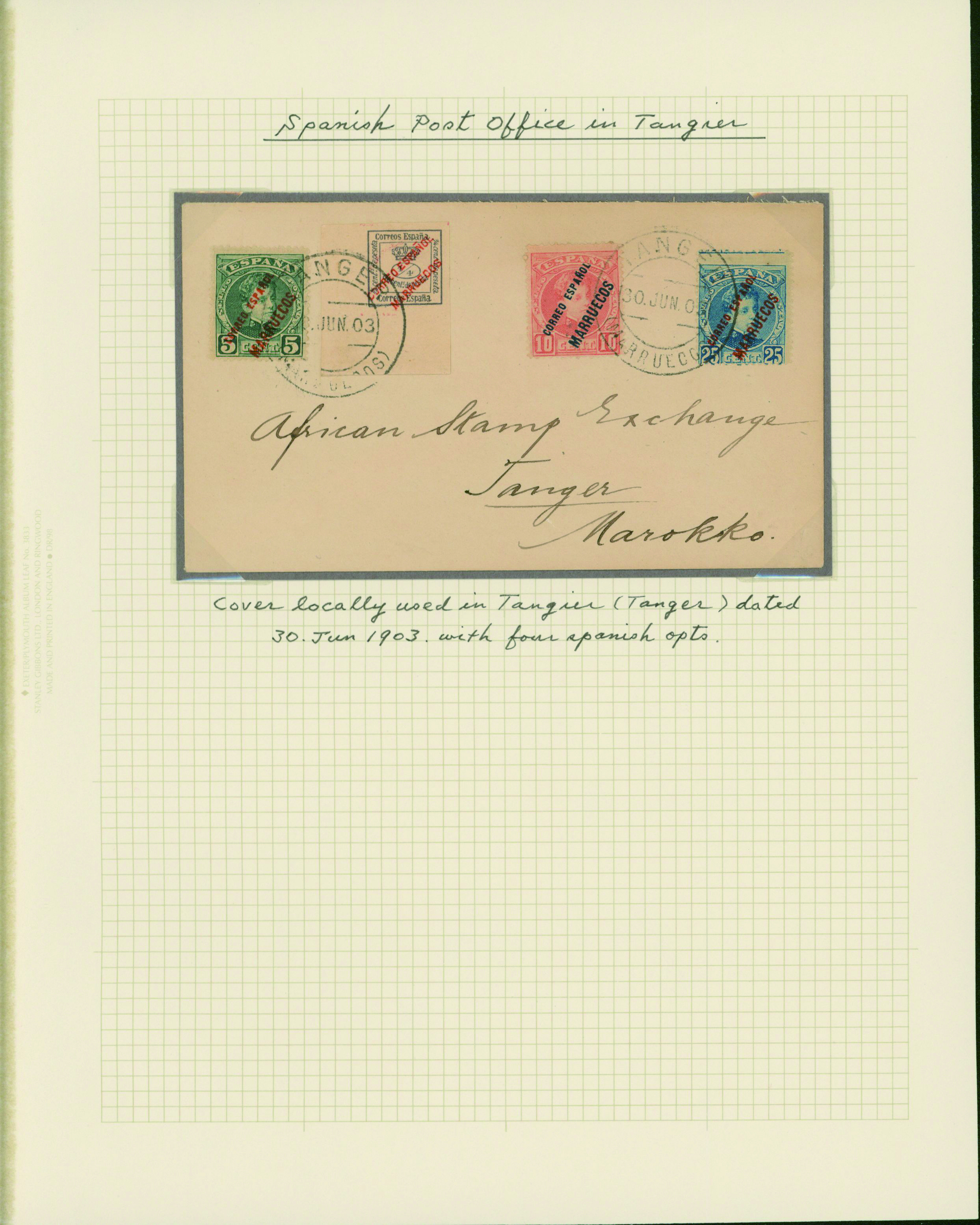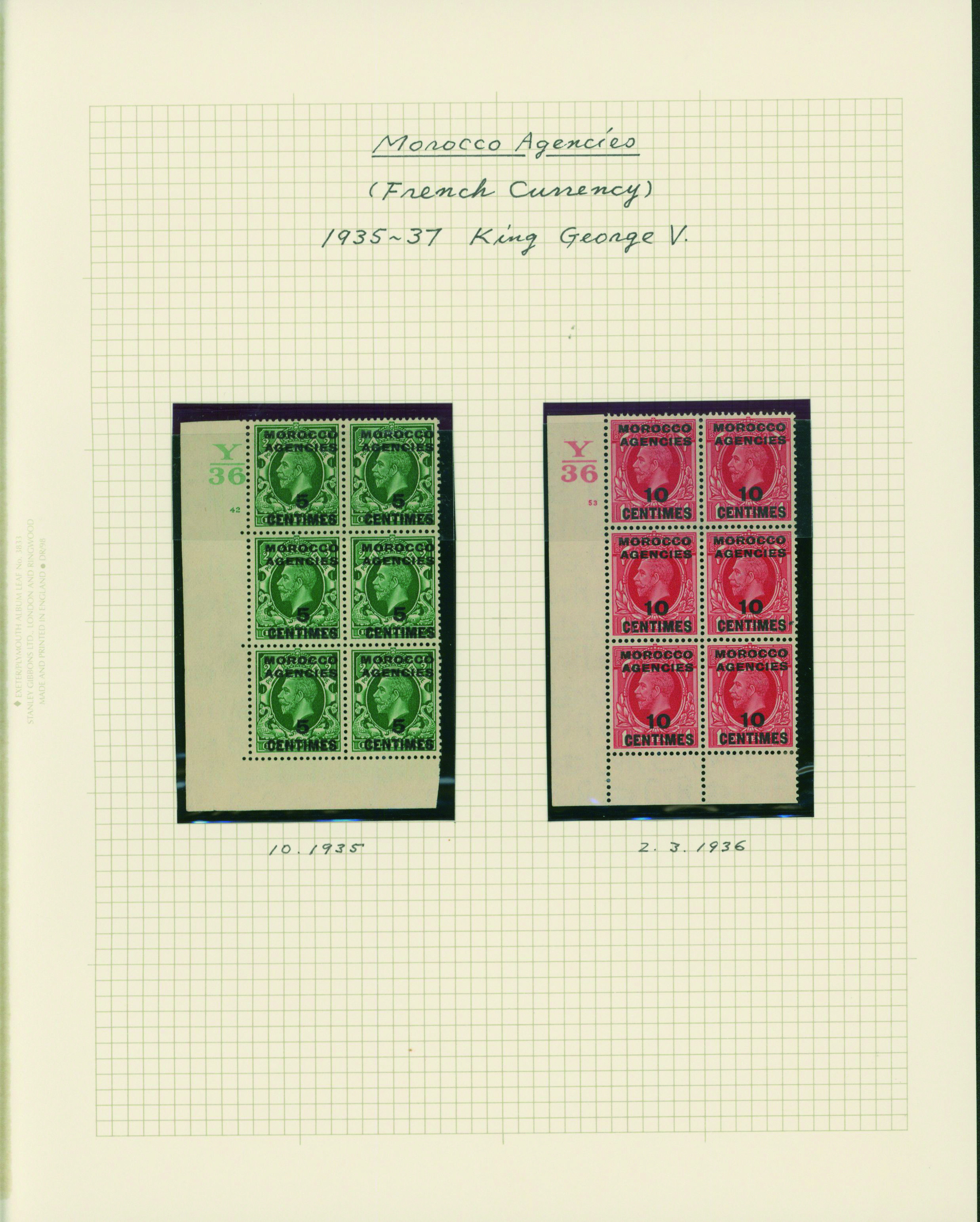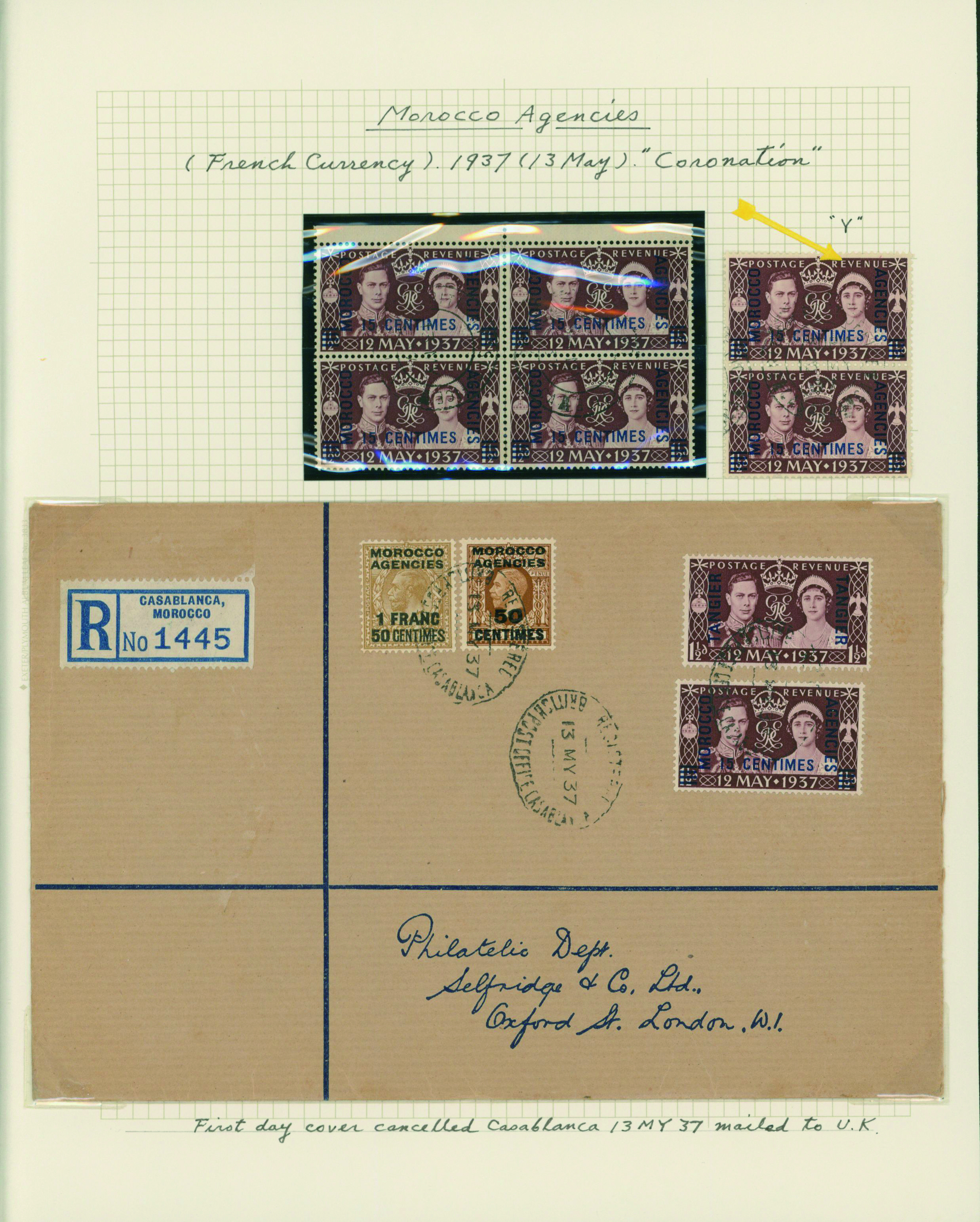 1128   imageUK British Post offices in Morocco, Spanish currency 1935-1937 7 pages, 6 covers YouTube (Image1) (Image2) (Image3) (Image4) (Image5) (Image6) (Image7) (All Images)