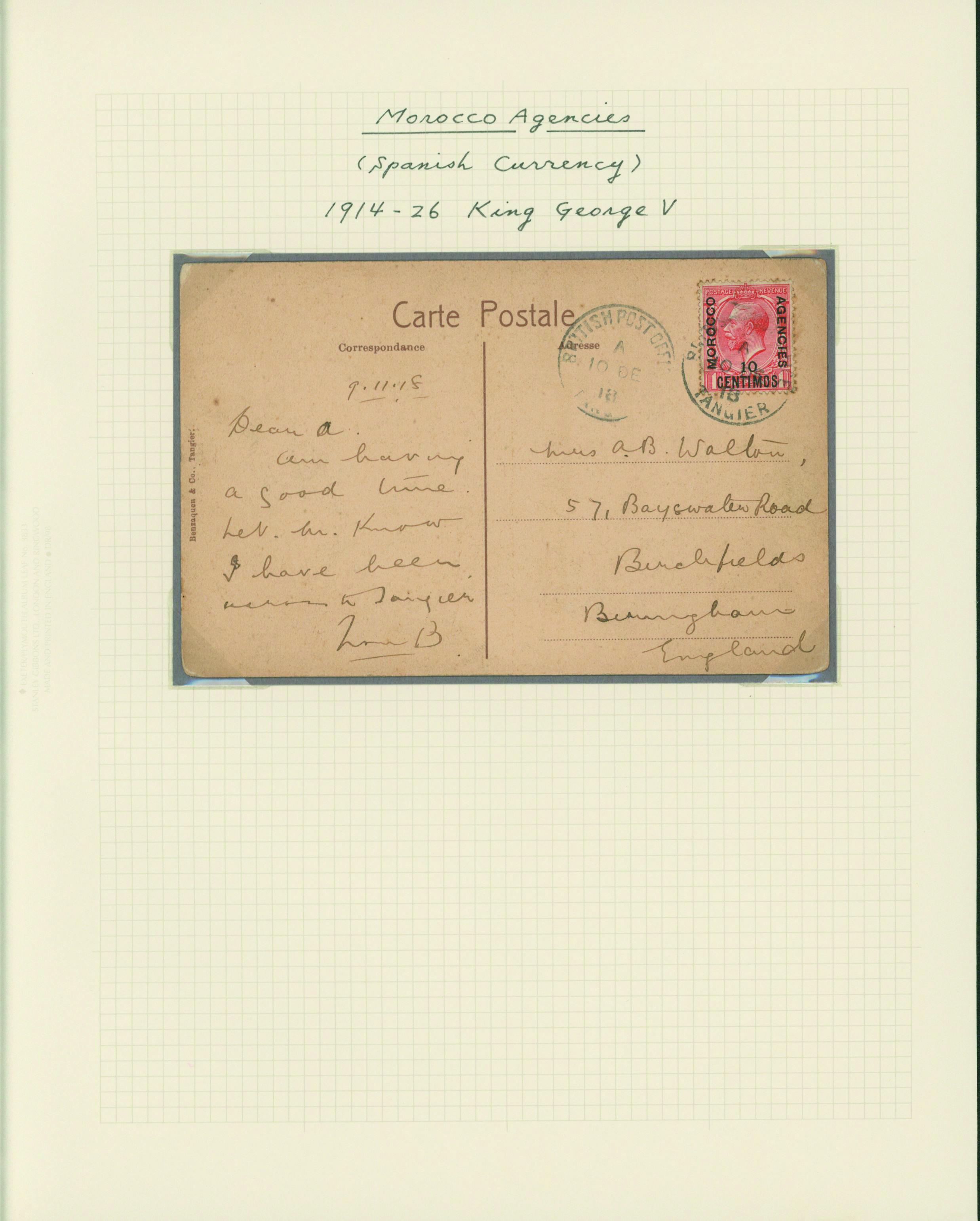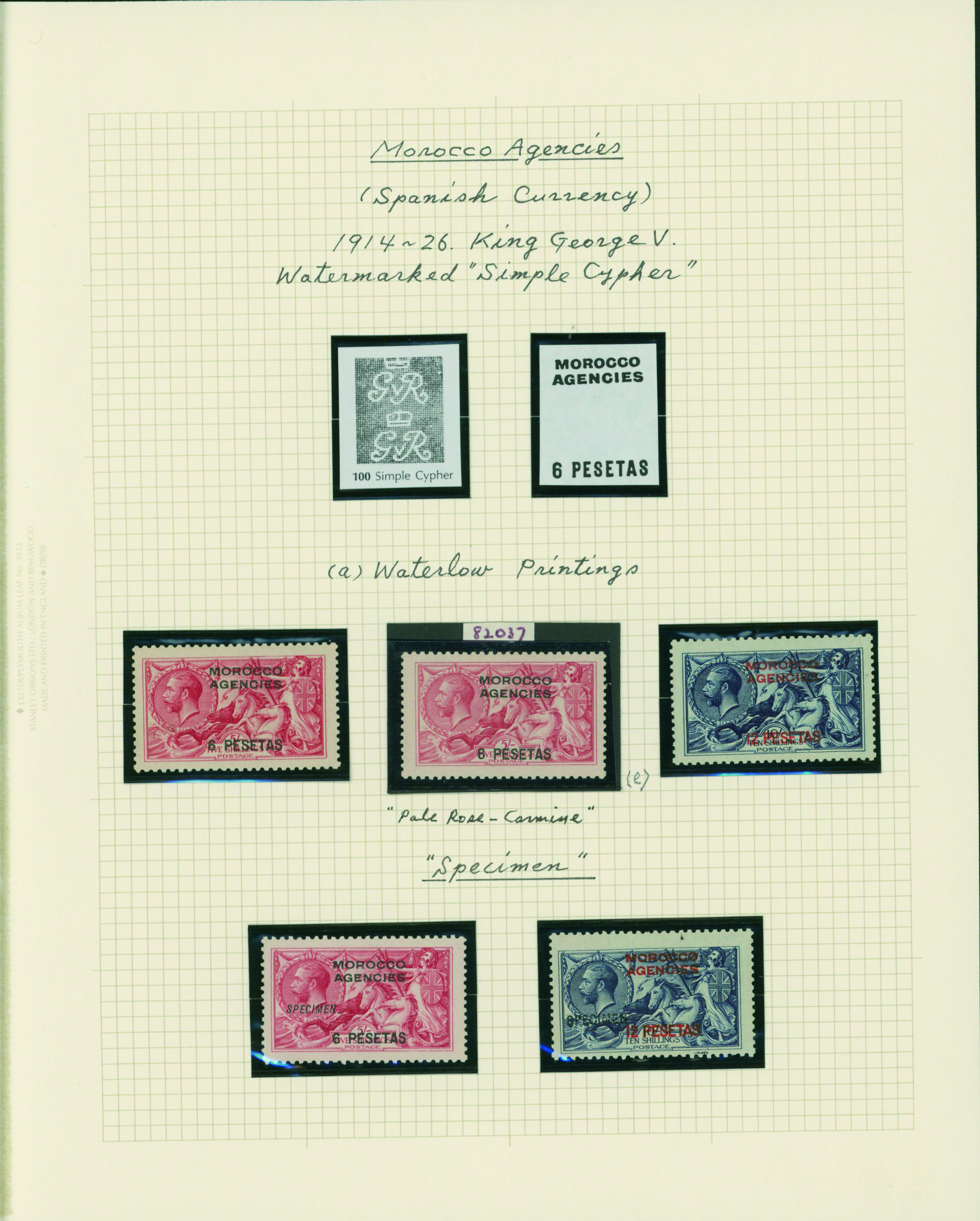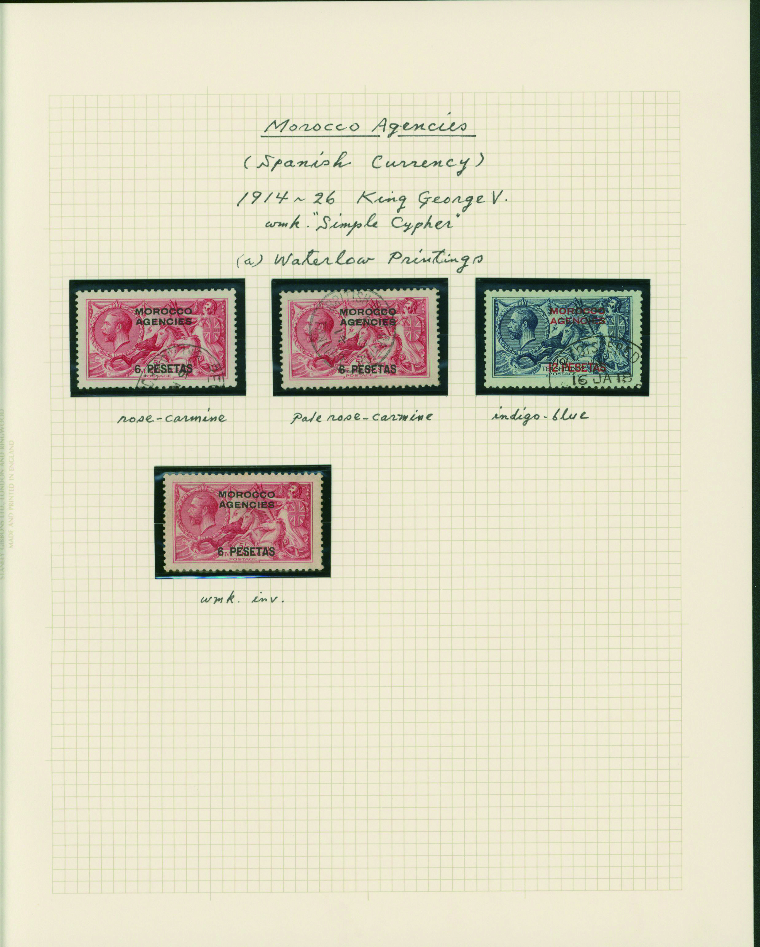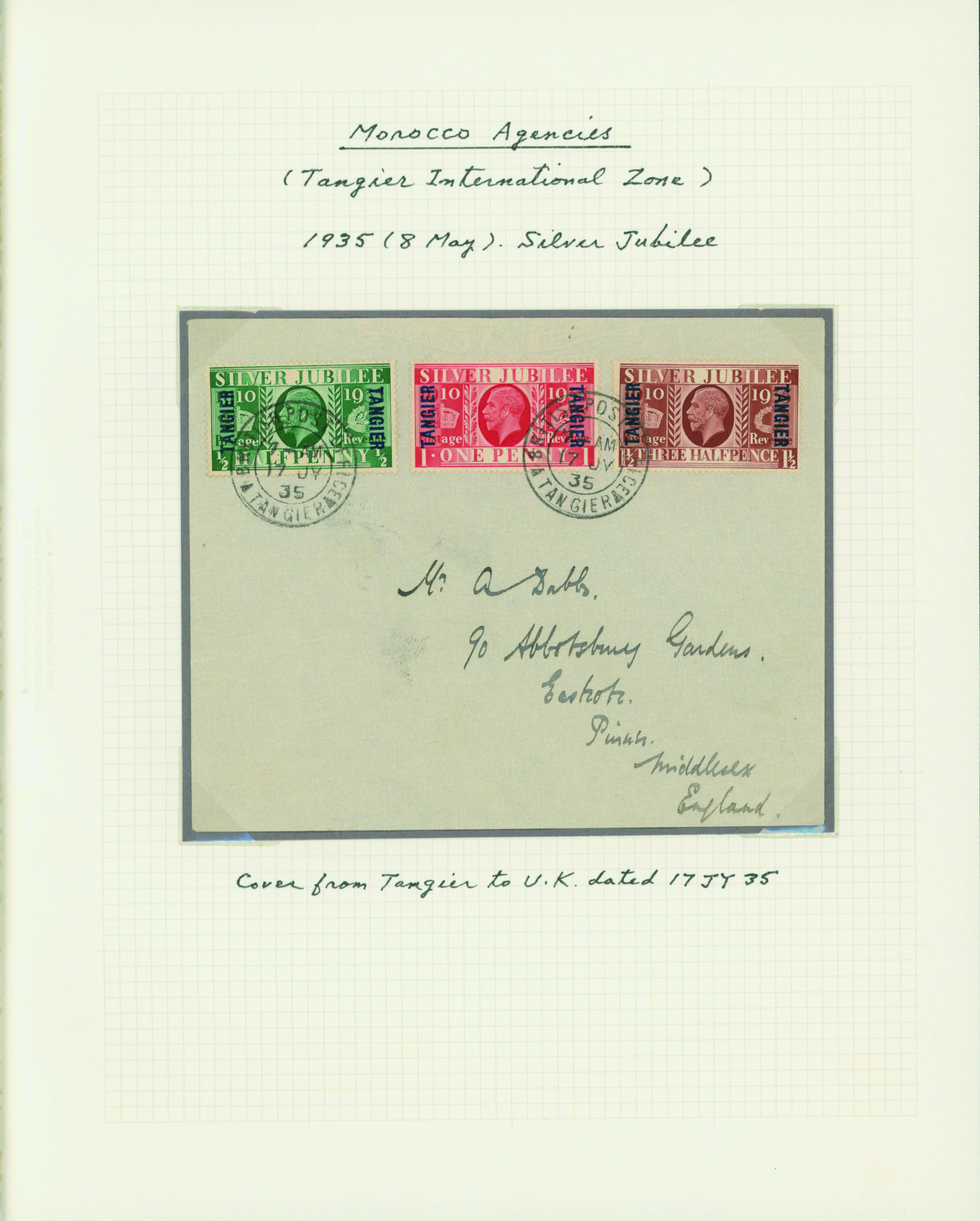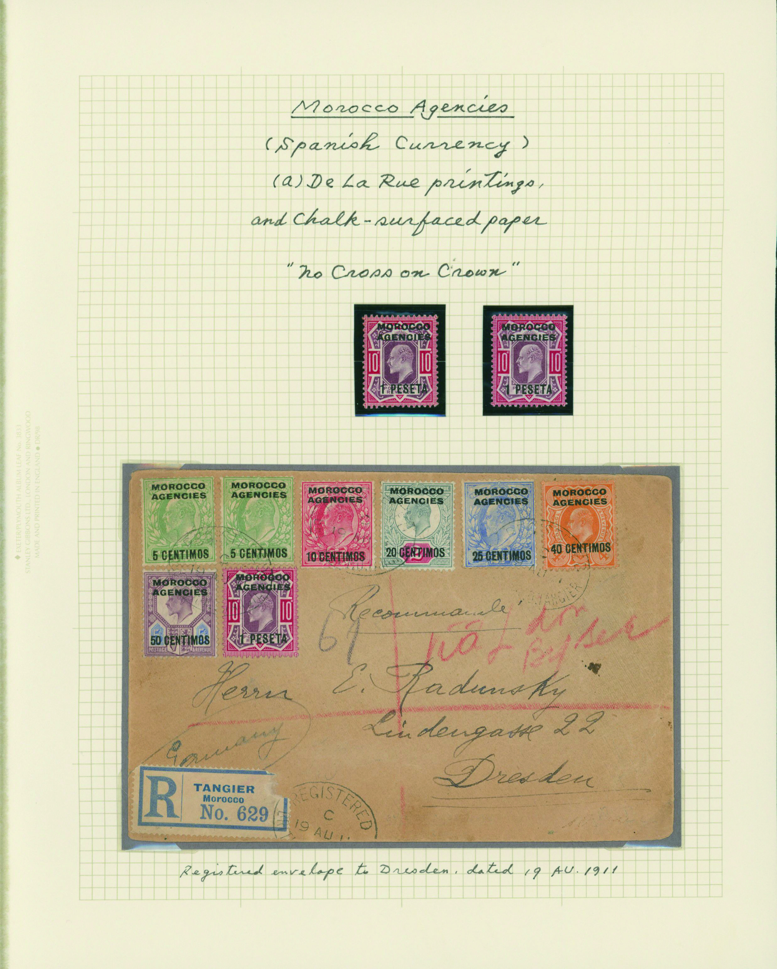 1128   imageUK British Post offices in Morocco, Spanish currency 1935-1937 7 pages, 6 covers YouTube (Image1) (Image2) (Image3) (Image4) (Image5) (Image6) (Image7) (All Images)