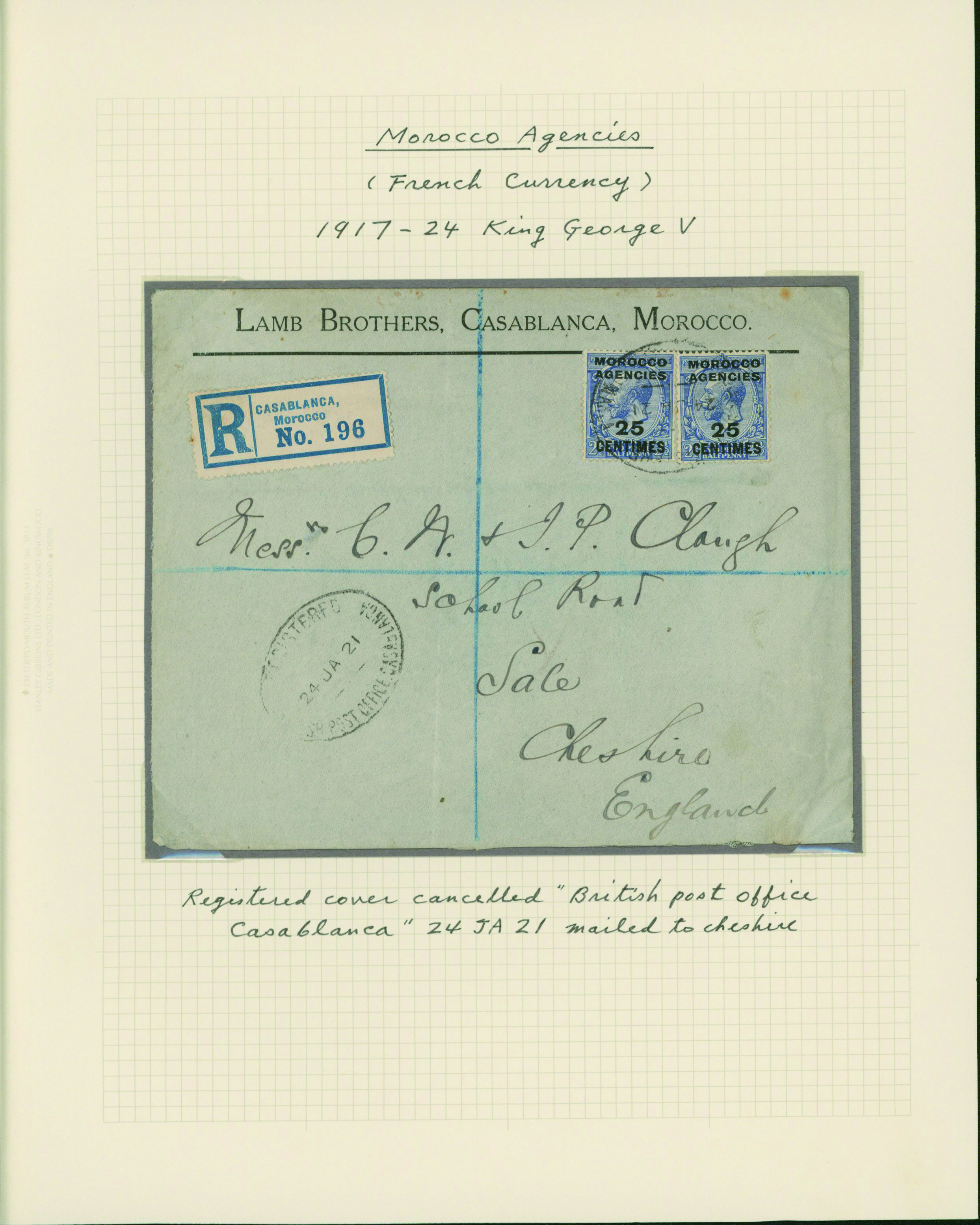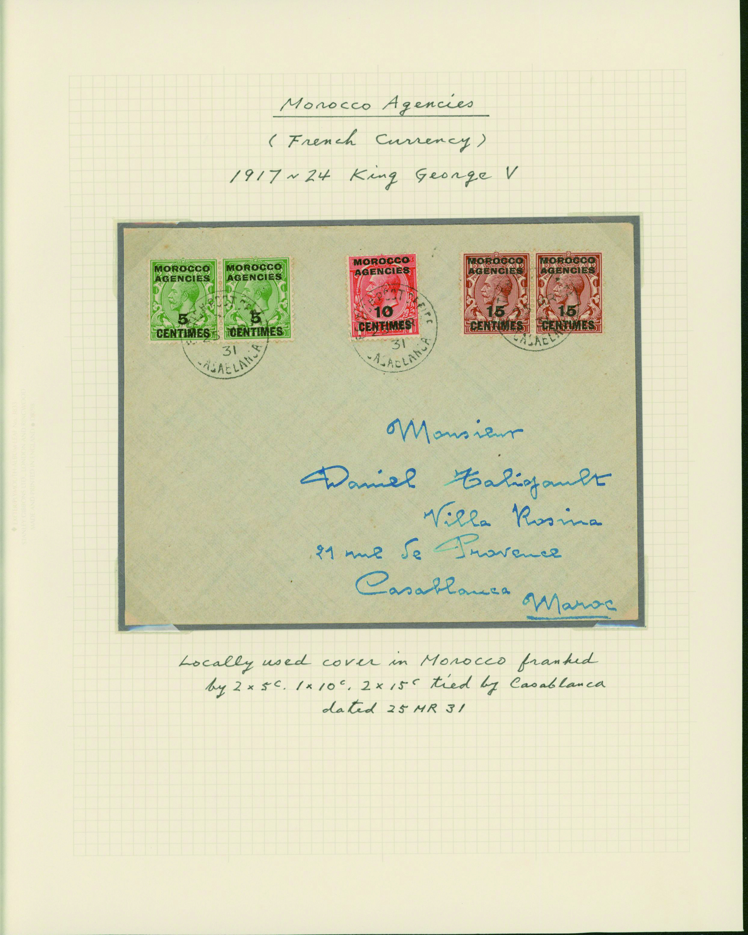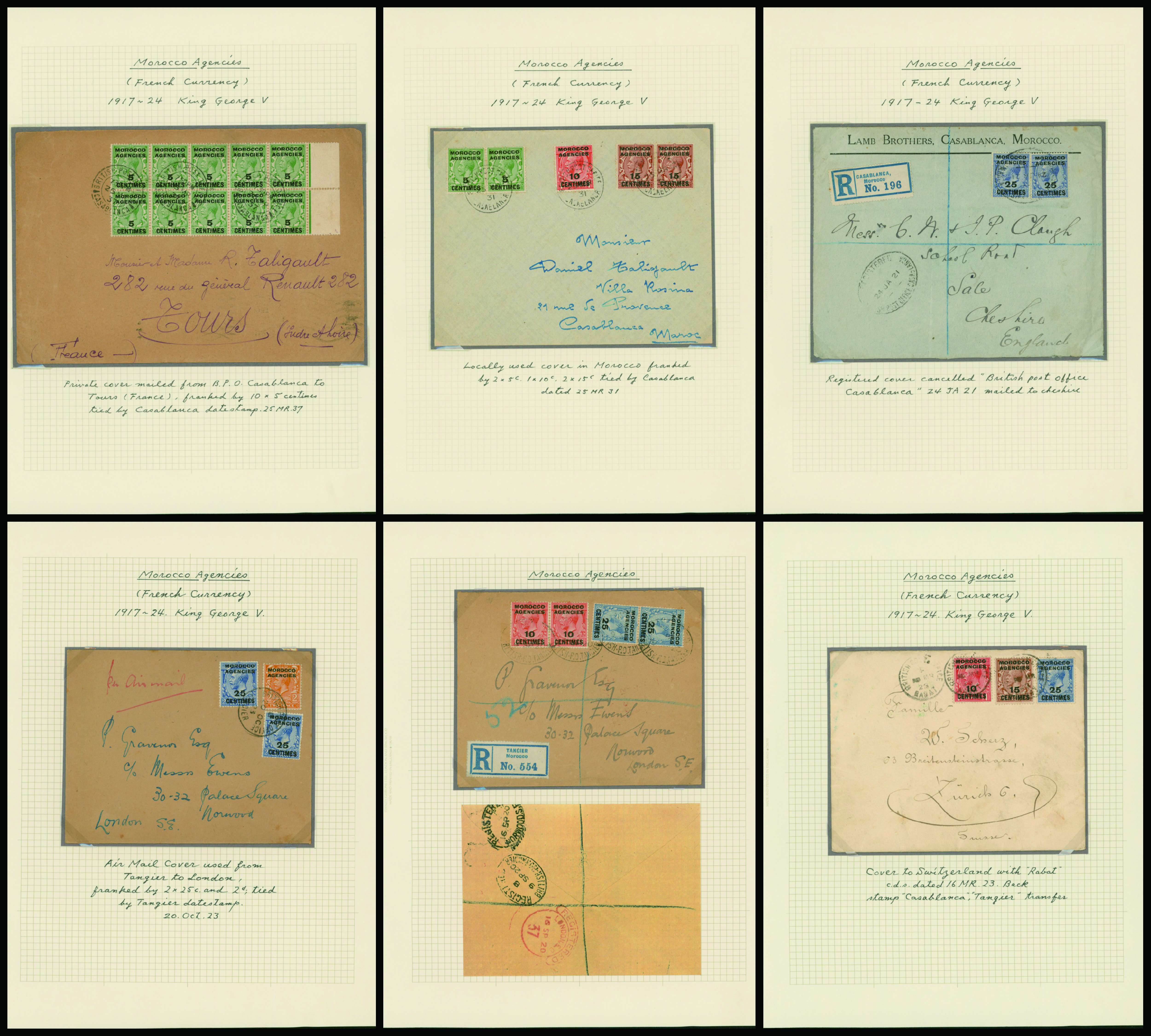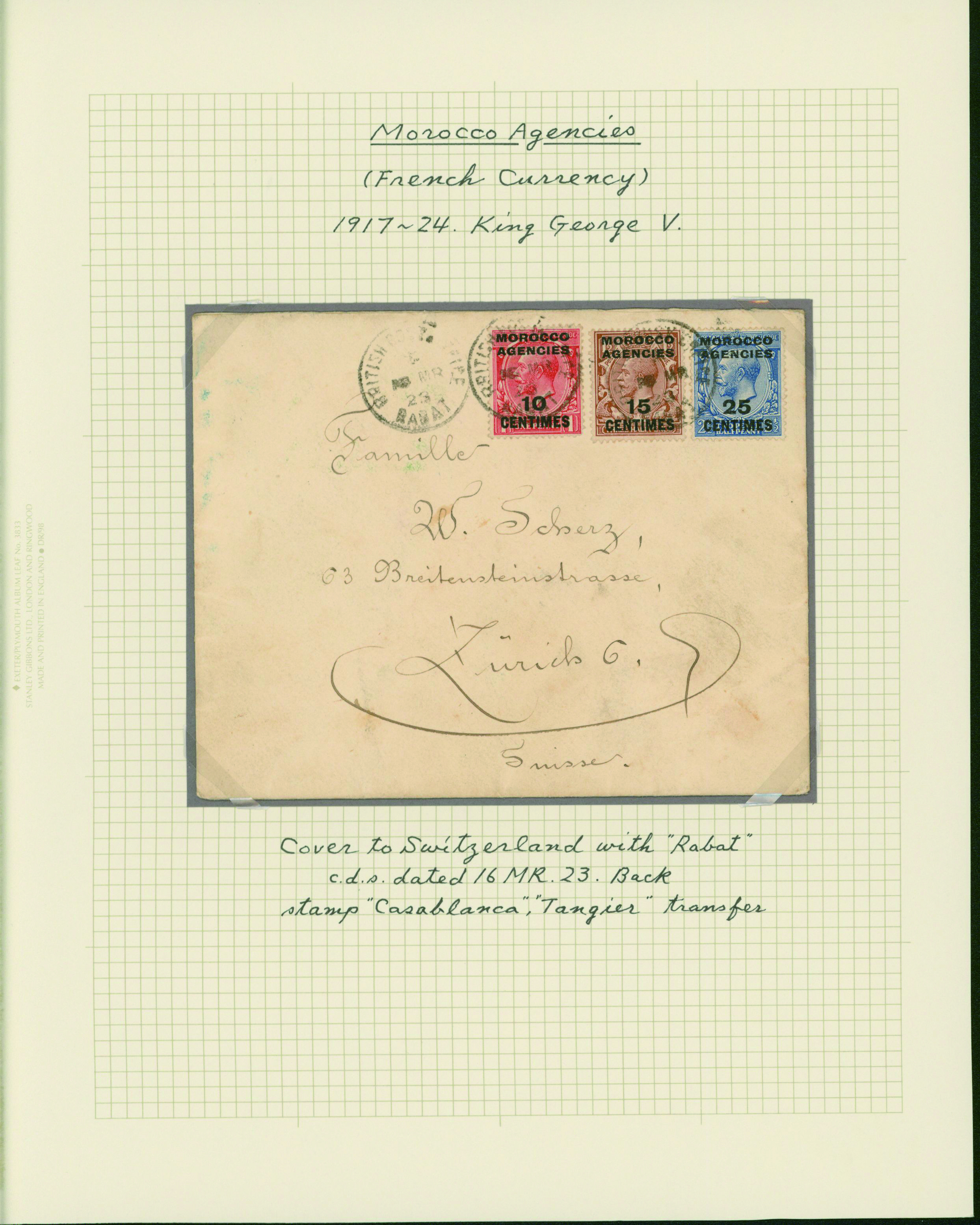 1134   imageUK British post offices in Morocco, French currency, KGV 1917-1935 13 pages, 16 covers YouTube (Image1) (Image2) (Image3) (Image4) (Image5) (Image6) (Image7) (All Images)
