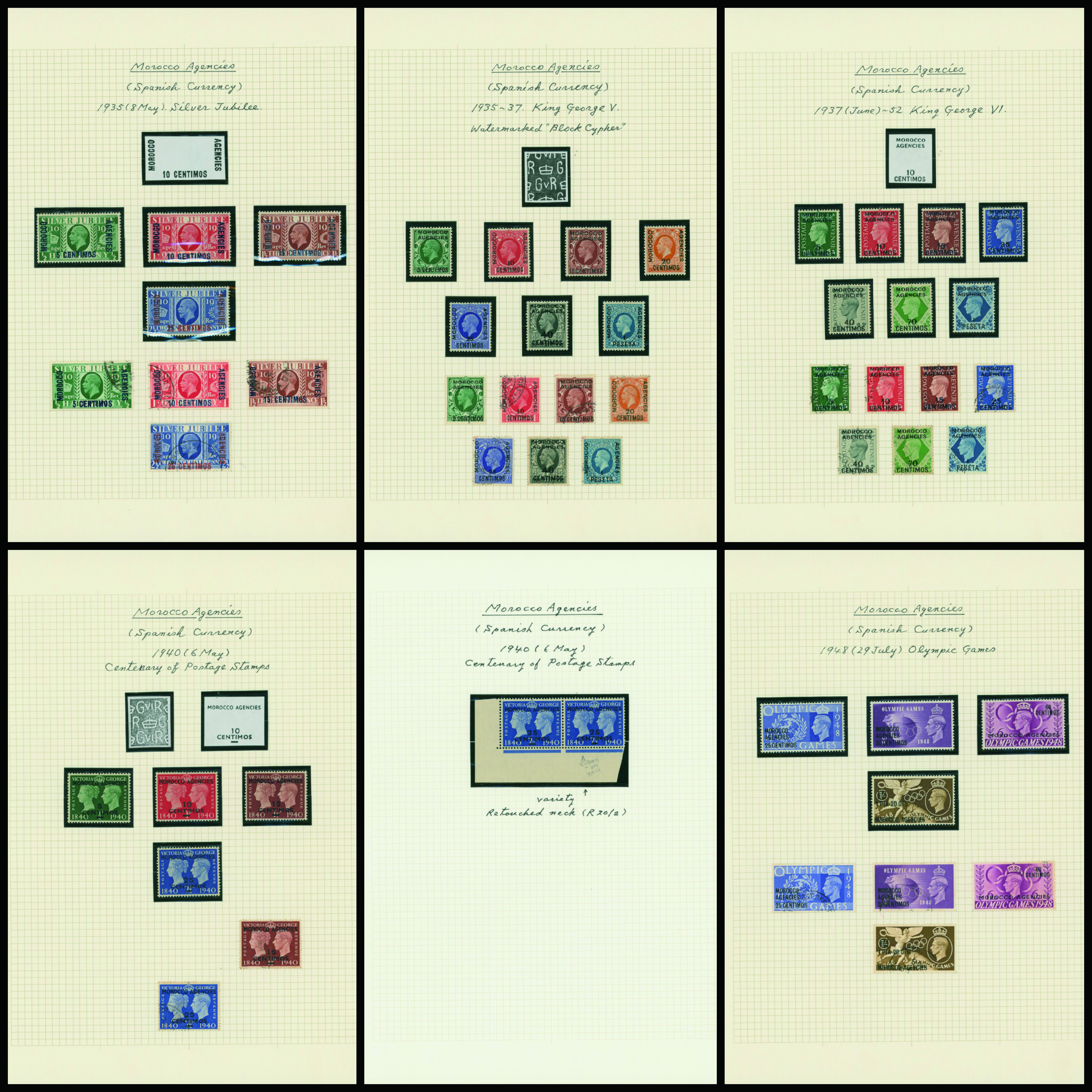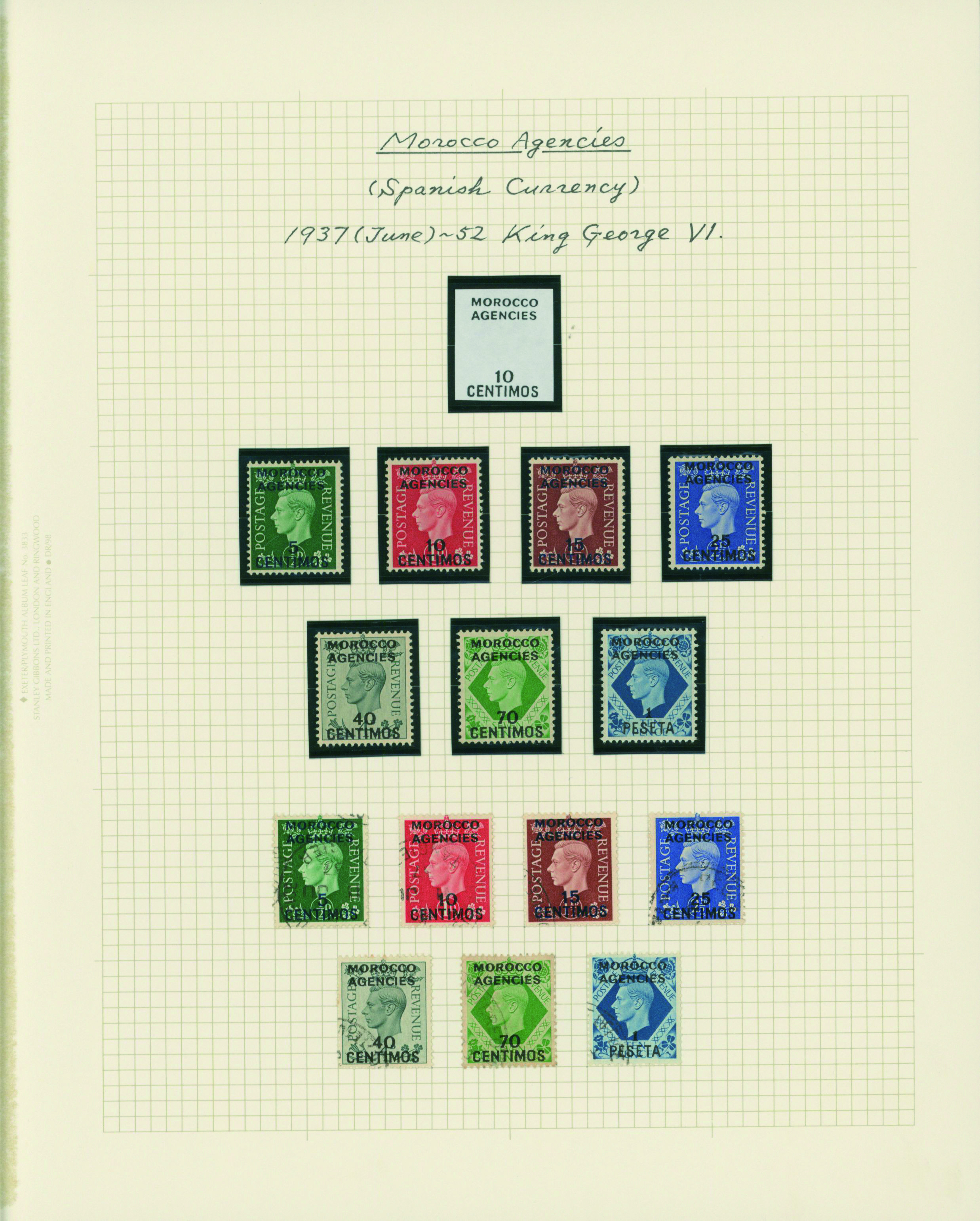 1129   imageBritish post offices in Morocco, Spanish currency 1935-1951 8 leaves mixed condition of unused and used,YouTube (Image1) (Image2) (Image3) (Image4) (Image5) (Image6) (Image7) (All Images)