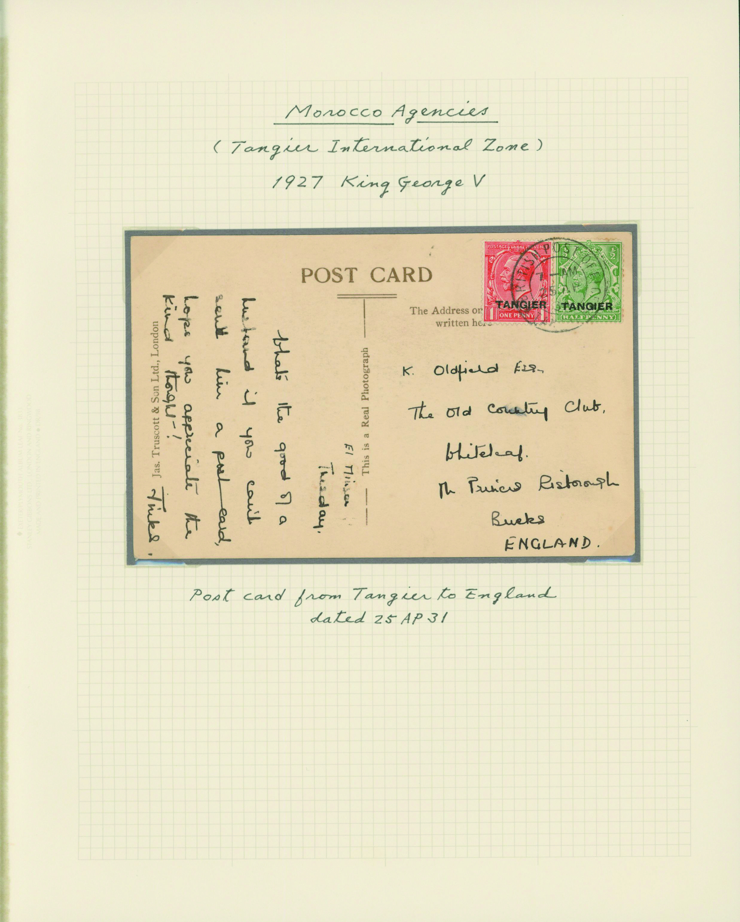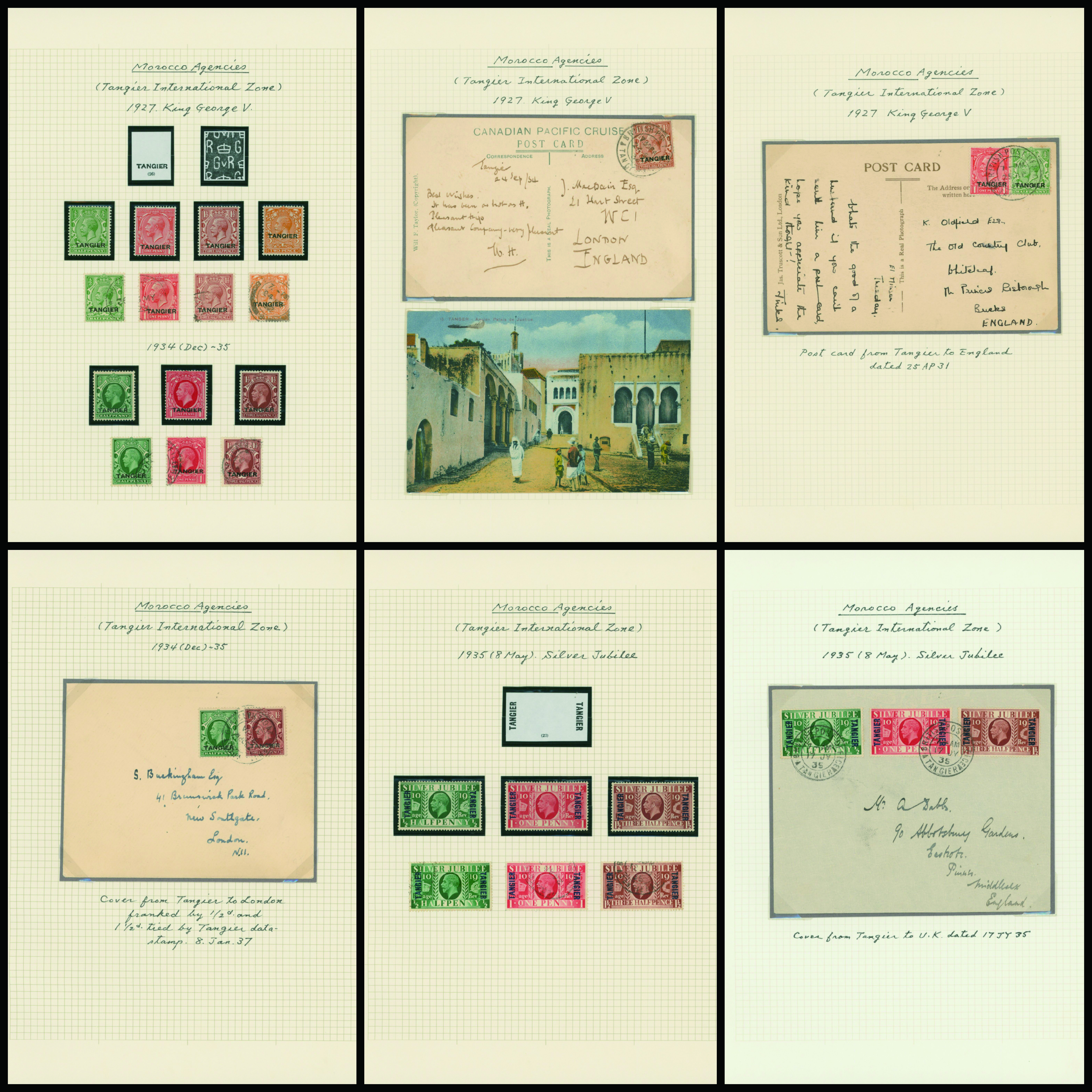 1140   imageUK British post offices in Morocco, Tangier International zone 1927-1935 6 leaves, 4 covers mainly unused with some used, (Image1) (Image2) (Image3) (Image4) (Image5) (Image6) (Image7) (All Images)