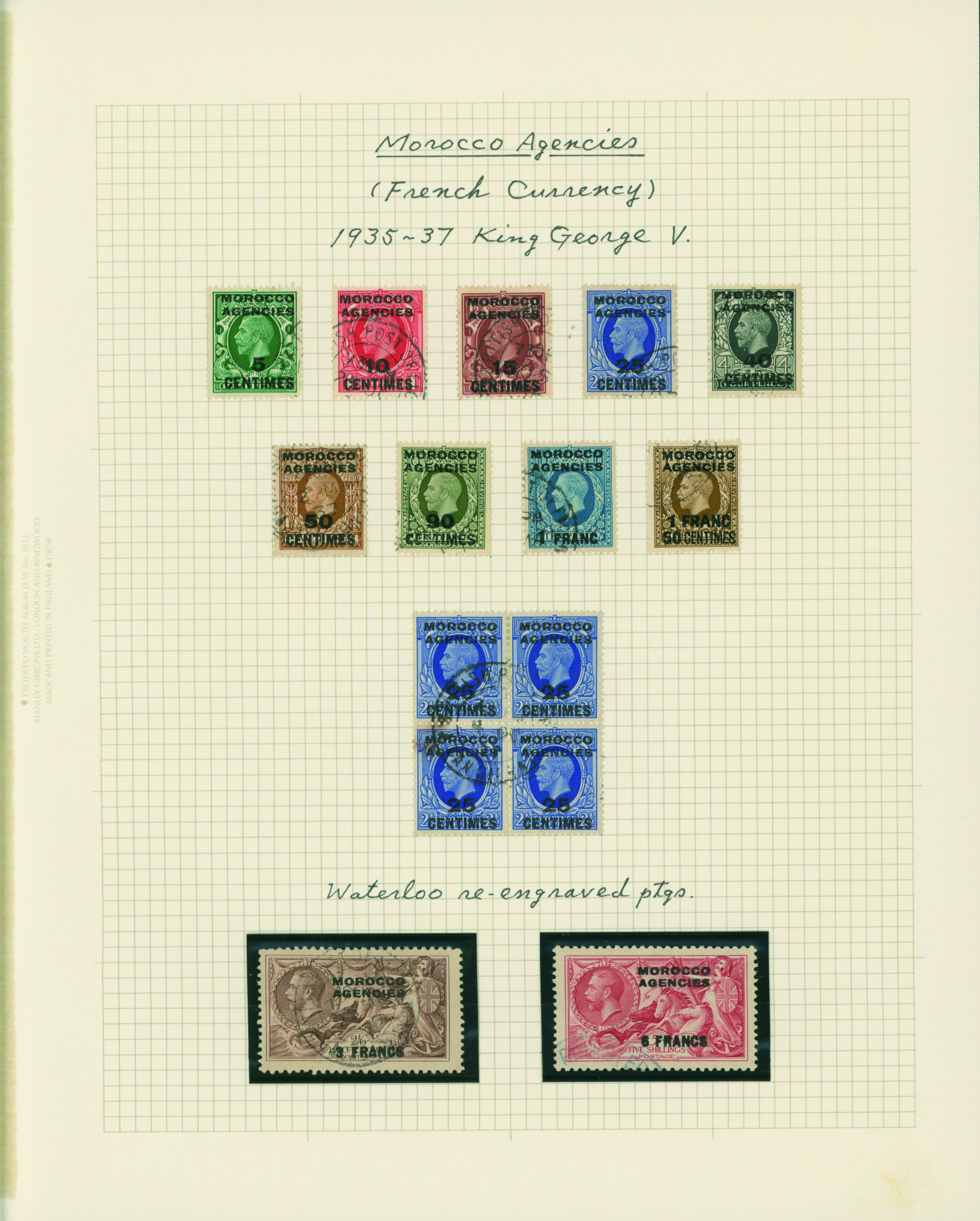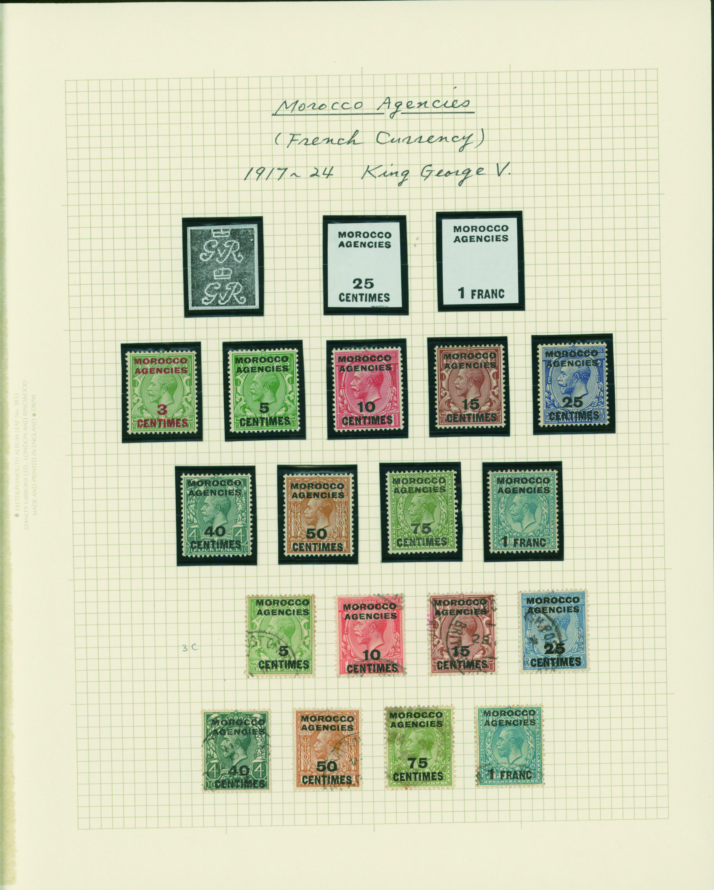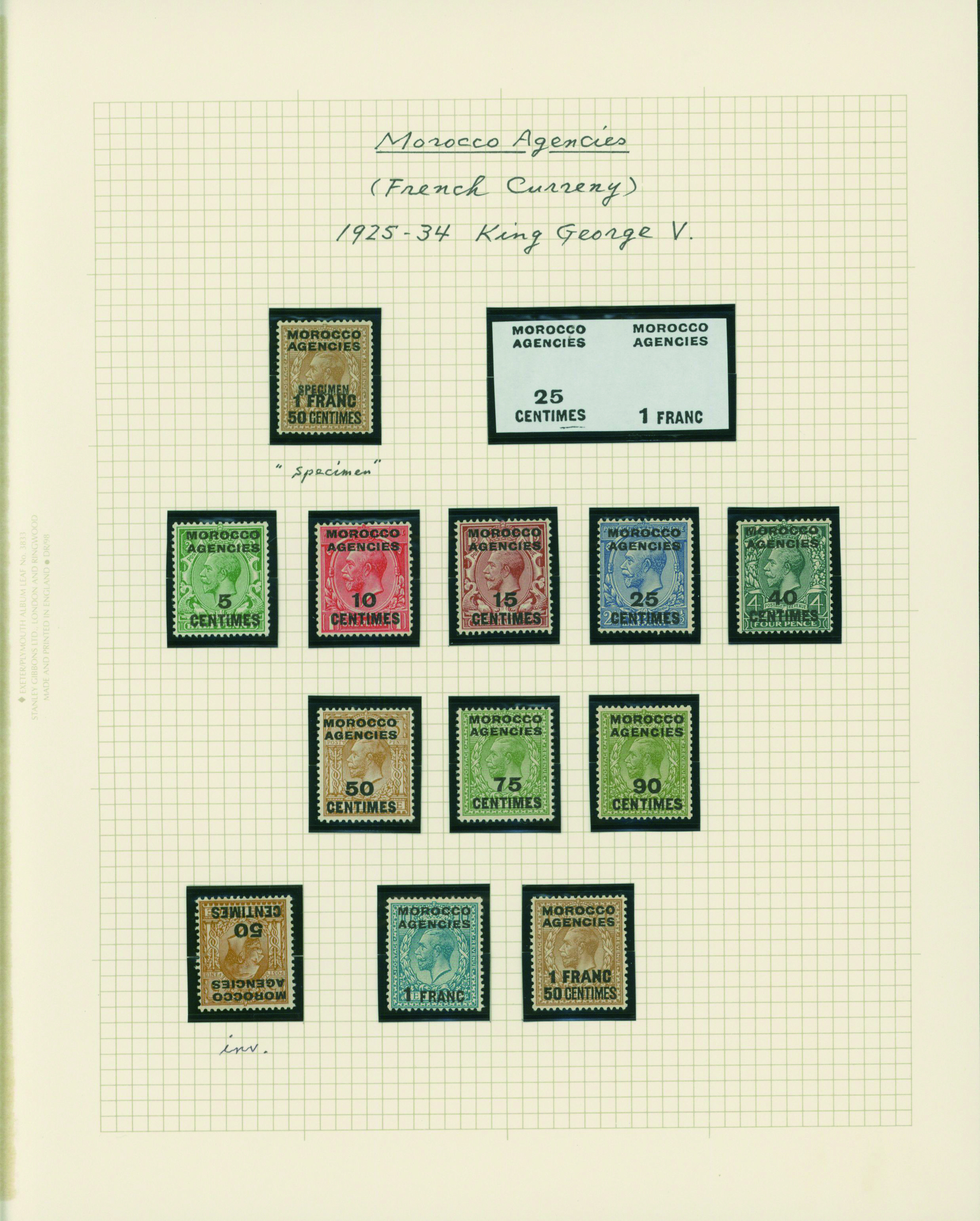 1136   imageUK British post offices in Morocco, French currency KGV 1925-1935 5 leaves mixed condition of unused and used, (Image1) (Image2) (Image3) (Image4) (Image5) (Image6) (All Images)