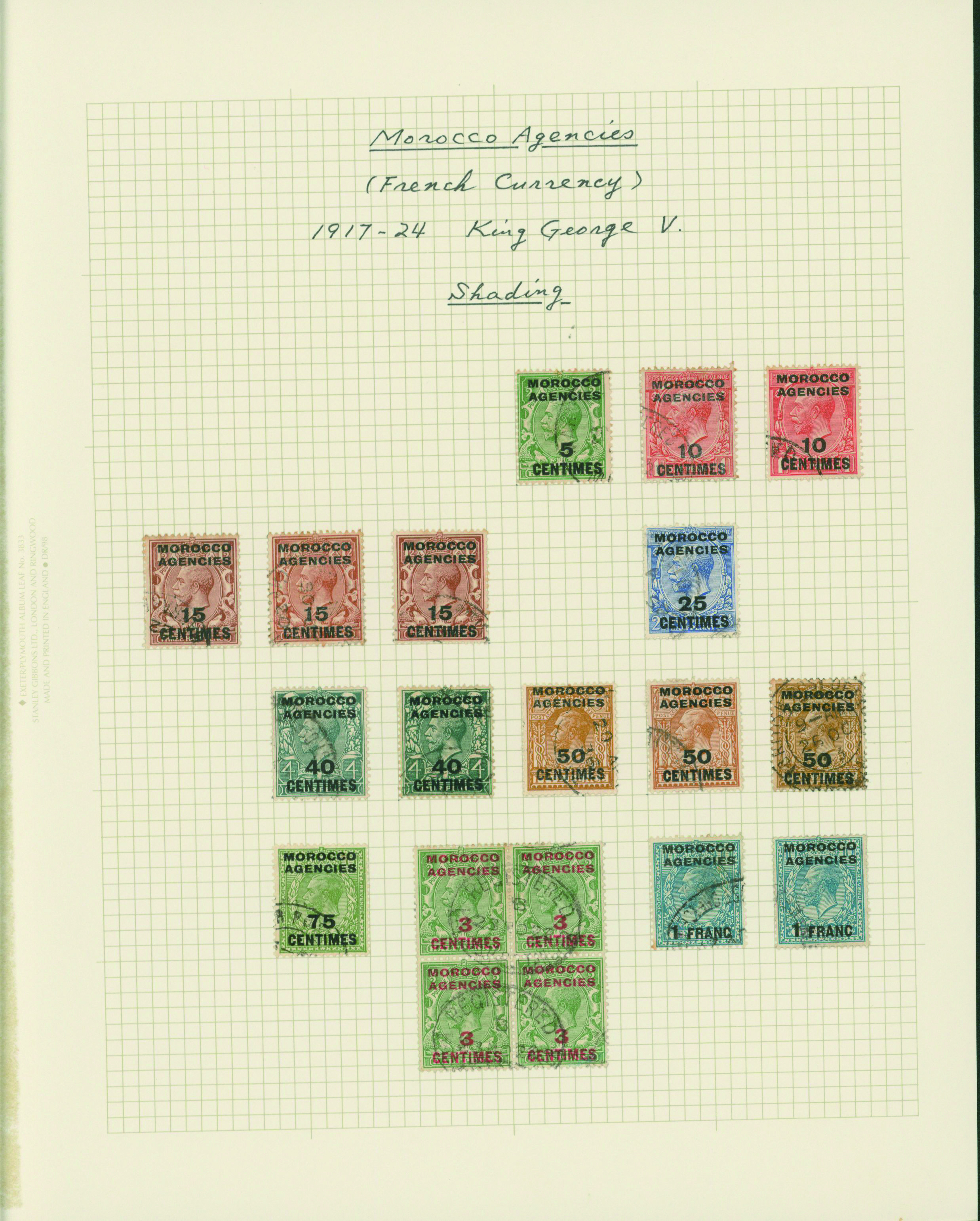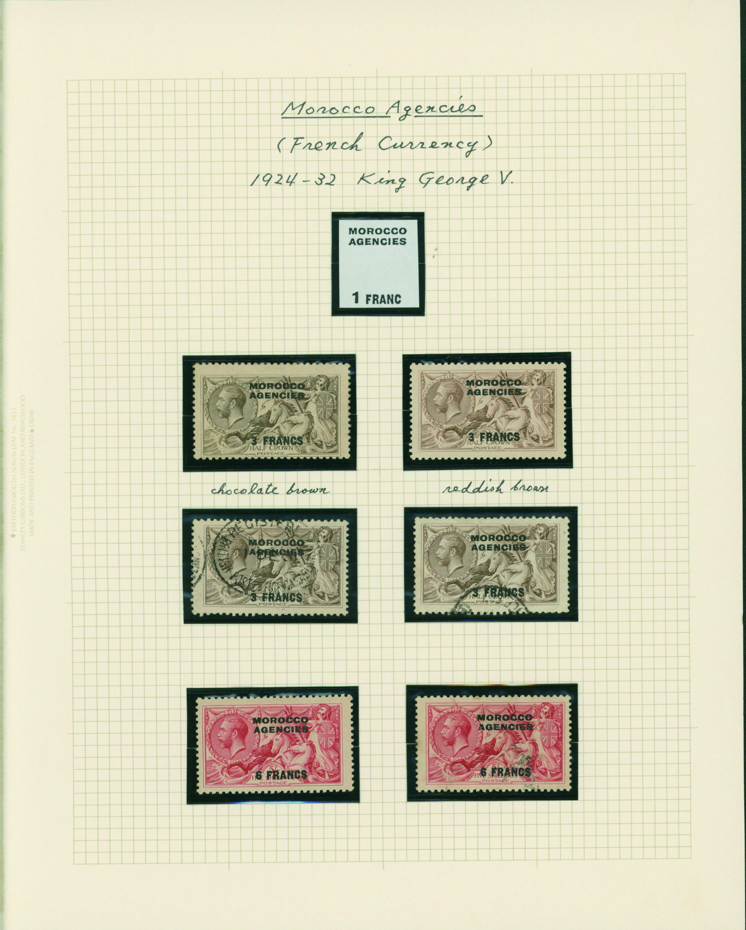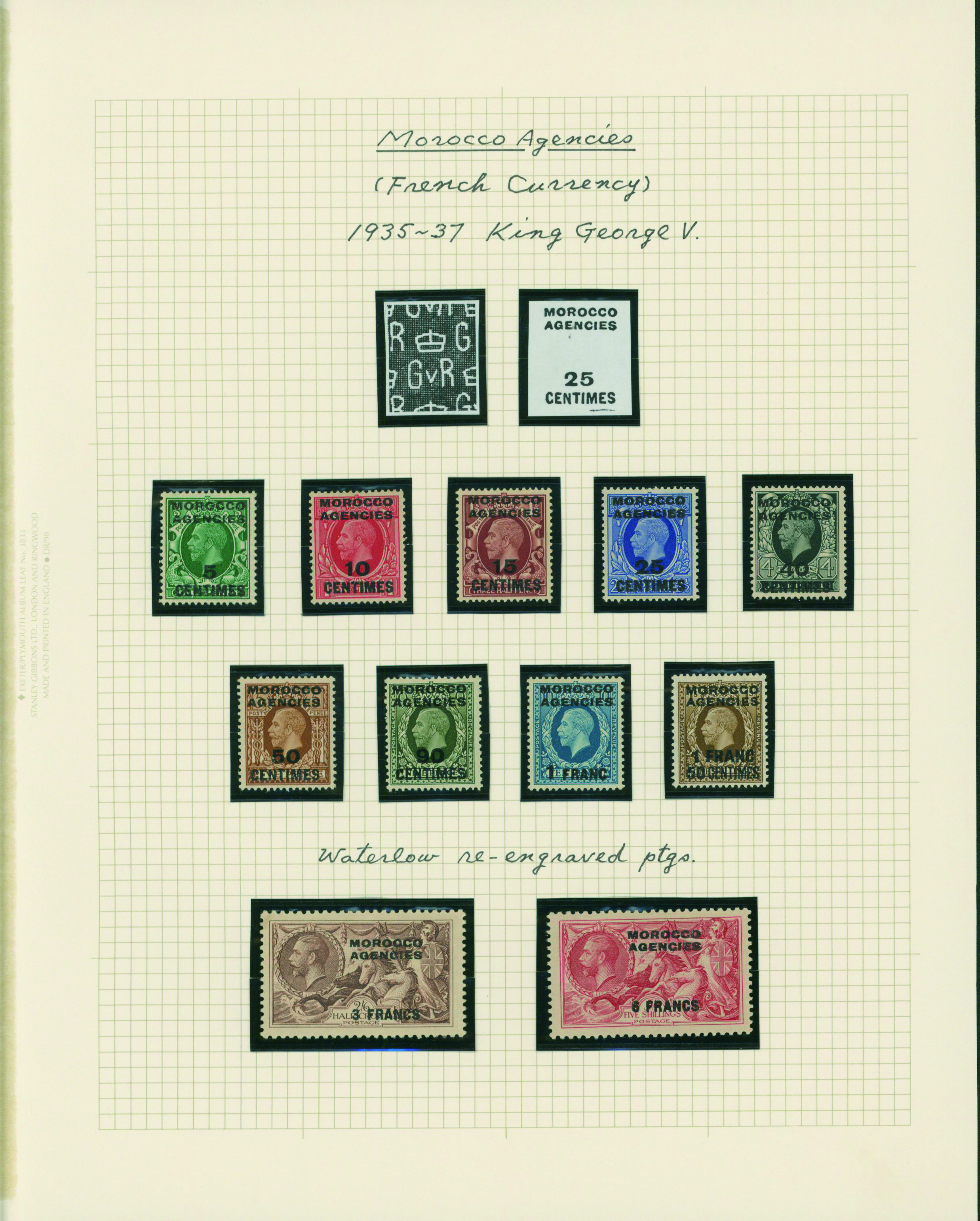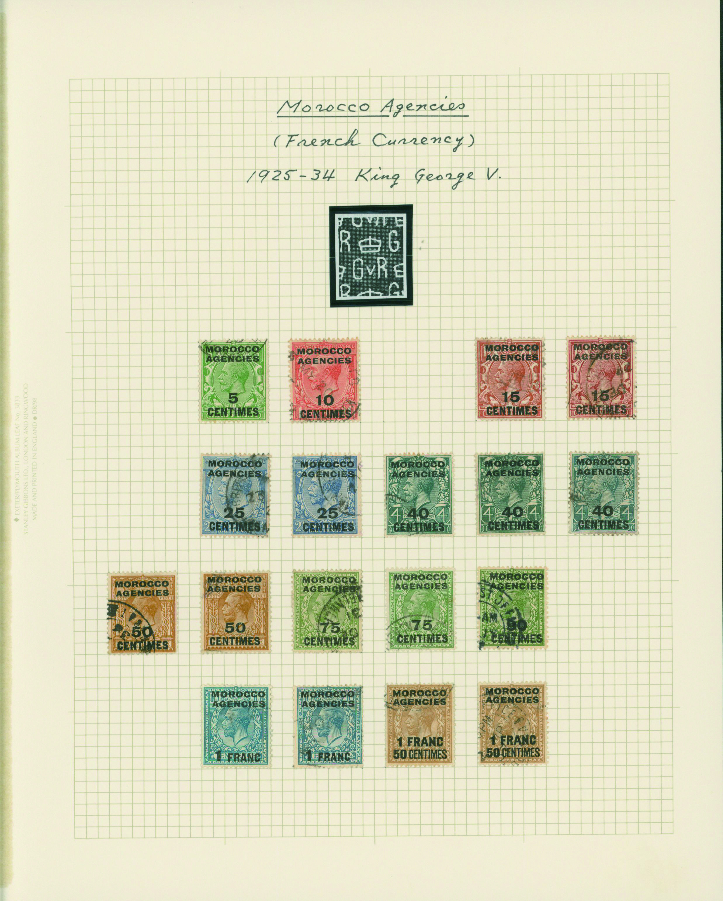 1136   imageUK British post offices in Morocco, French currency KGV 1925-1935 5 leaves mixed condition of unused and used, (Image1) (Image2) (Image3) (Image4) (Image5) (Image6) (All Images)