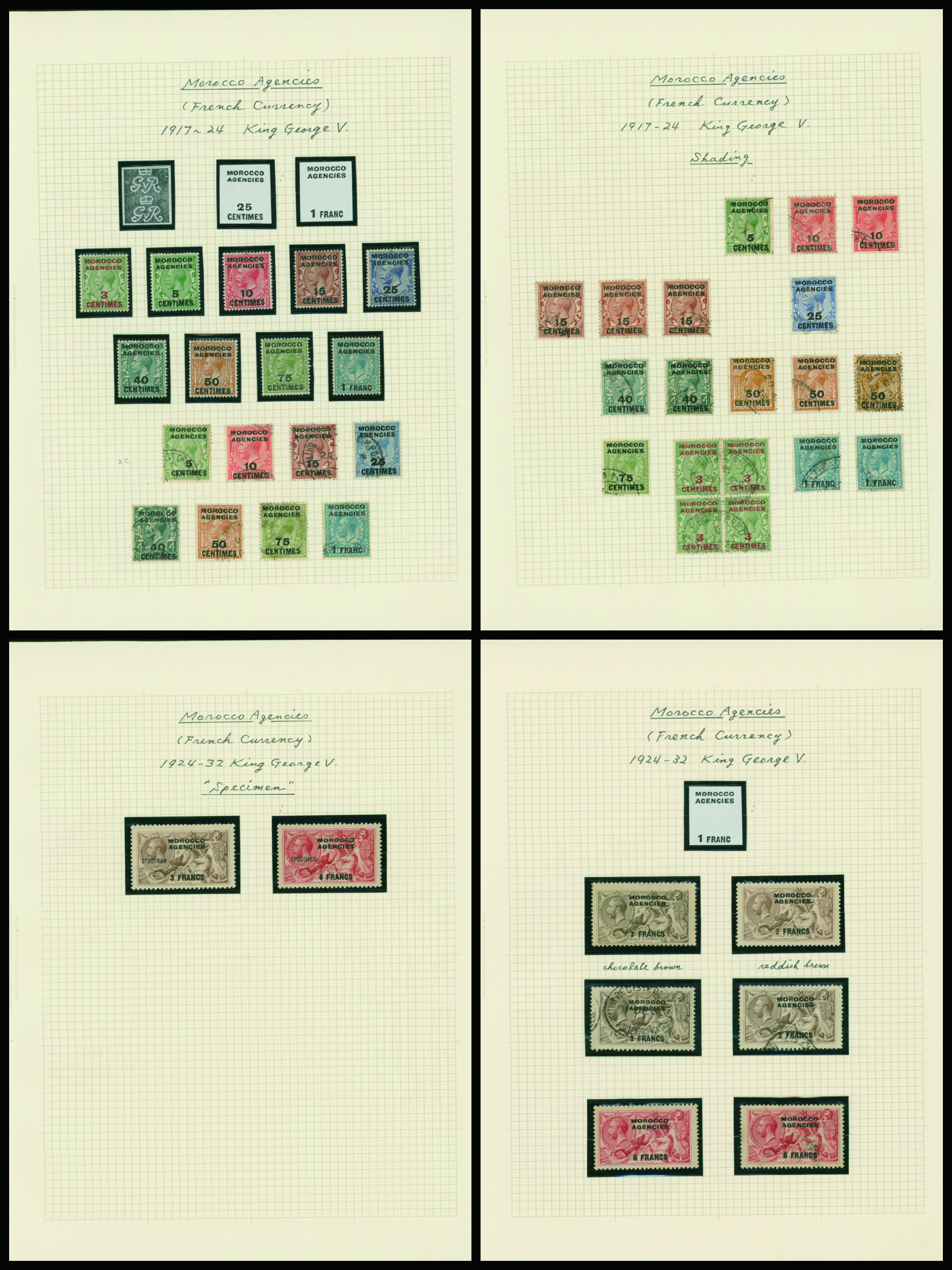 1133   imageUK British post offices in Morocco, French currency KGV 1917-1932 4 leaves mainly unused with some used, (Image1) (Image2) (Image3) (Image4) (Image5) (All Images)