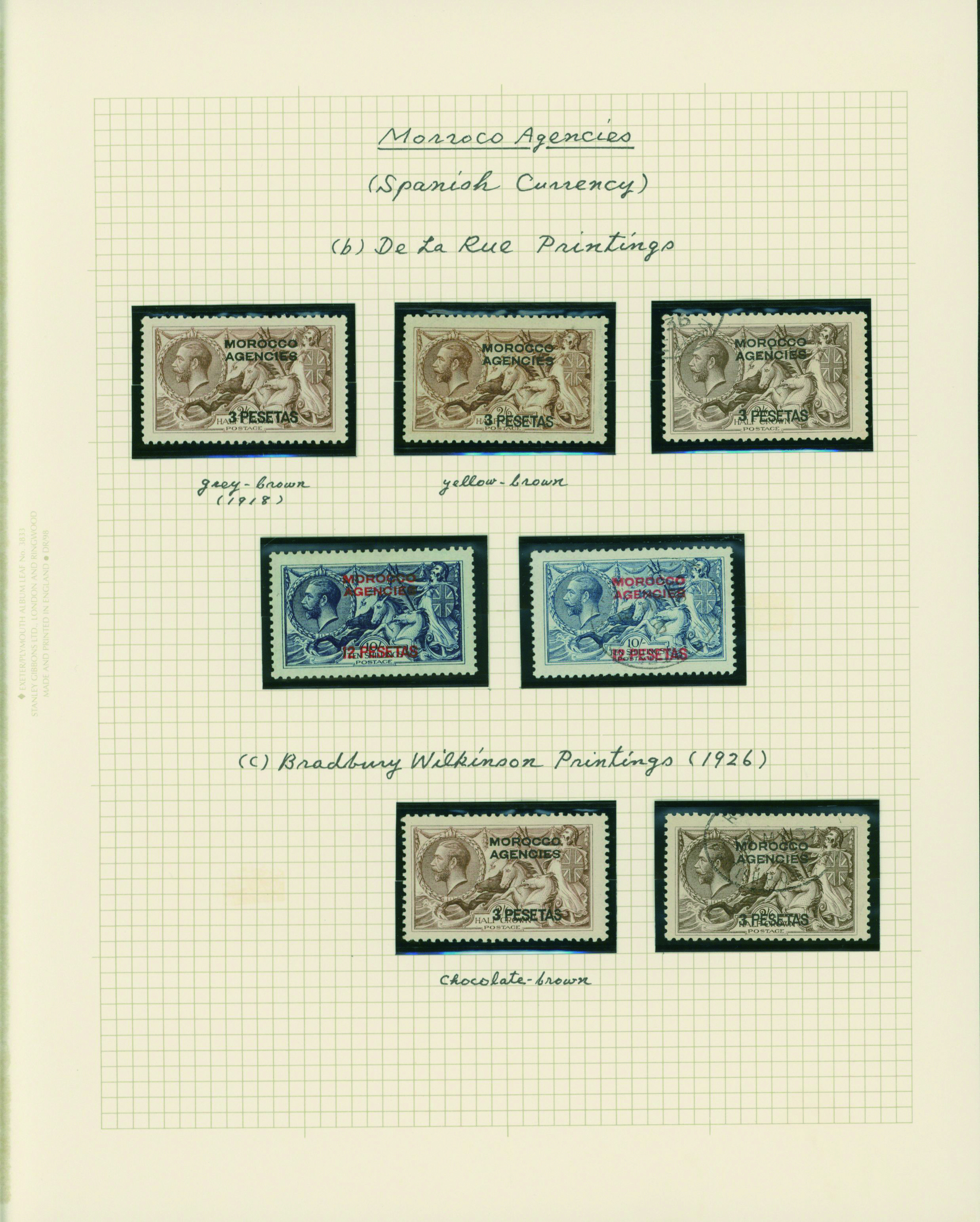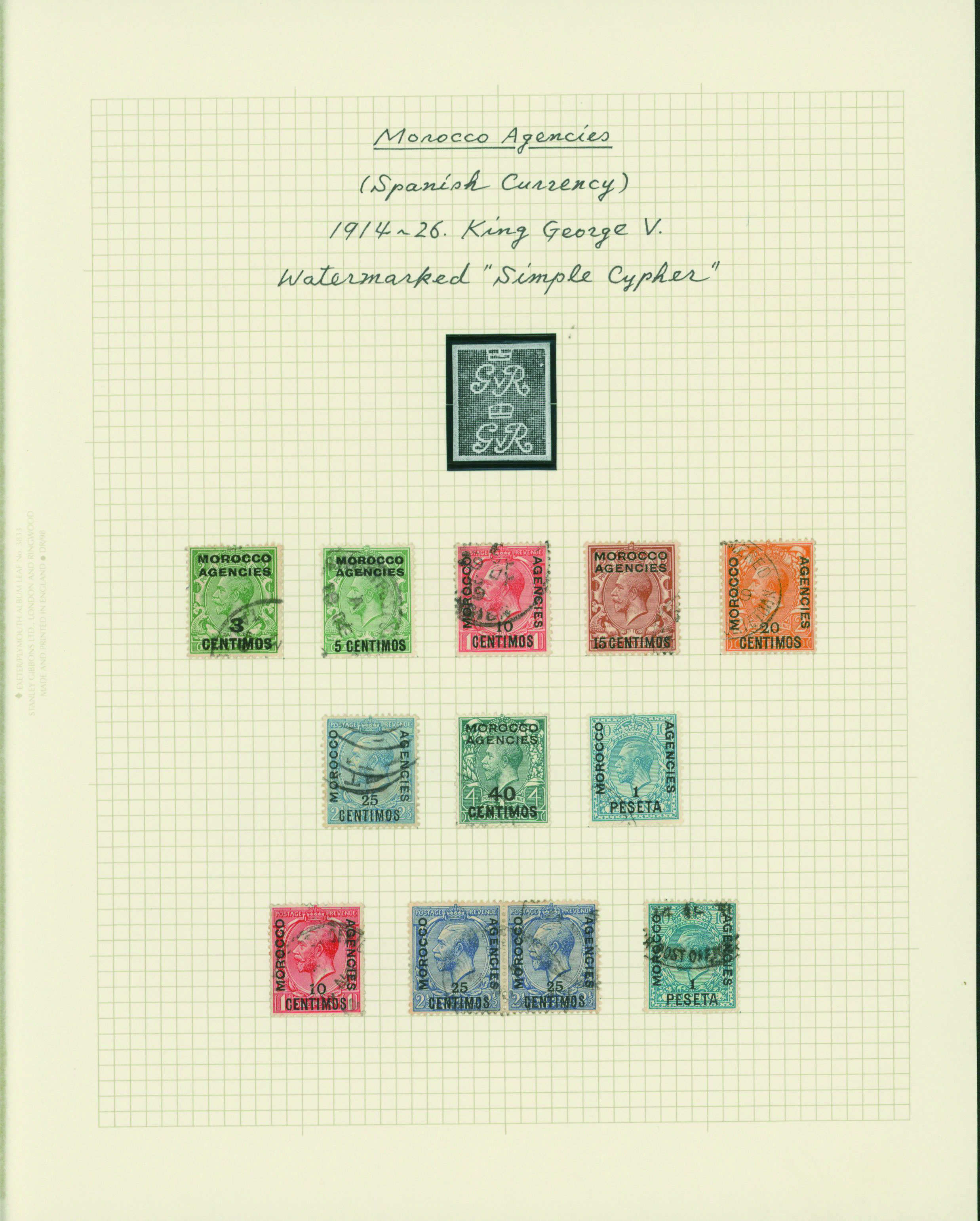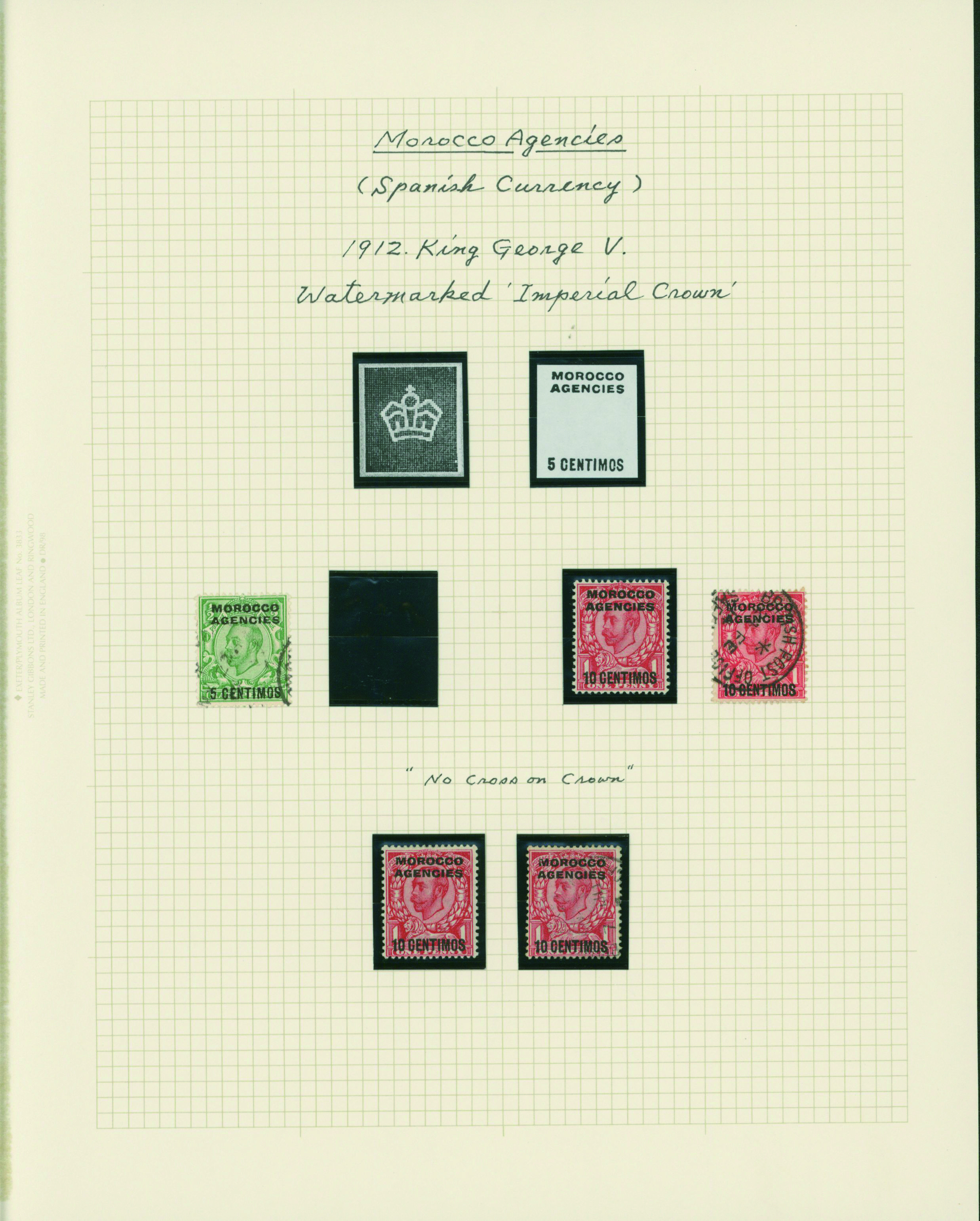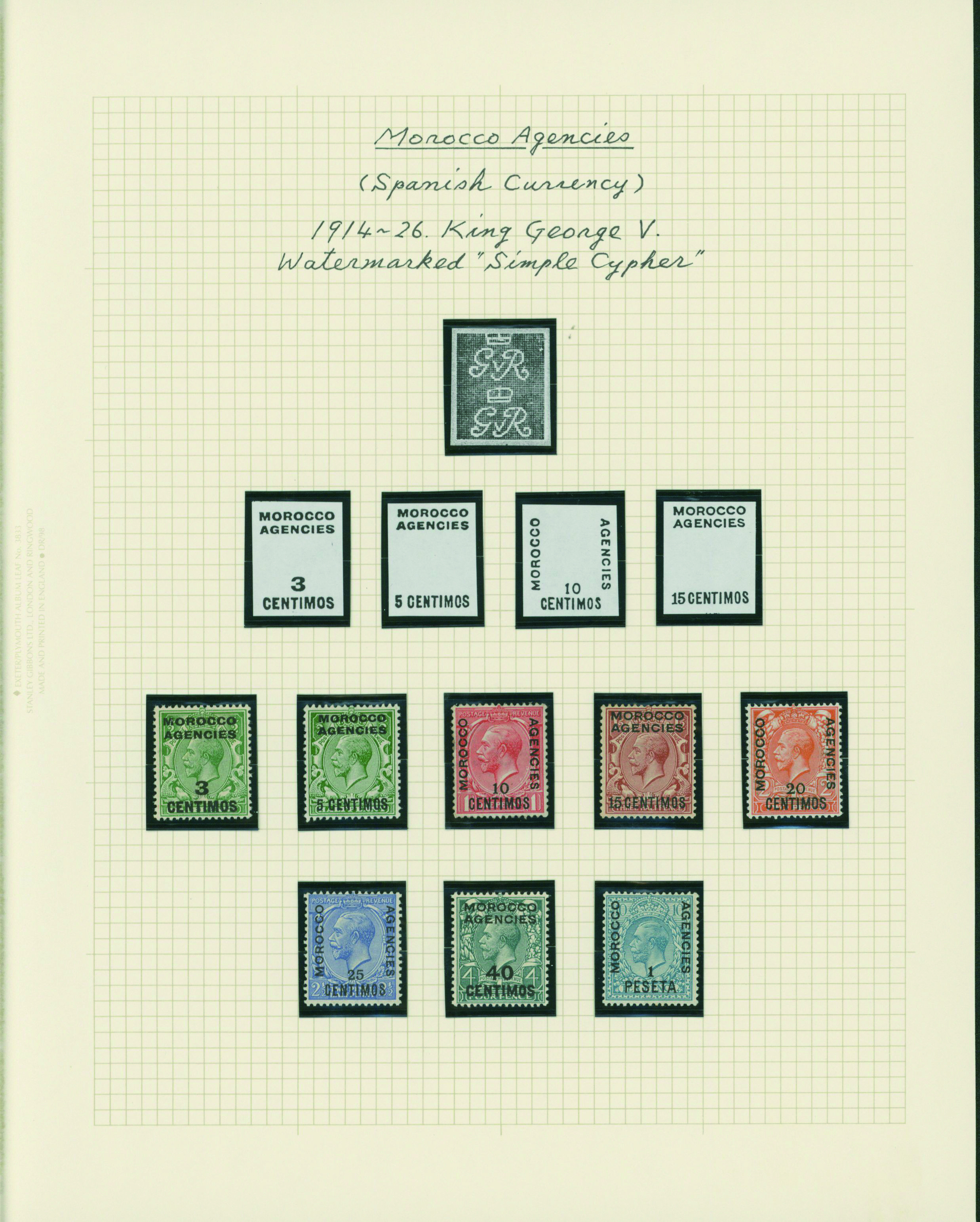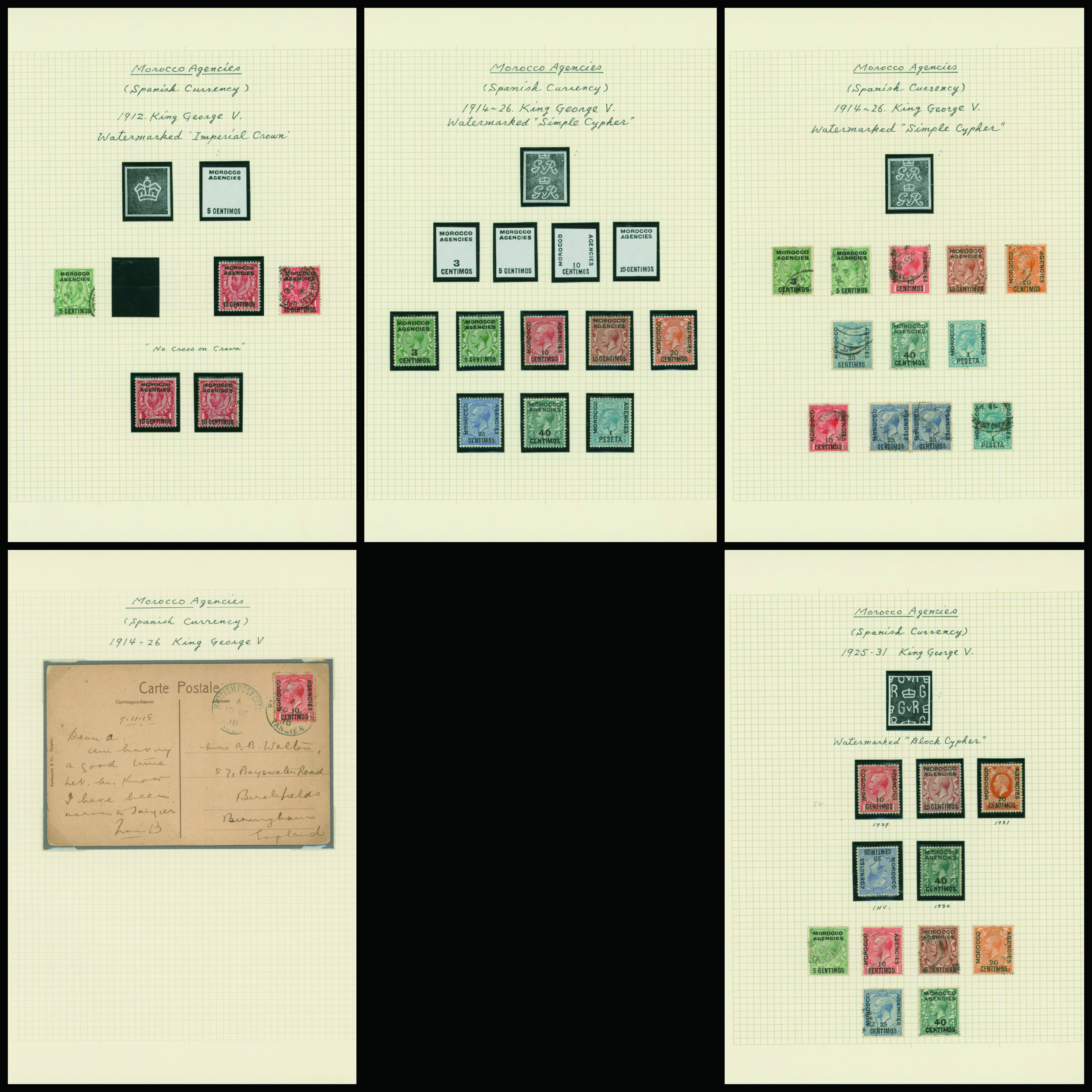 1127   imageUK British post offices in Morocco, Spanish currency KGV 1912-1931 5 leaves mixed condition of unused and used, (Image1) (Image2) (Image3) (Image4) (Image5) (Image6) (All Images)