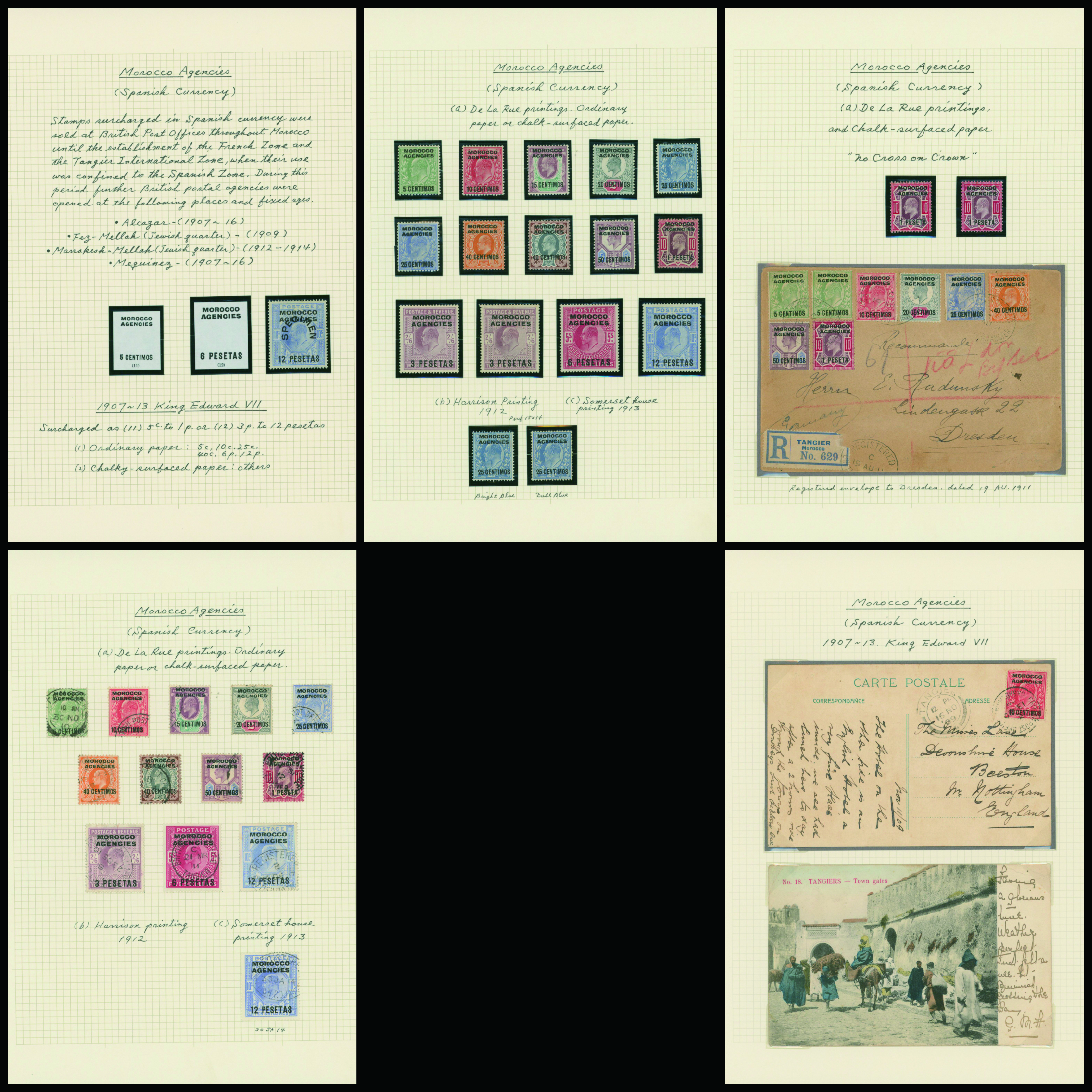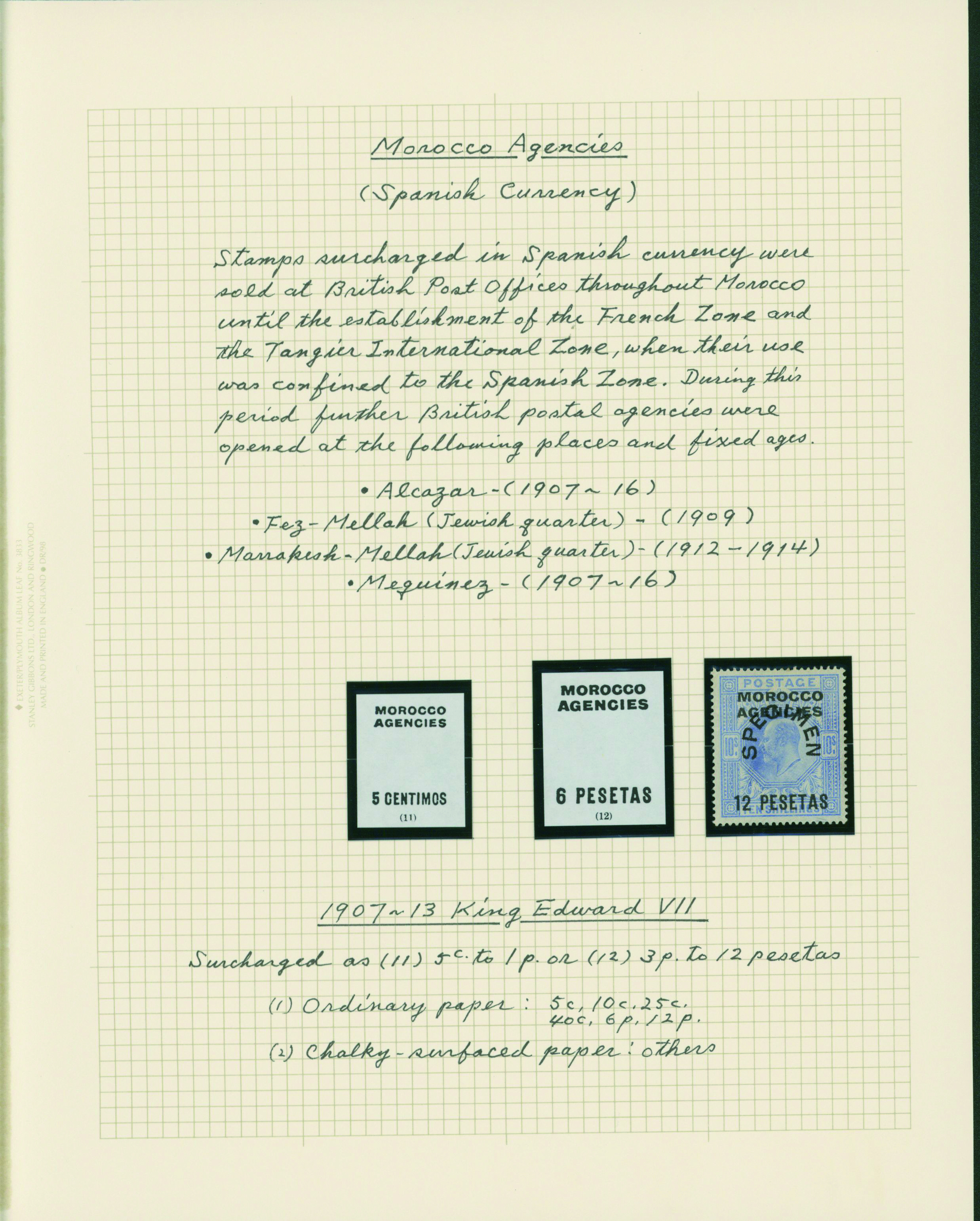 1126   imageUK British post offices in Morocco, Spanish currency KEVII 1907-1910 5 leaves mainly unused with some used, (Image1) (Image2) (Image3) (Image4) (Image5) (Image6) (All Images)