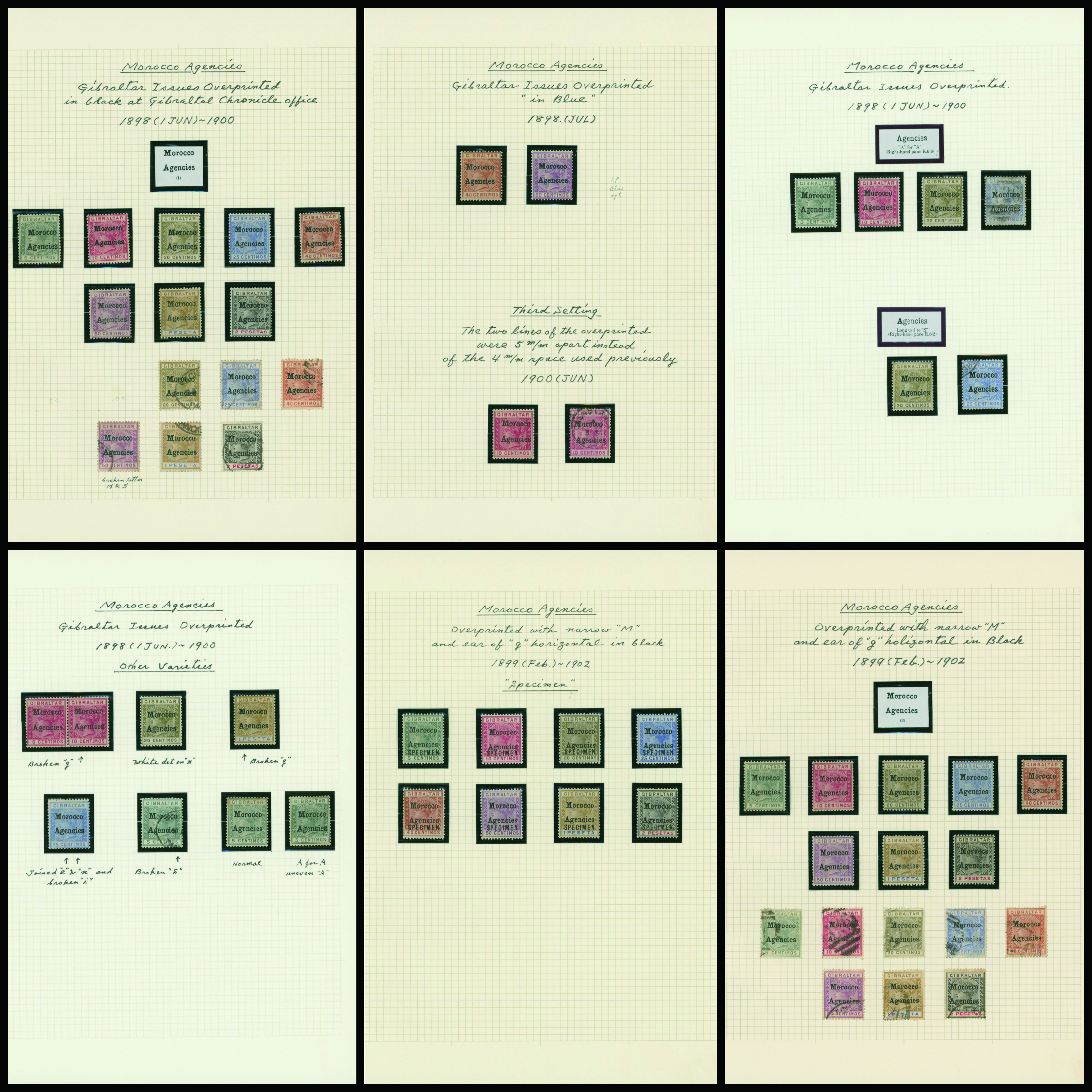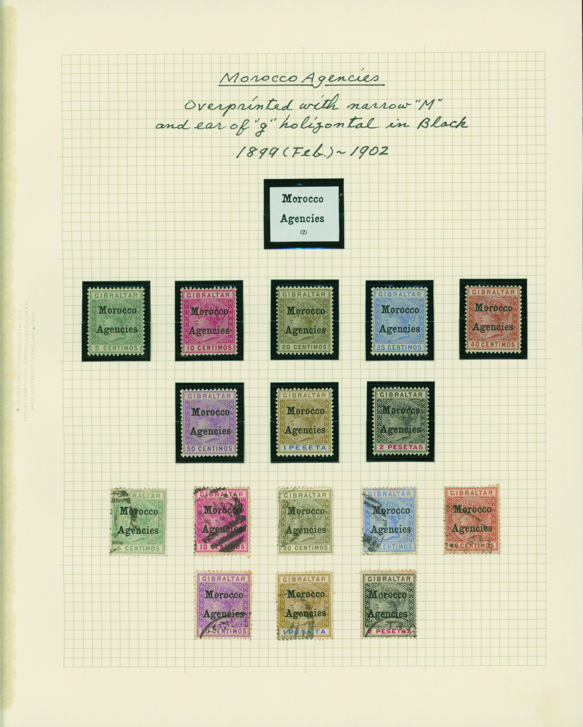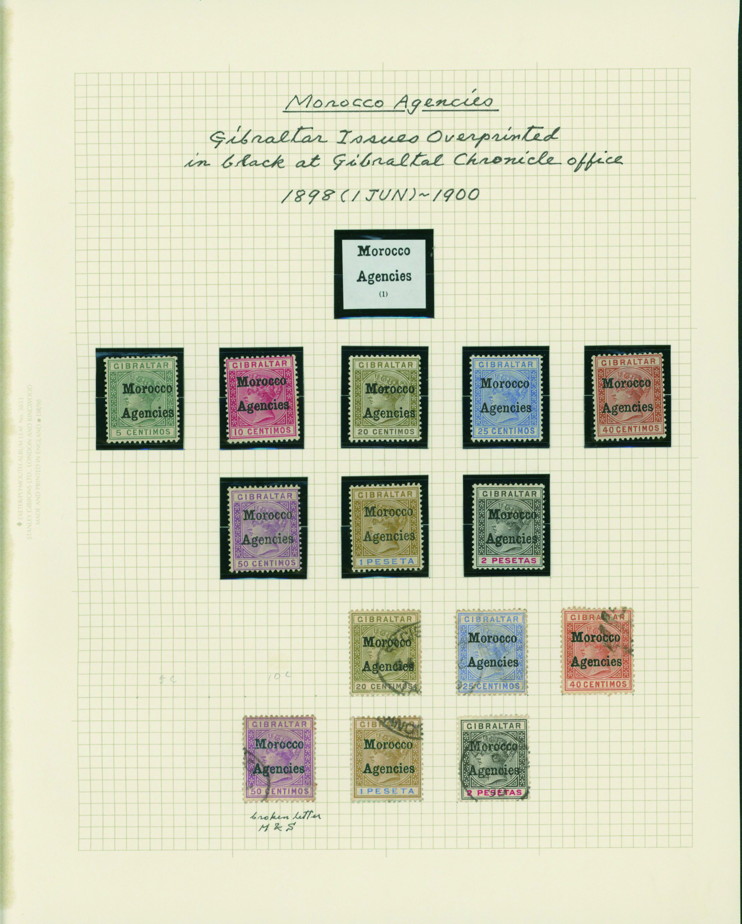 1139   imageUK British Postal agencies in Morocco overprinted on Gibraltar stamps 1898-1899 9 leaves mainly unused with some used,YouTube (Image1) (Image2) (Image3) (Image4) (Image5) (Image6) (Image7) (All Images)