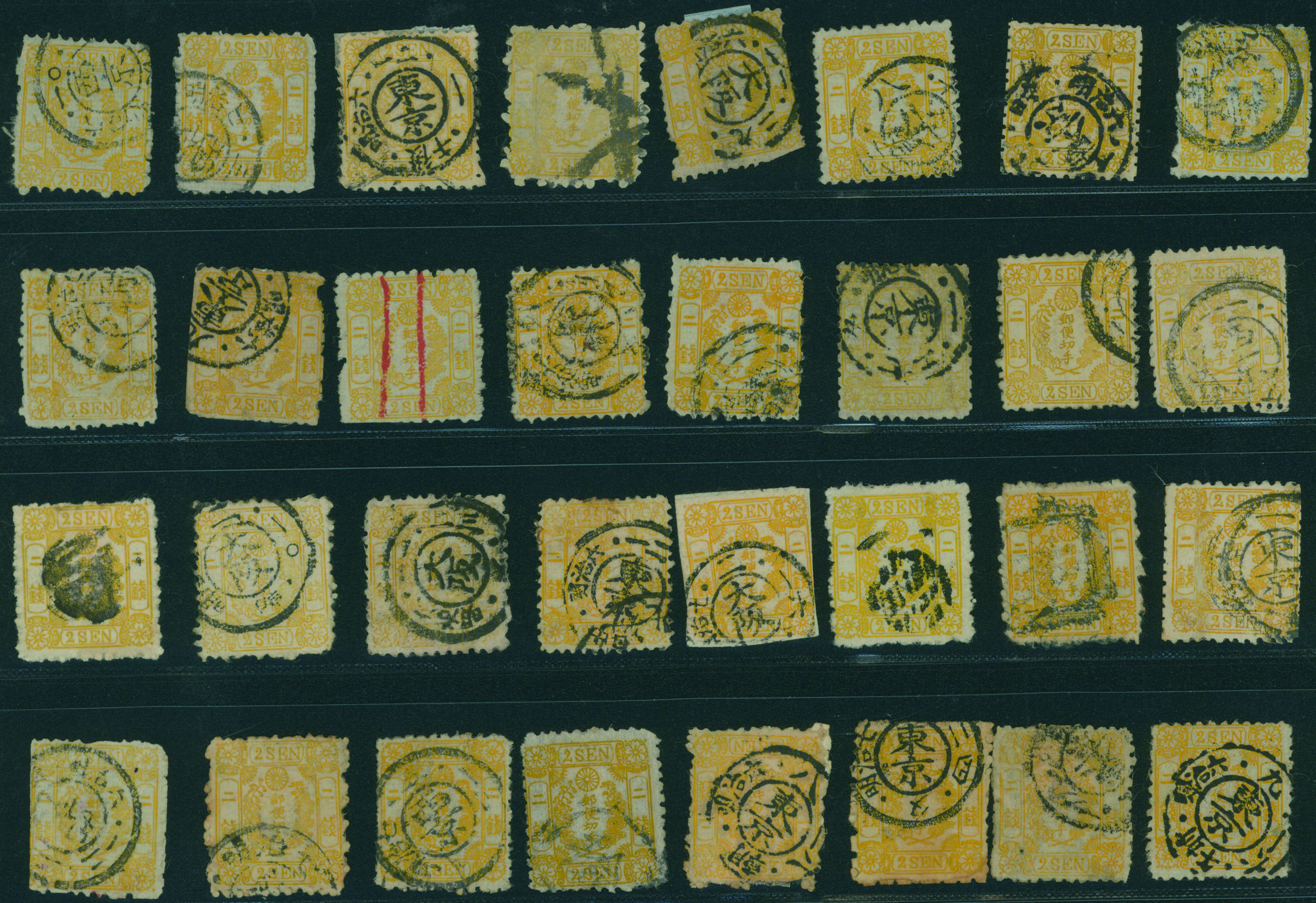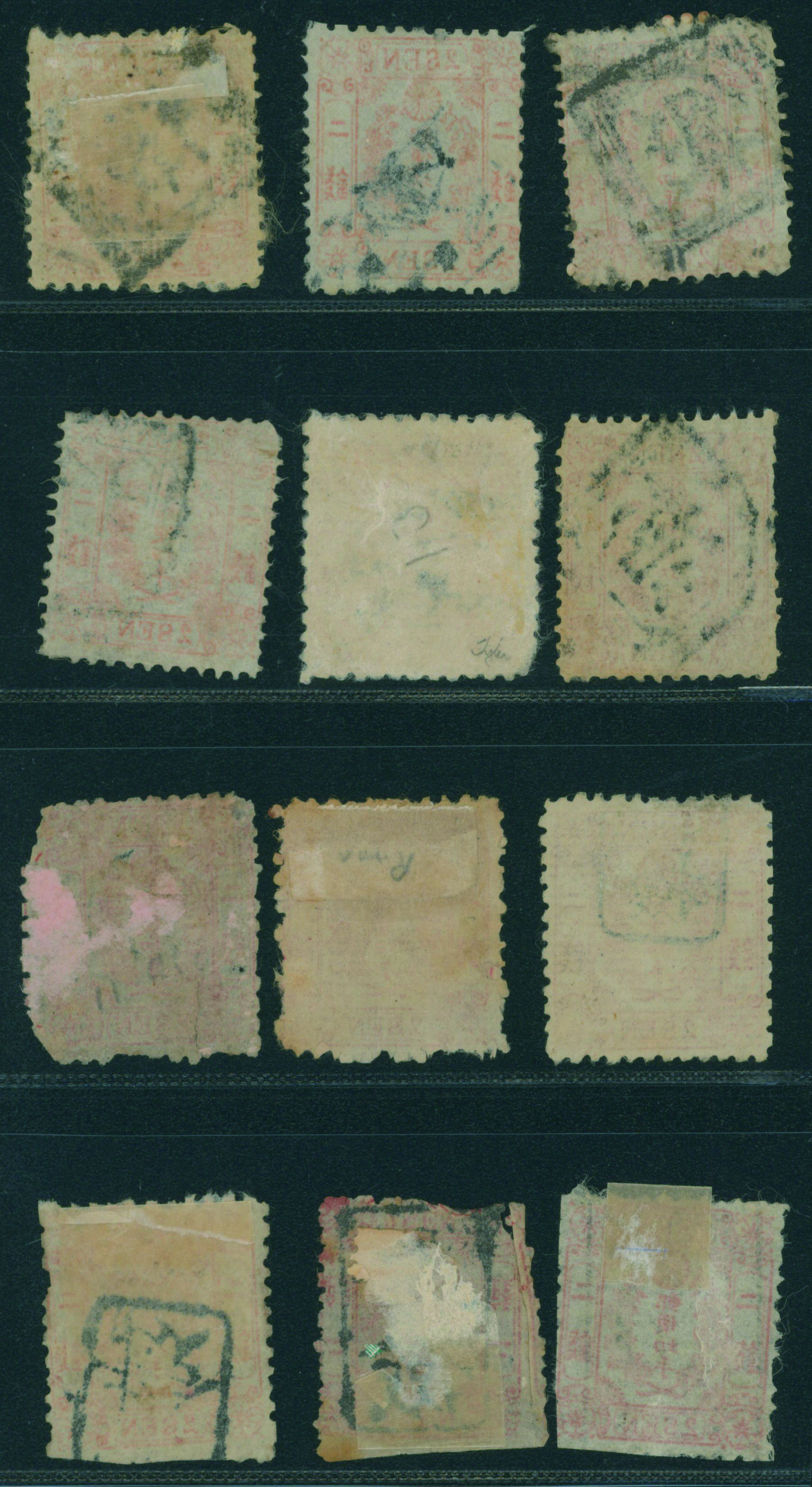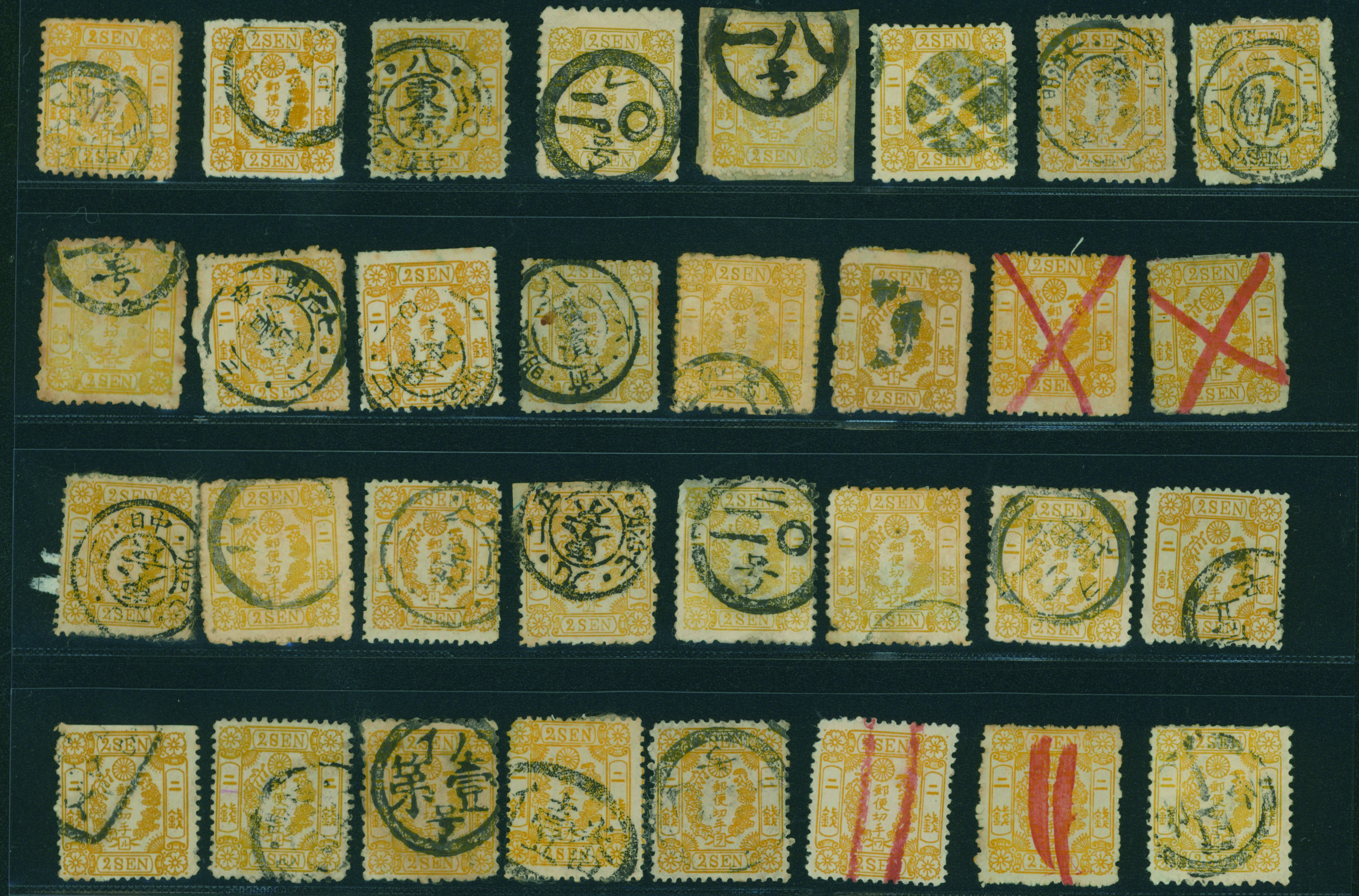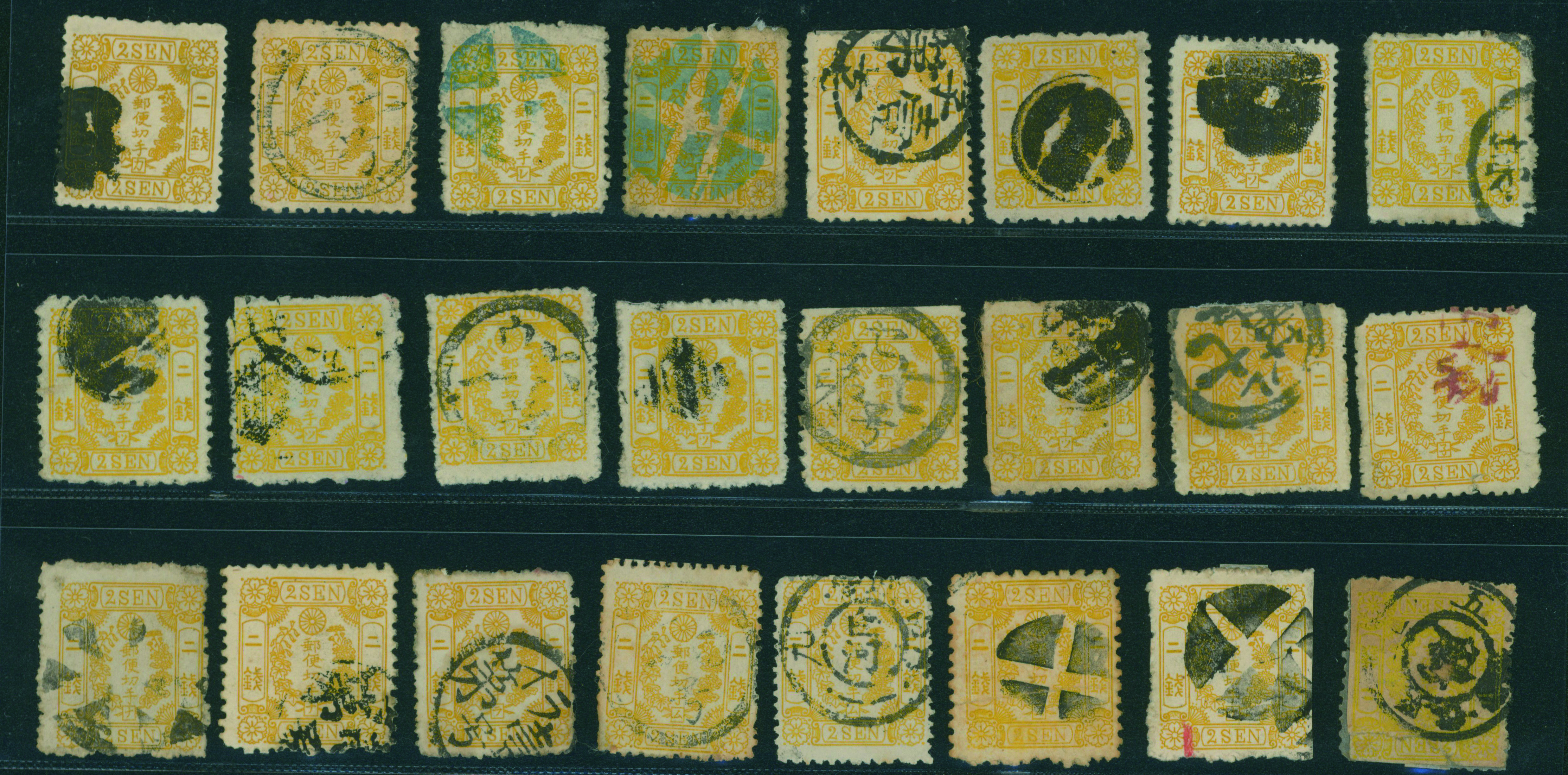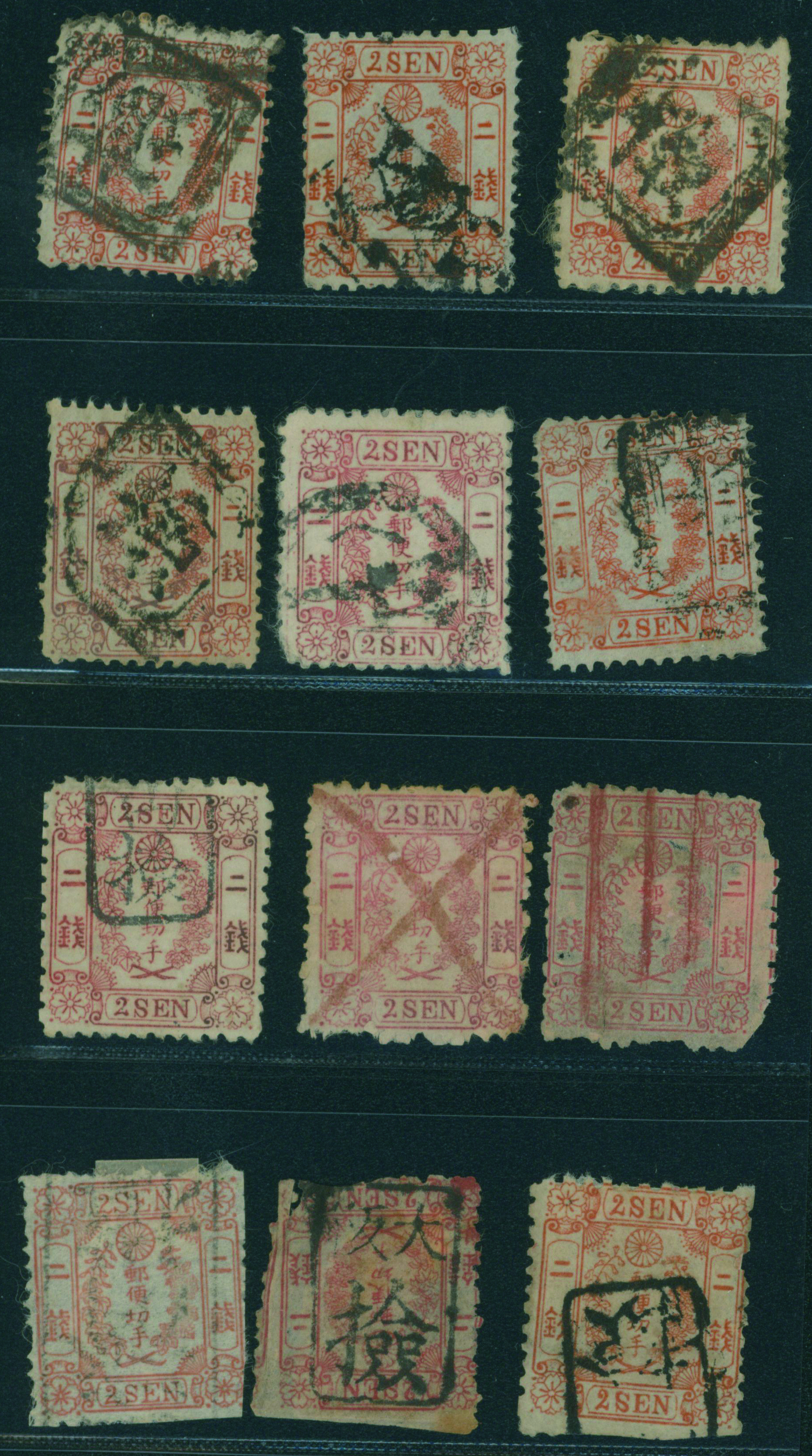 Cherry Blossom 2 Sen 12 examples used cancelled by obliteration fancy cancellation (Image1) (Image2)