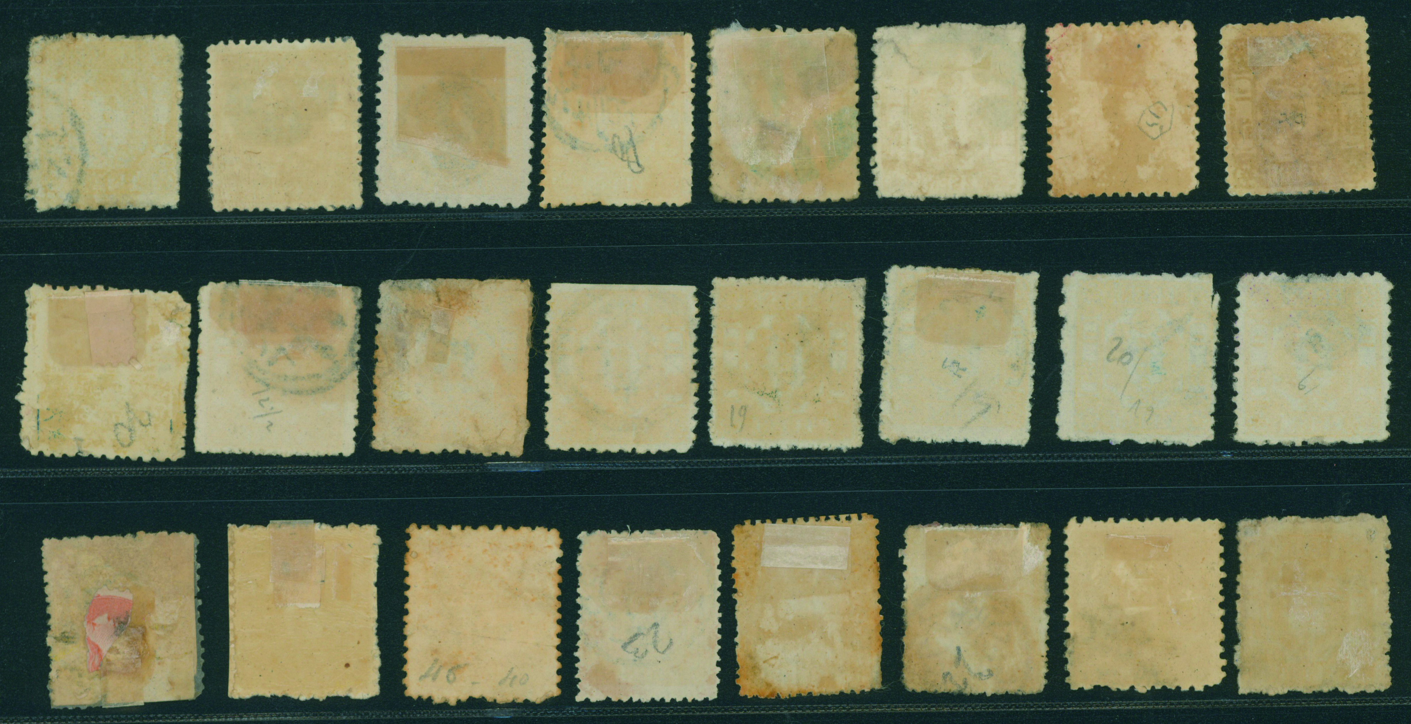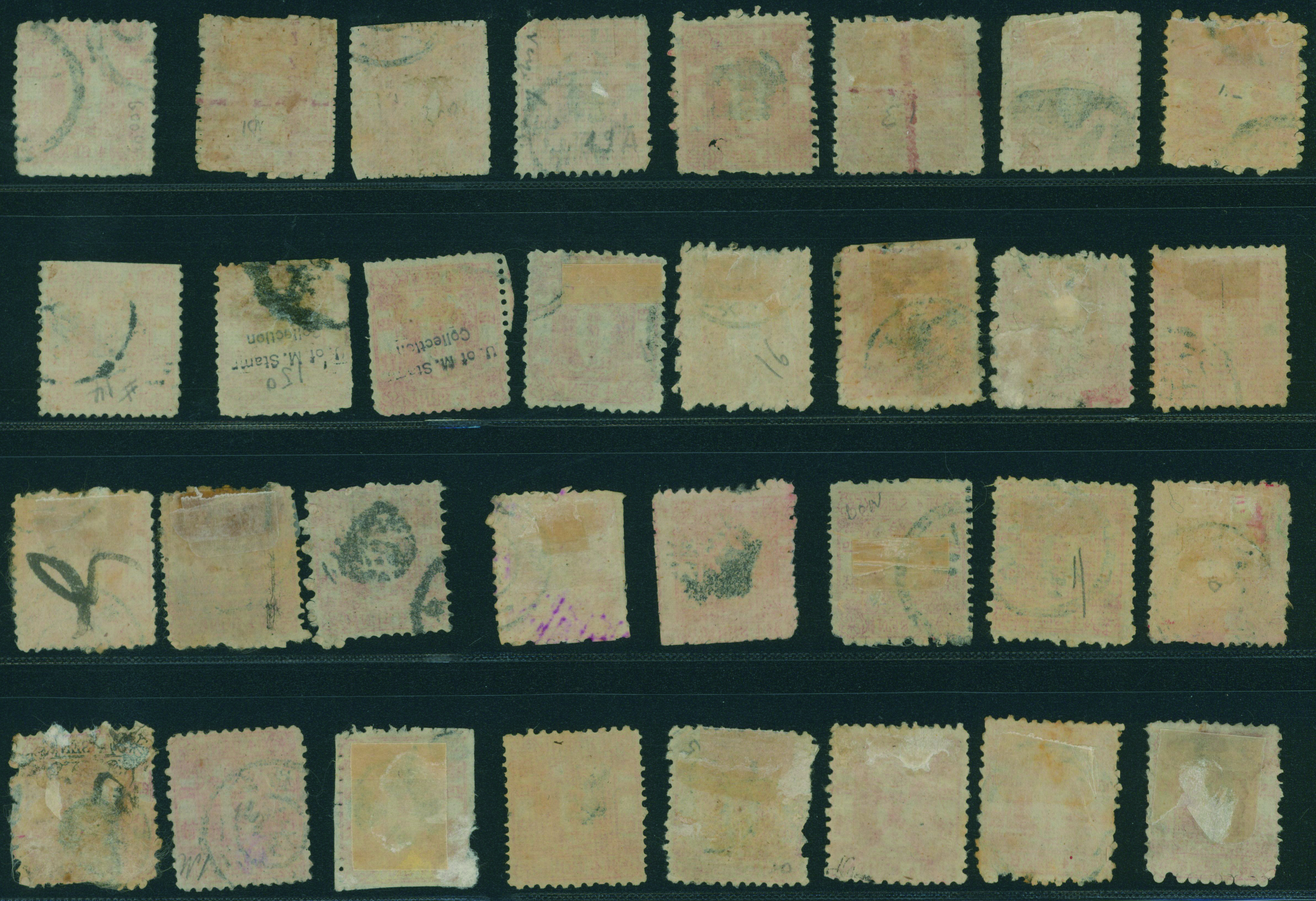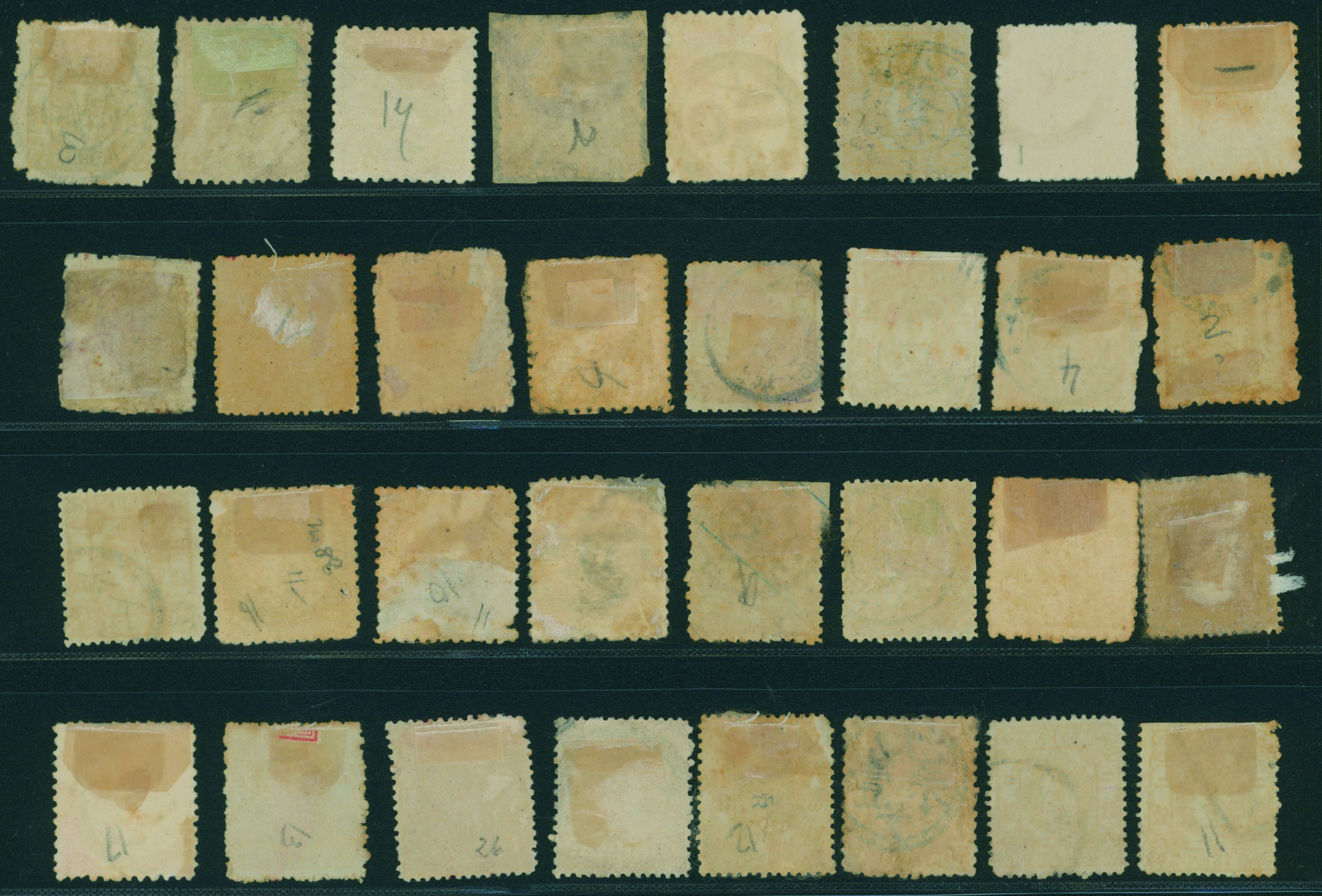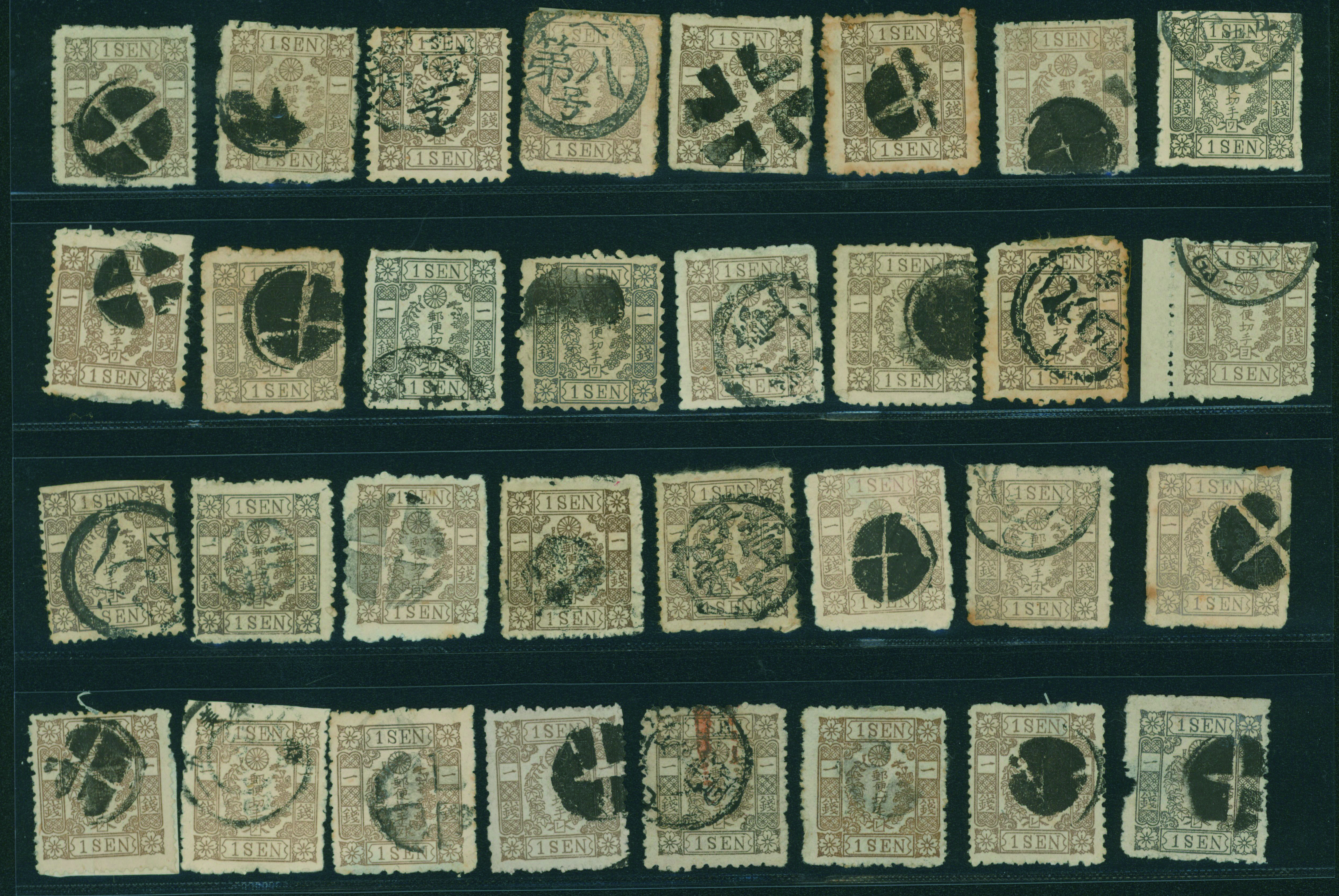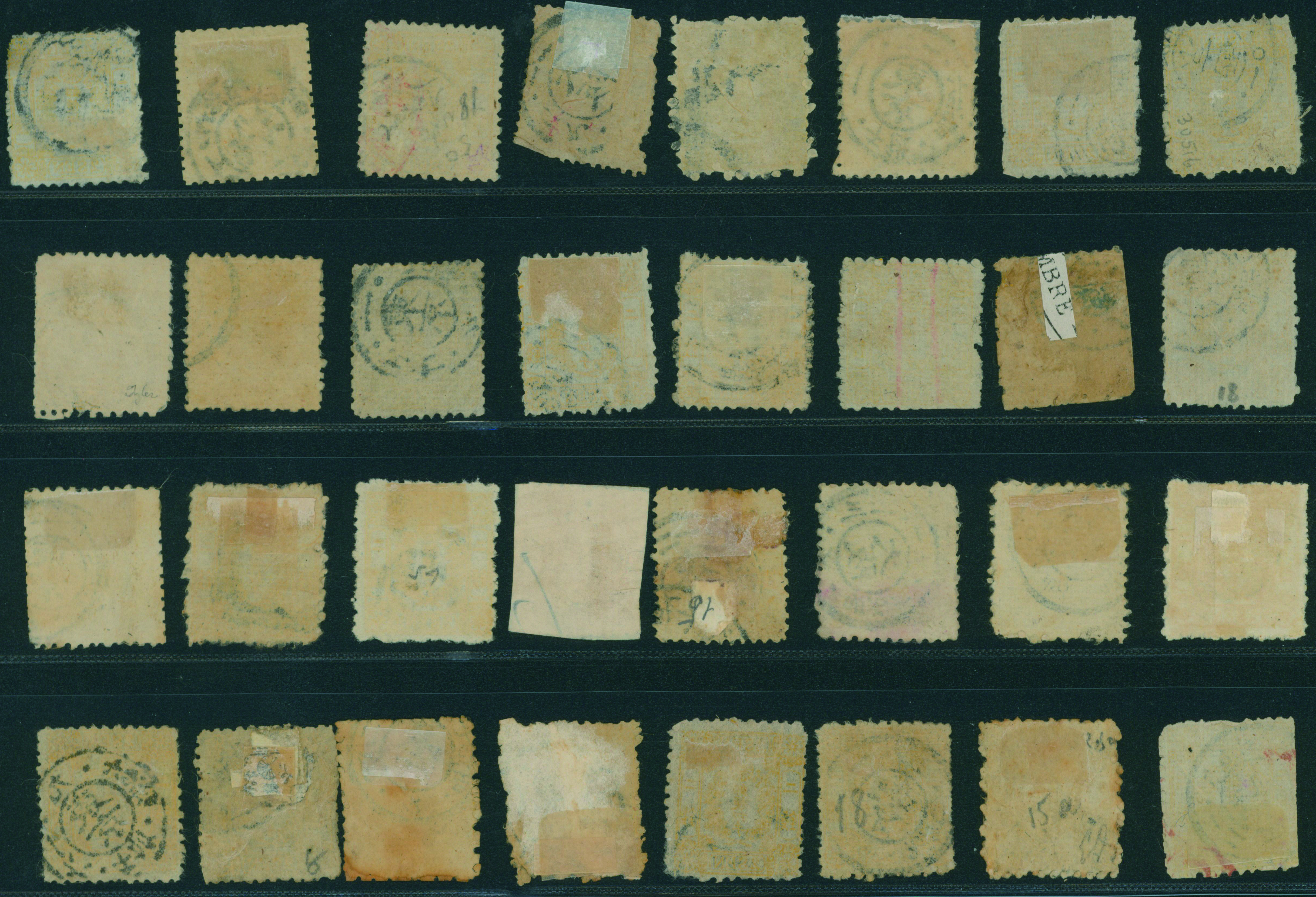 1874 Cherry Blossom Imported Paper half Sen brown with kana (32) mixed condition of unused and