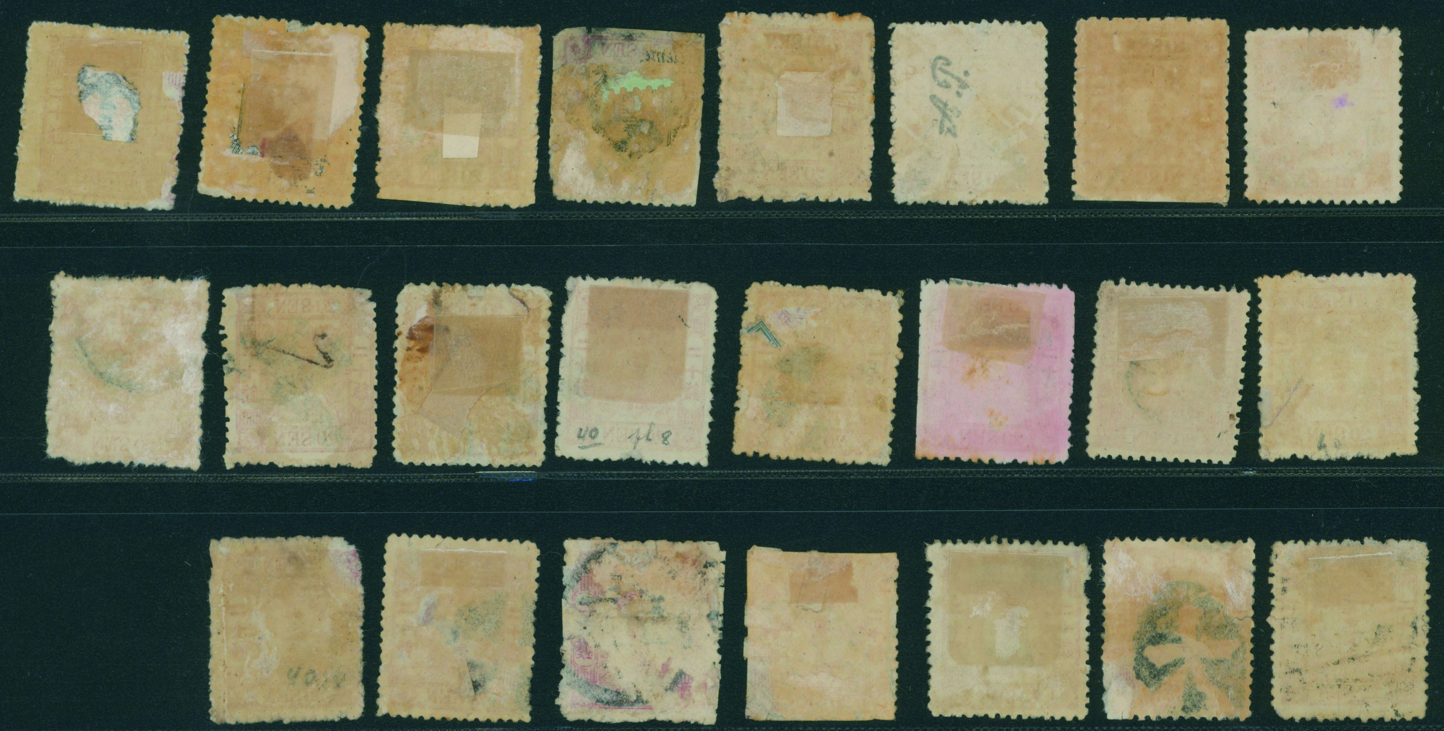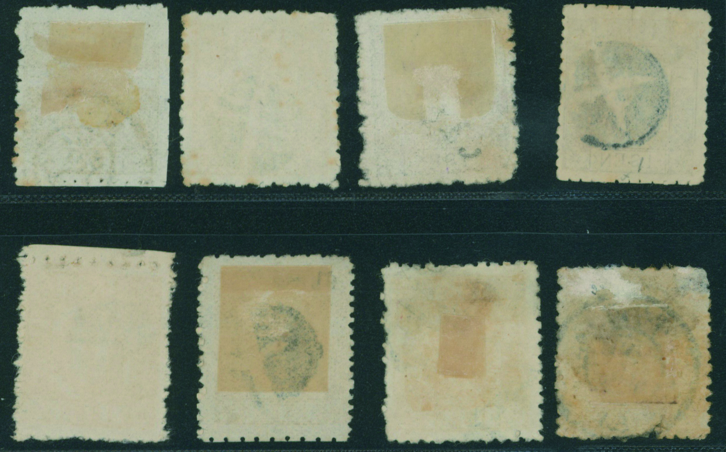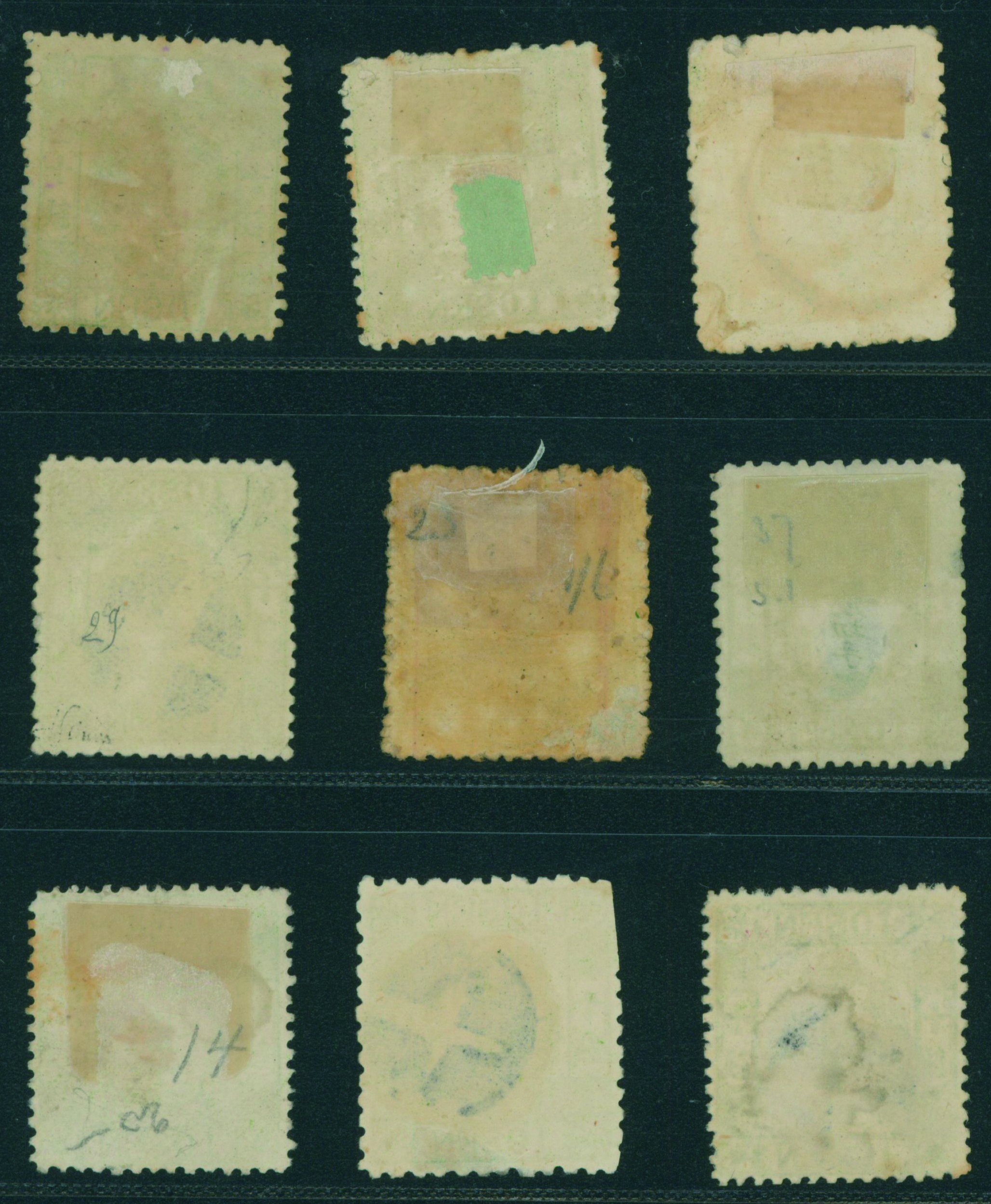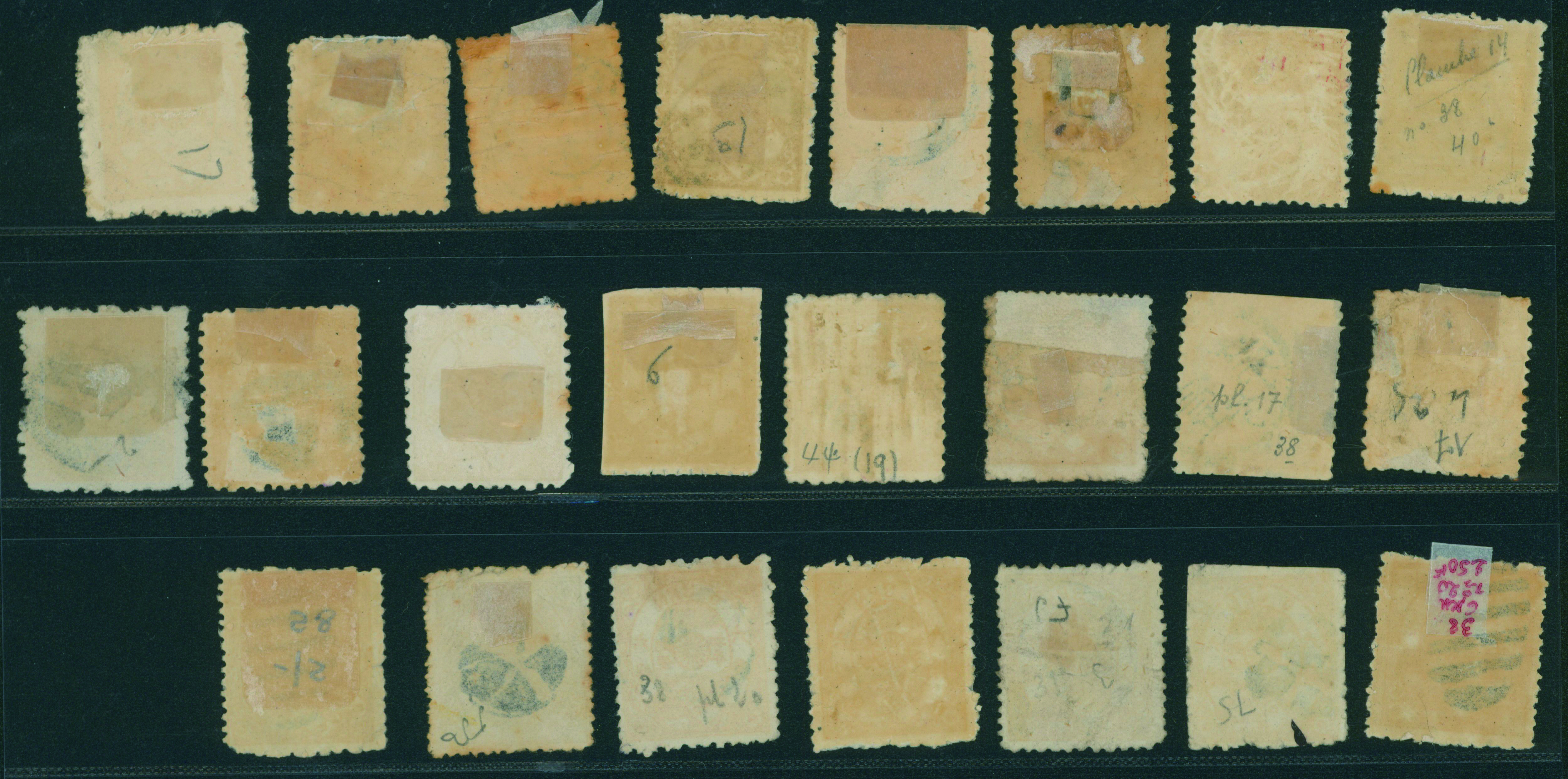 1874 Cherry Blossom Imported Paper half Sen brown with kana (32) mixed condition of unused and