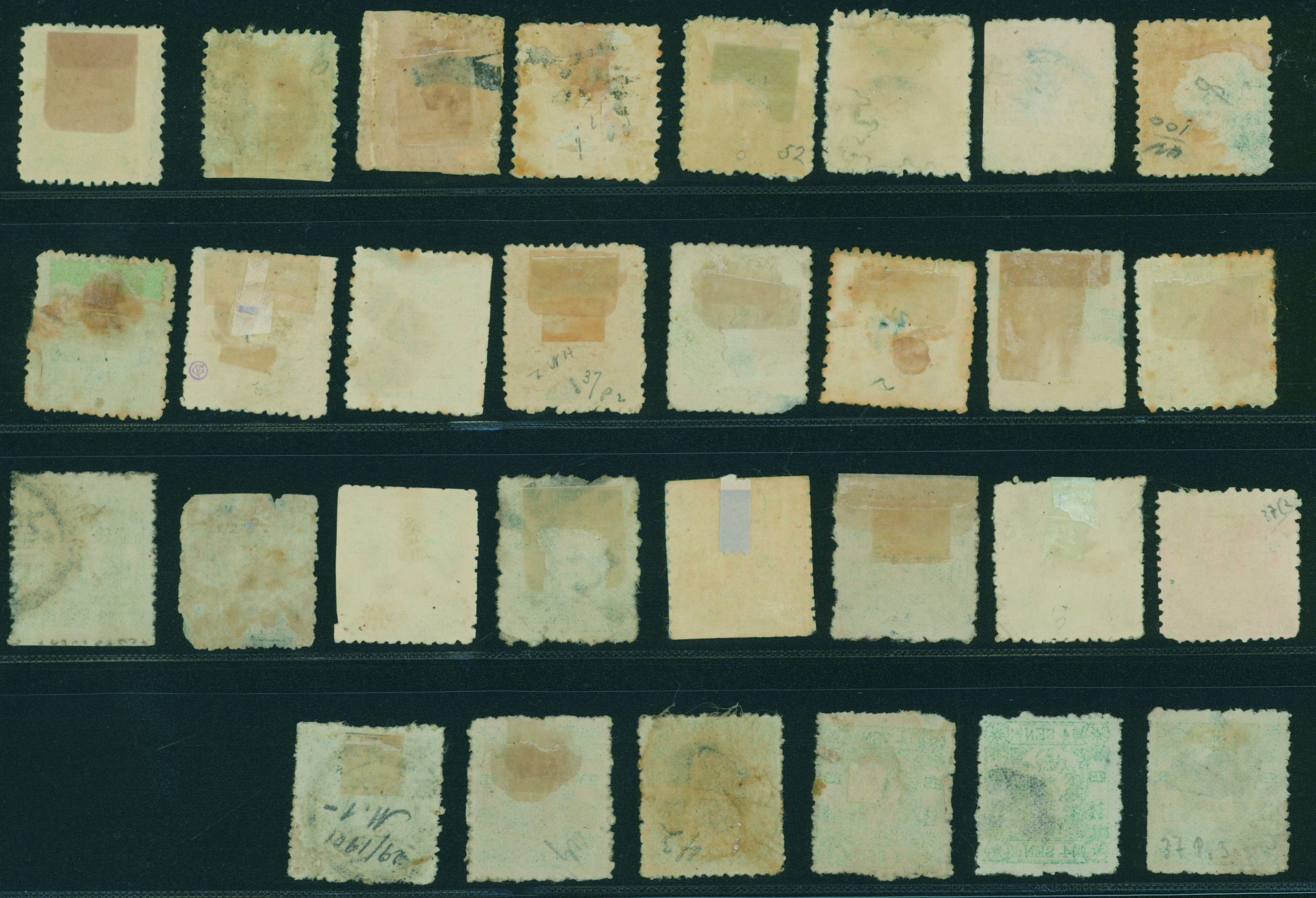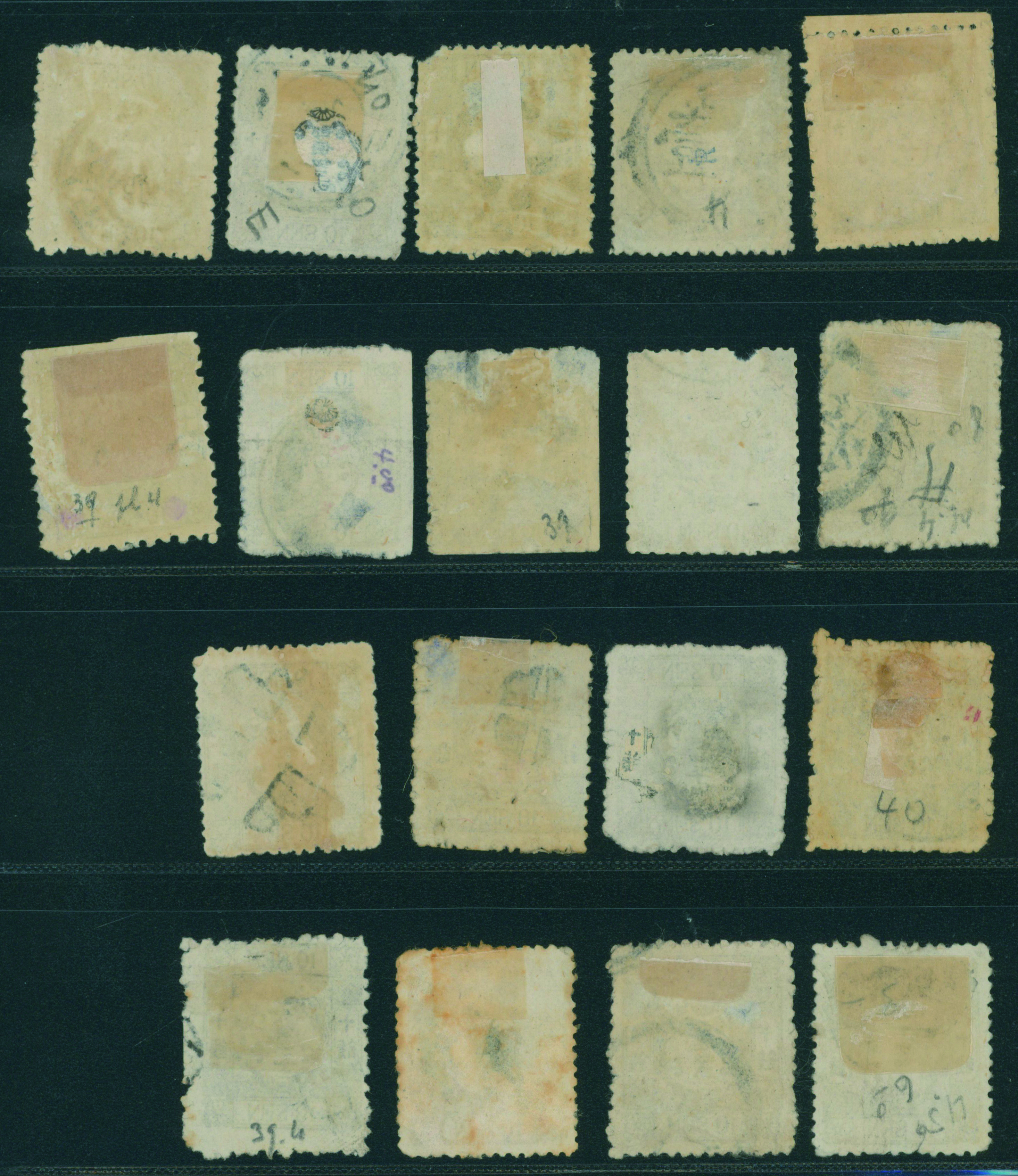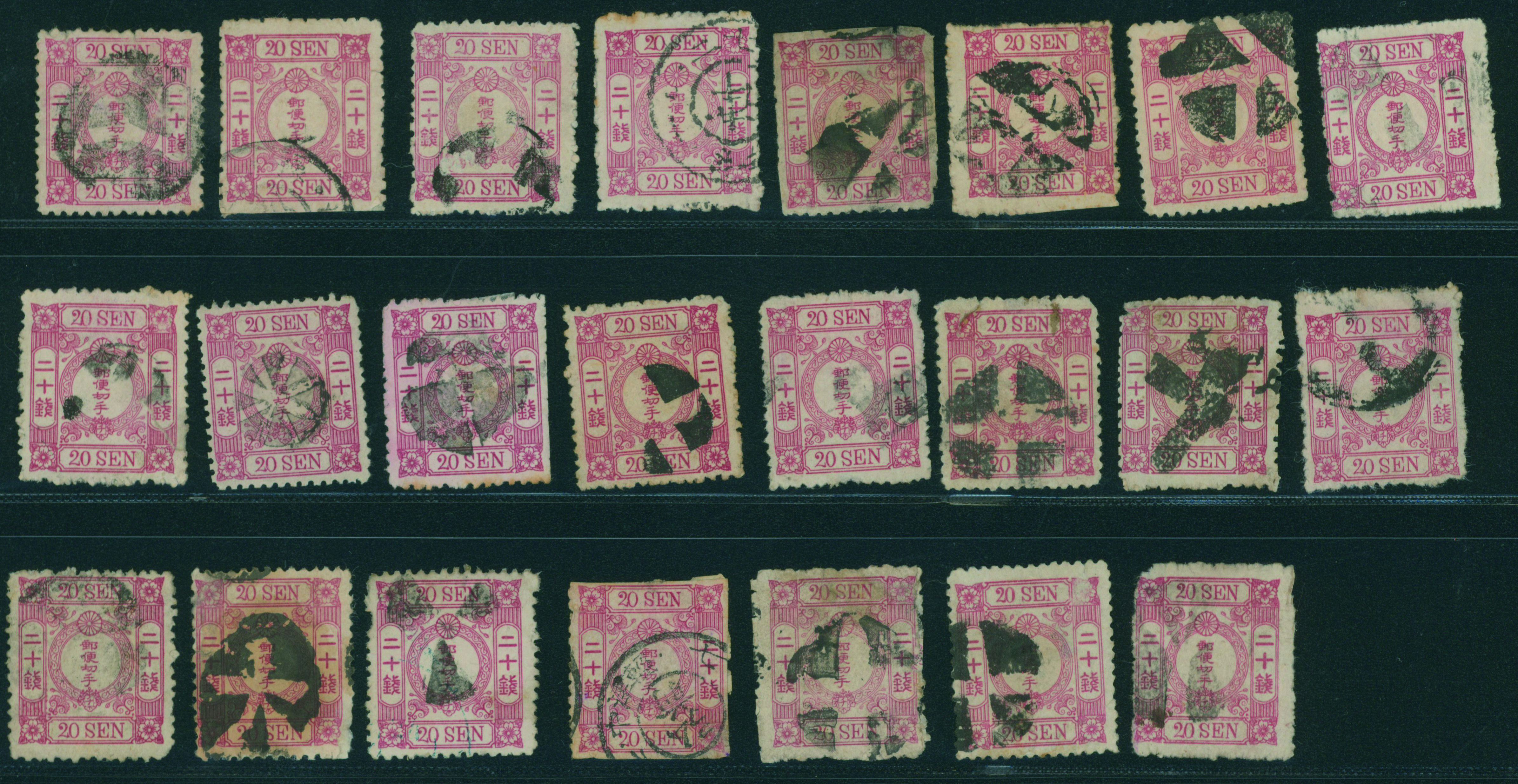 1875 Bird issue 12 Sen, 15 Sen, 45 Sen 28 examples used cancelled by obliteration (Image1) (Image2)