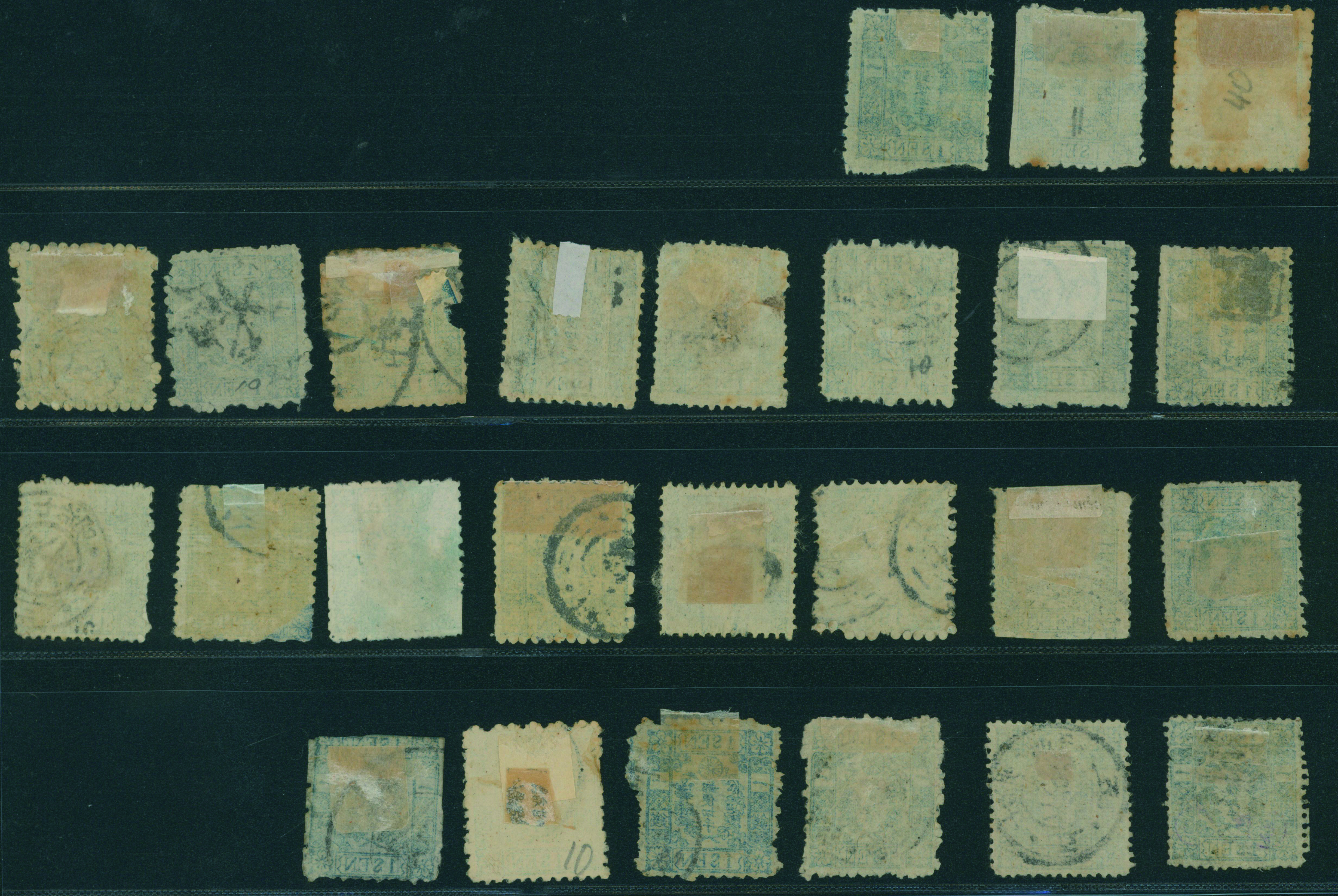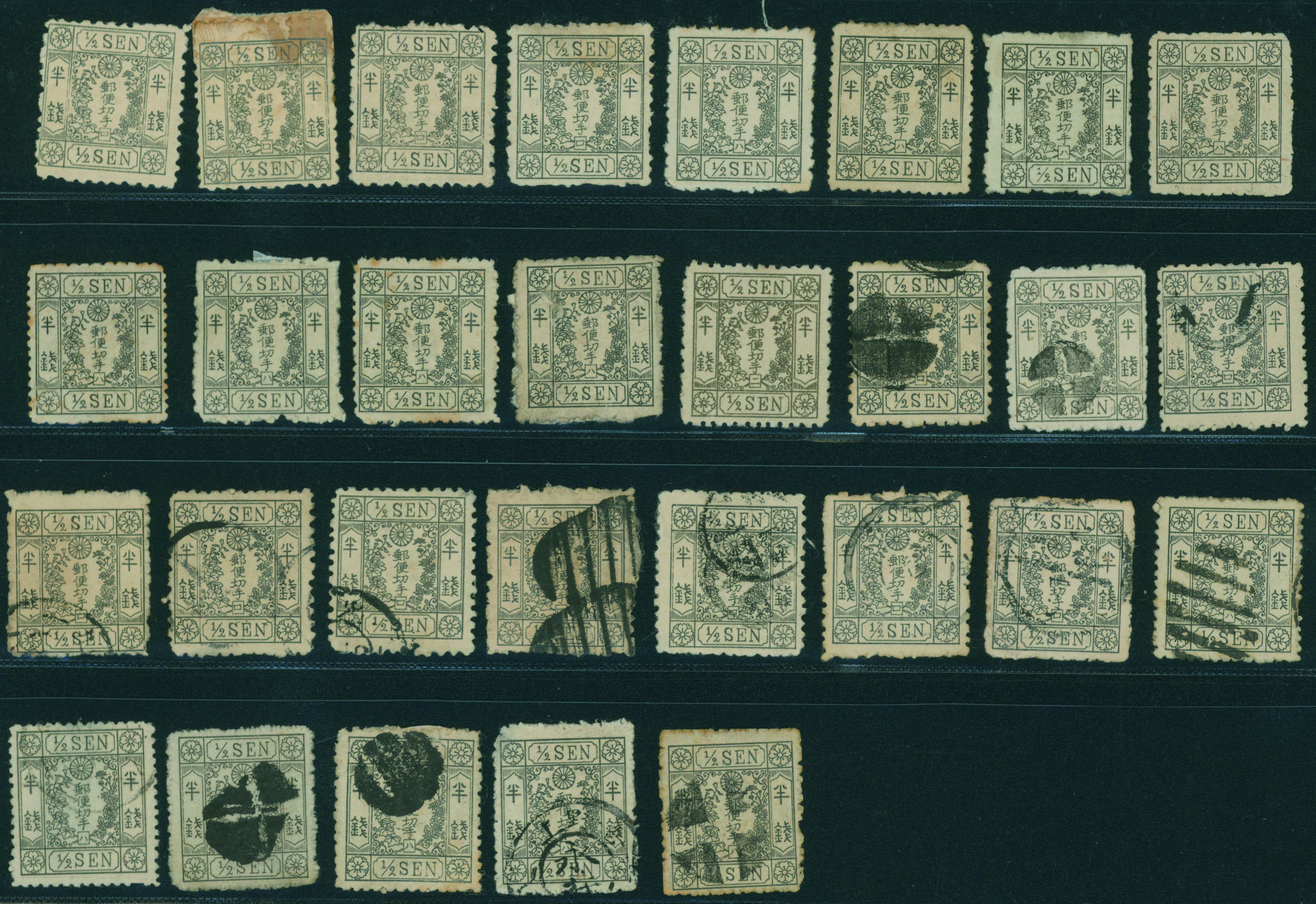 1875 Cherry Blossom Imported Paper half Sen grey with kana (29) mixed condition of unused and