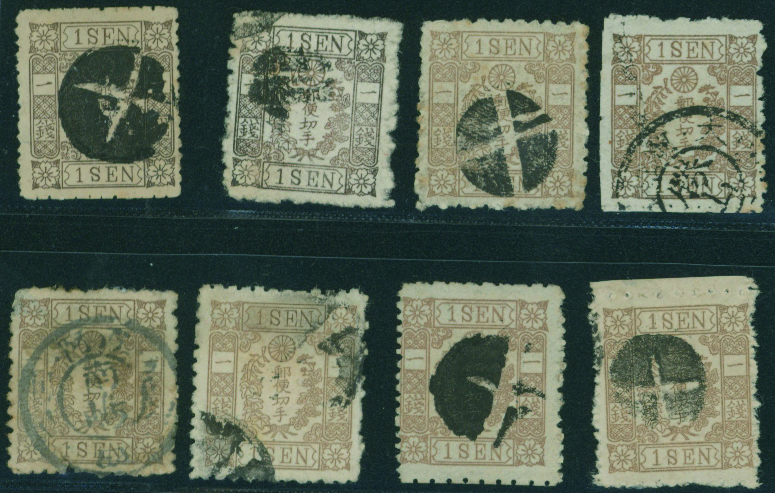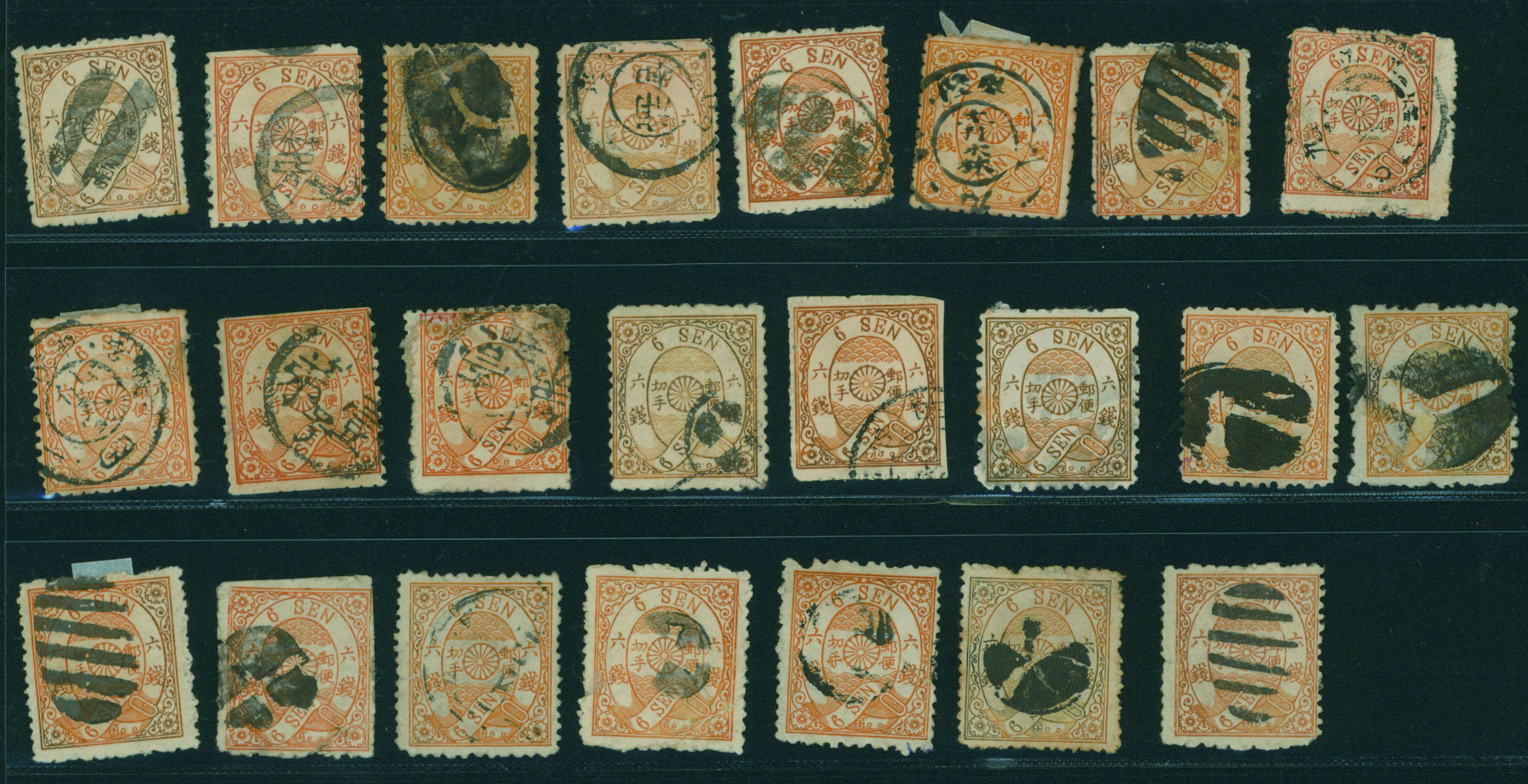 Cherry blossom 6 Sen 23 examples used cancelled by obliteration numeral cancellation (Image1) (Image2)