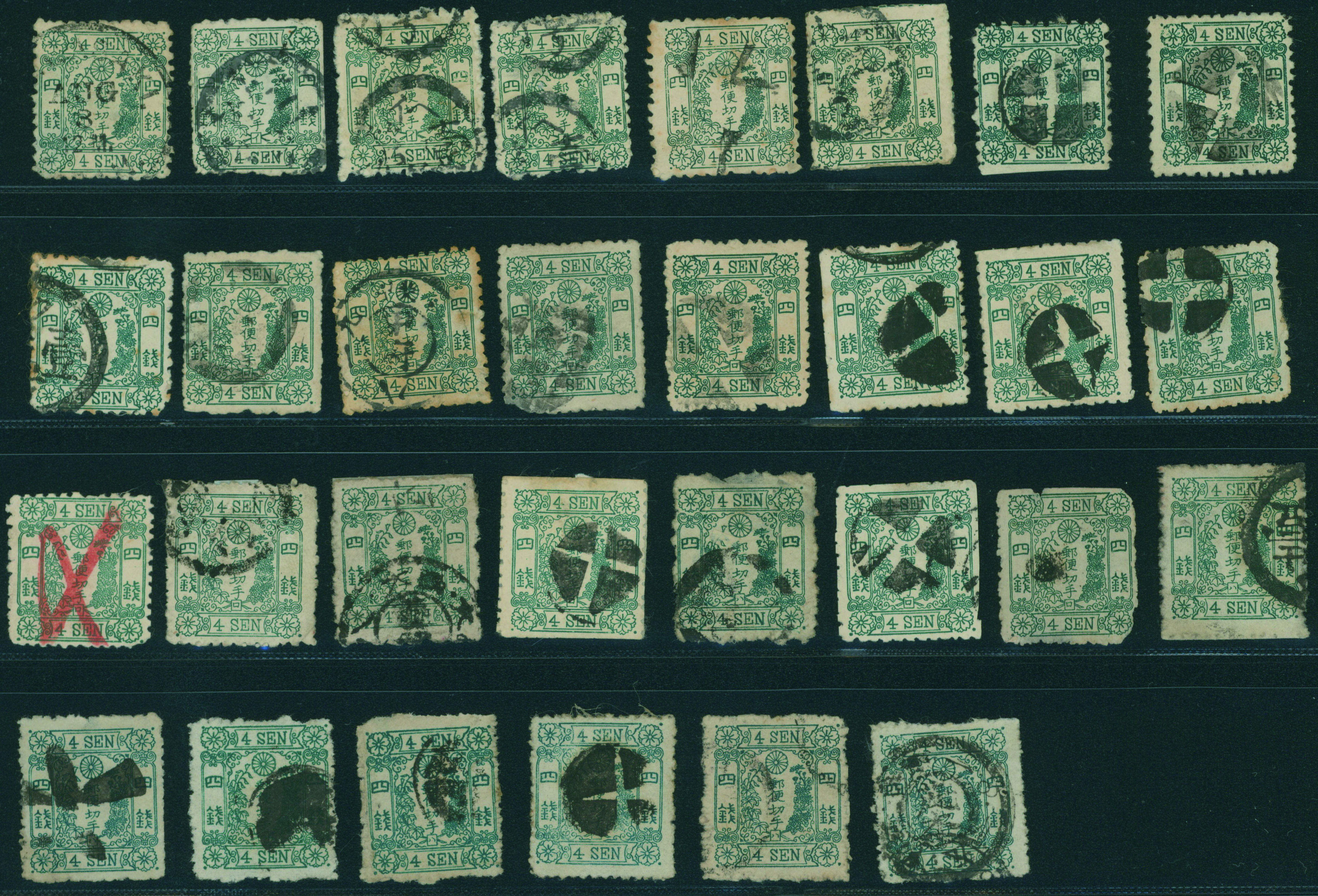 1874 Cherry Blossom Imported Paper 10 Sen green with kana (9) used cancelled by obliteration (Image1) (Image2)